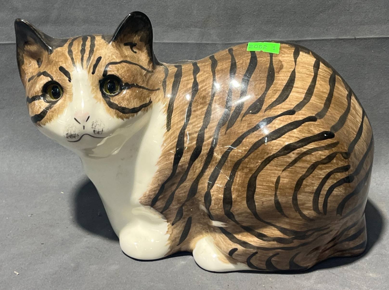 2062 Hand-Painted Cat Figurine with Tiger-Stripe Pattern 10? L