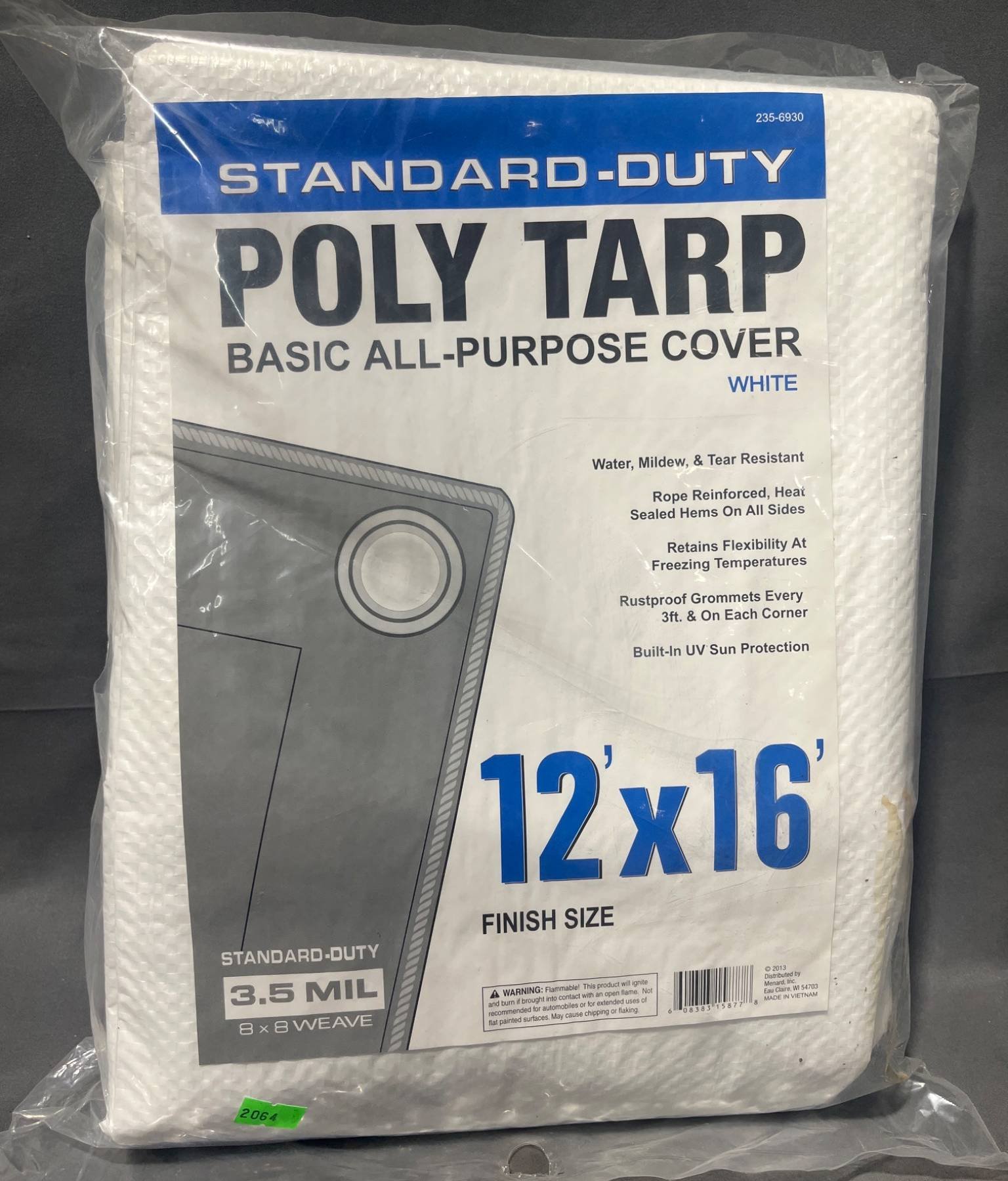 2064 White Standard-Duty Poly Tarp, 12’x16?, 3.5 Mil Thickness