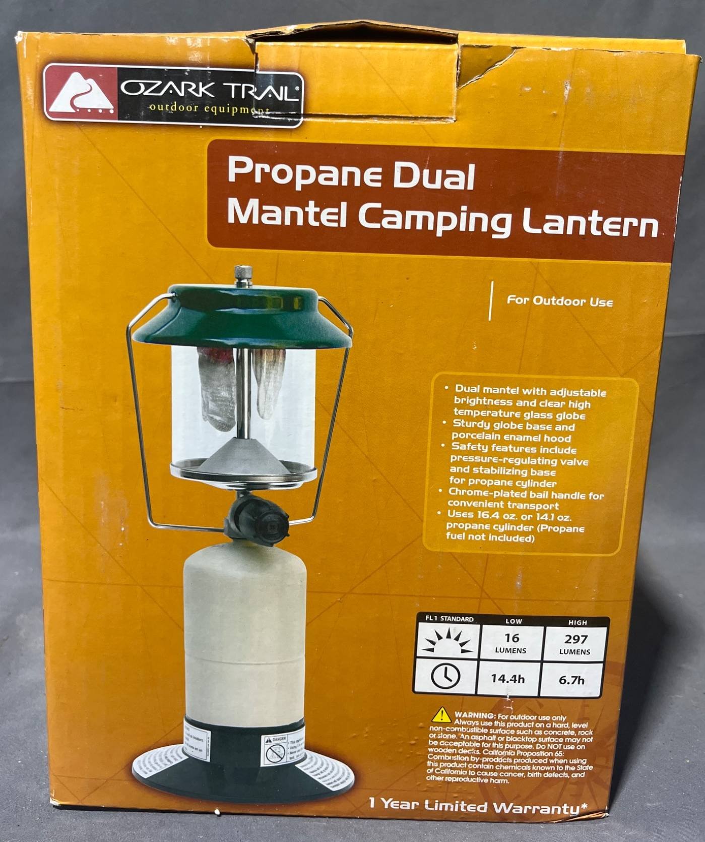 2067 Ozark Trail Propane Dual Mantle Camping Lantern in Box 7”
