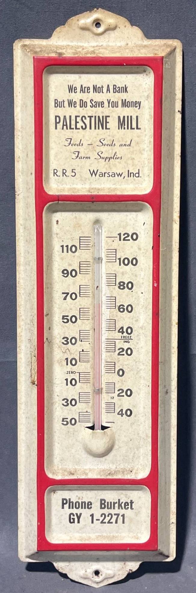 2071 Metal Thermometer Advertising Palestine Mill, Warsaw, Ind. 13? L