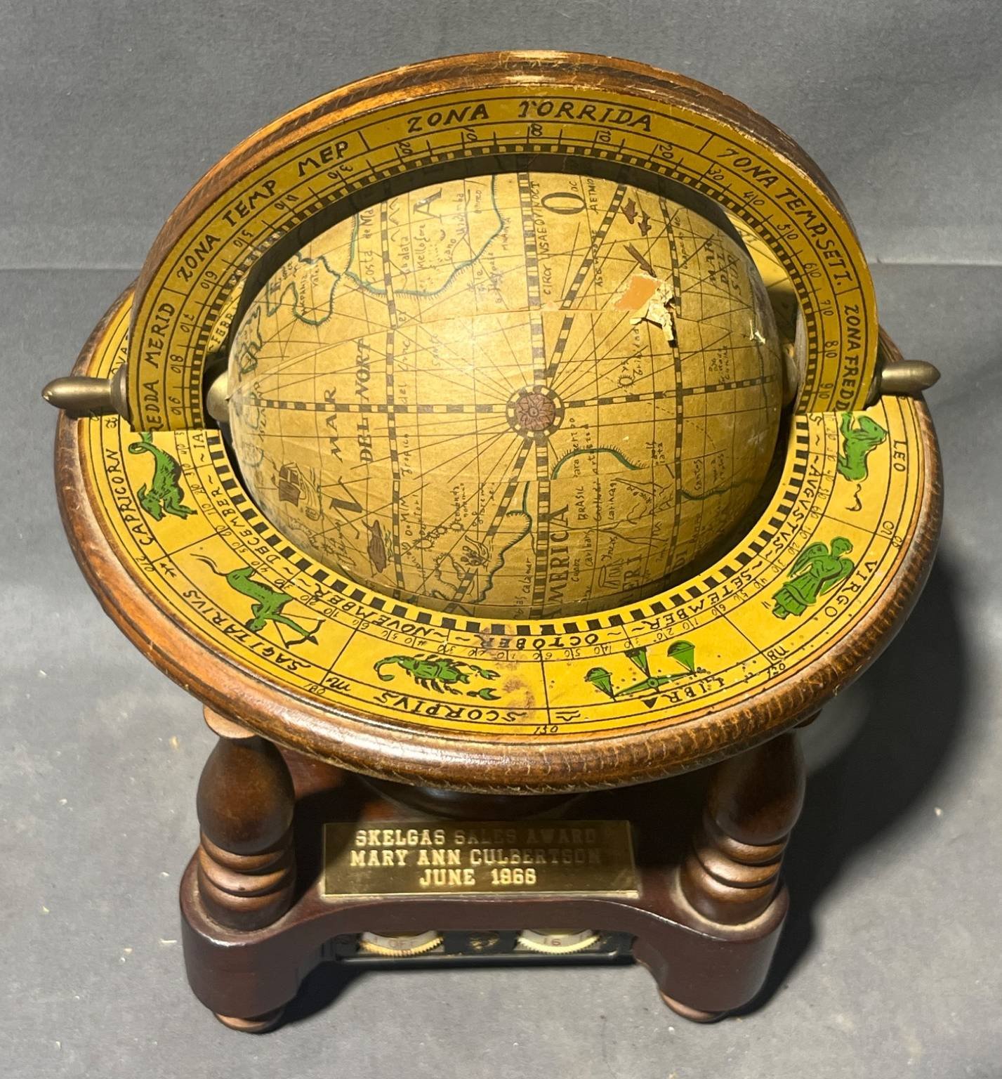 2078 Electro-Brand Globe Radio with Brass Plaque, 1968