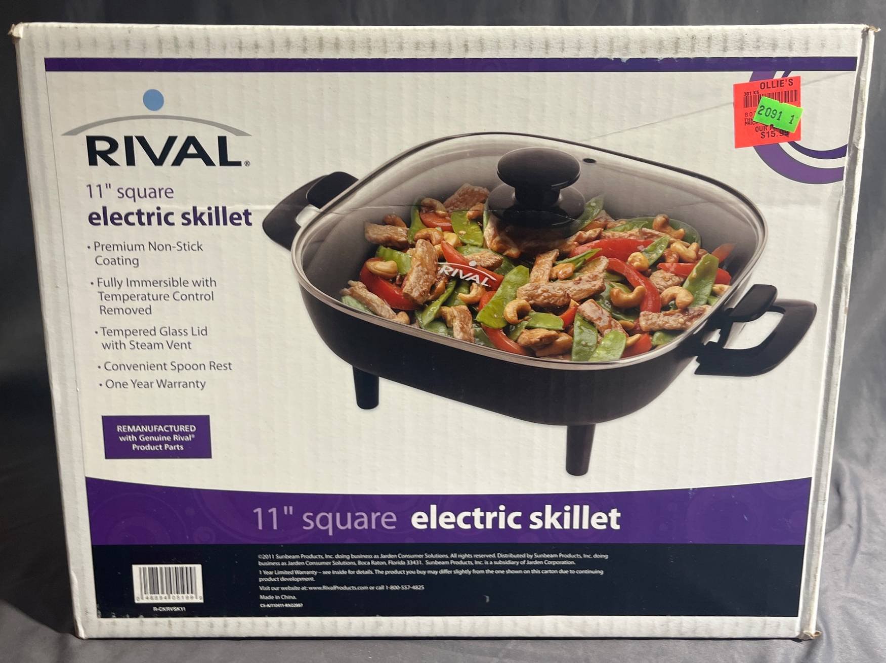 2091 Rival Square Electric Skillet with Glass Lid 11-Inch (Sealed)