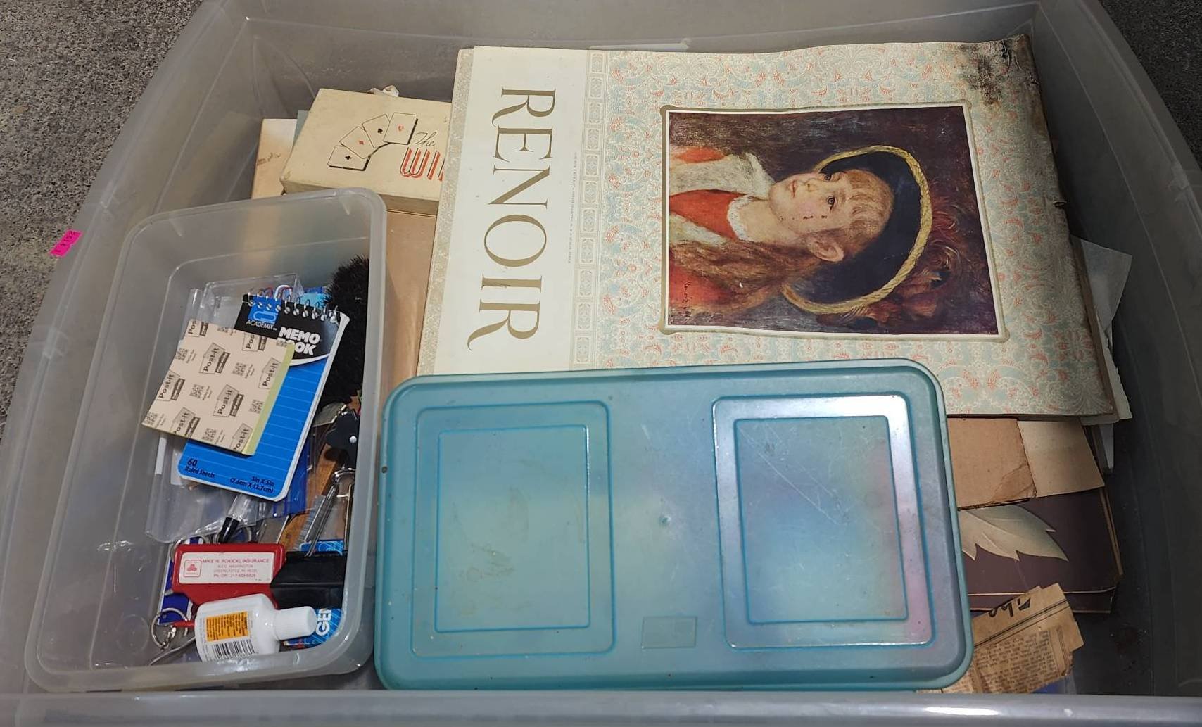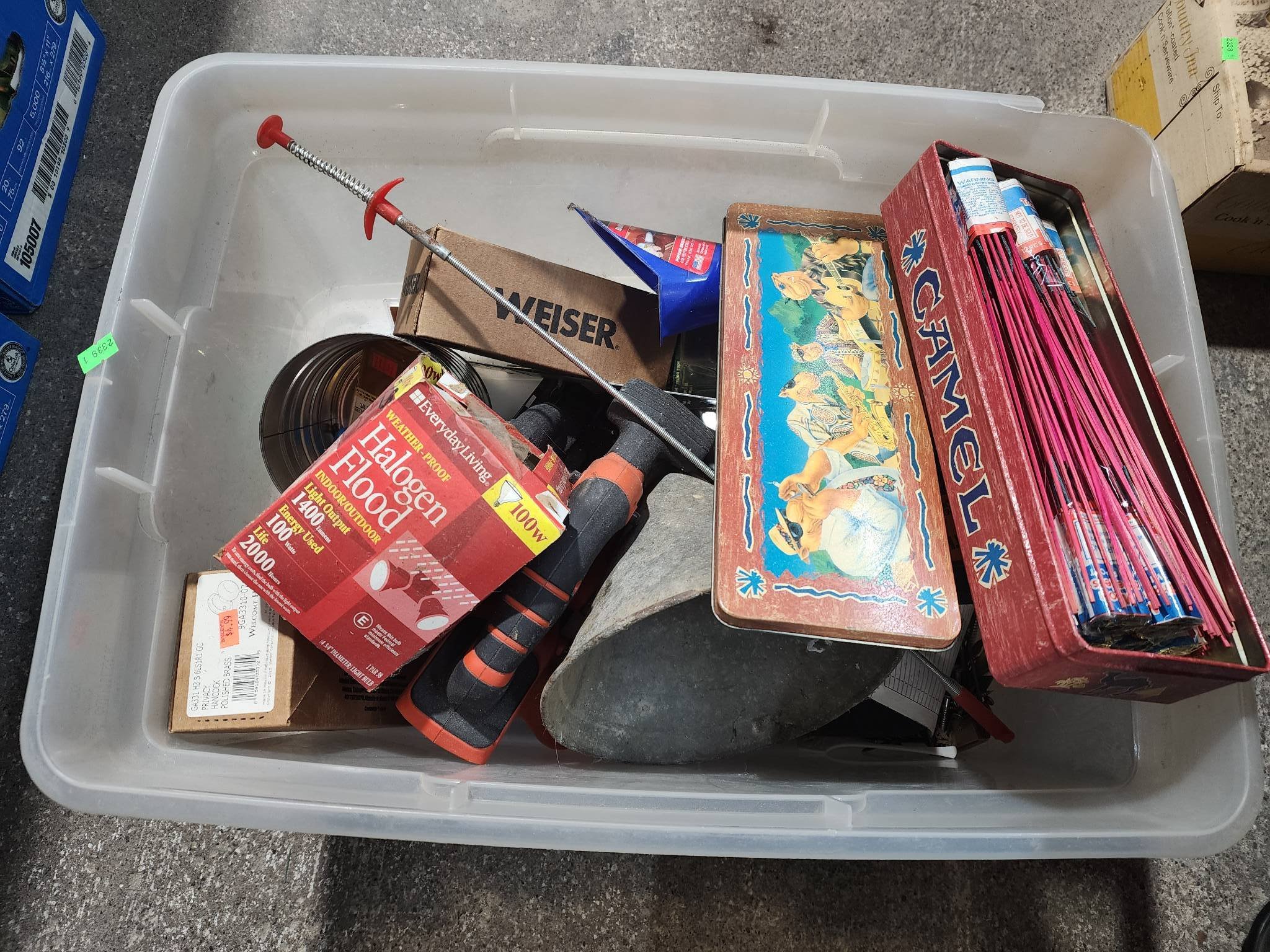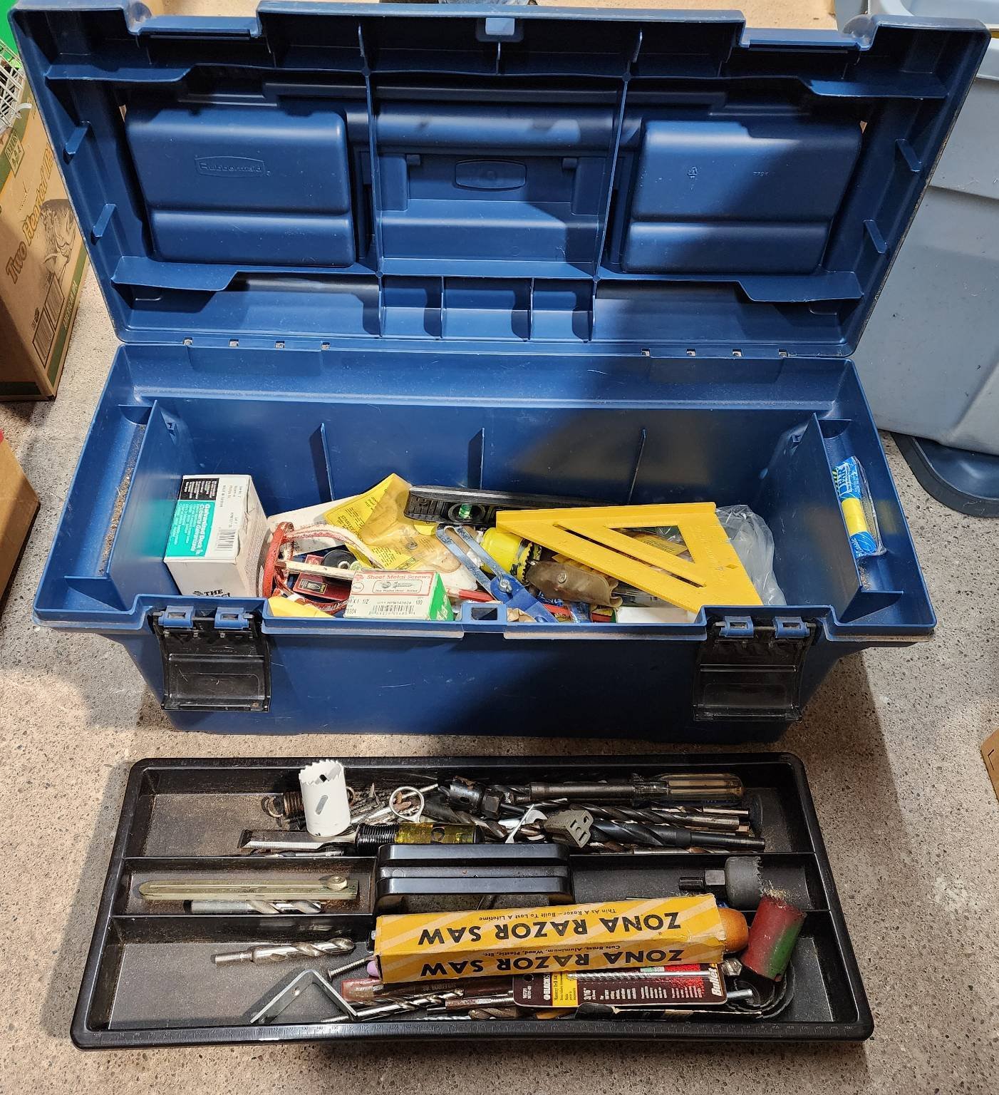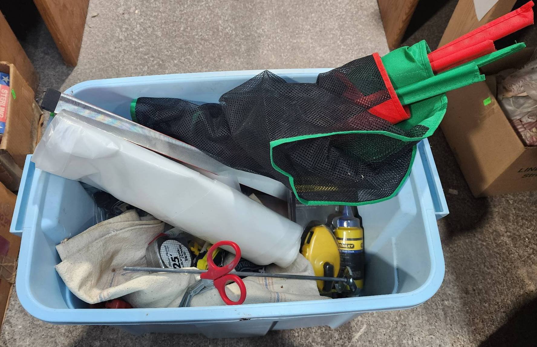 9328 Plastic Storage Bin with Household Items and Tools
