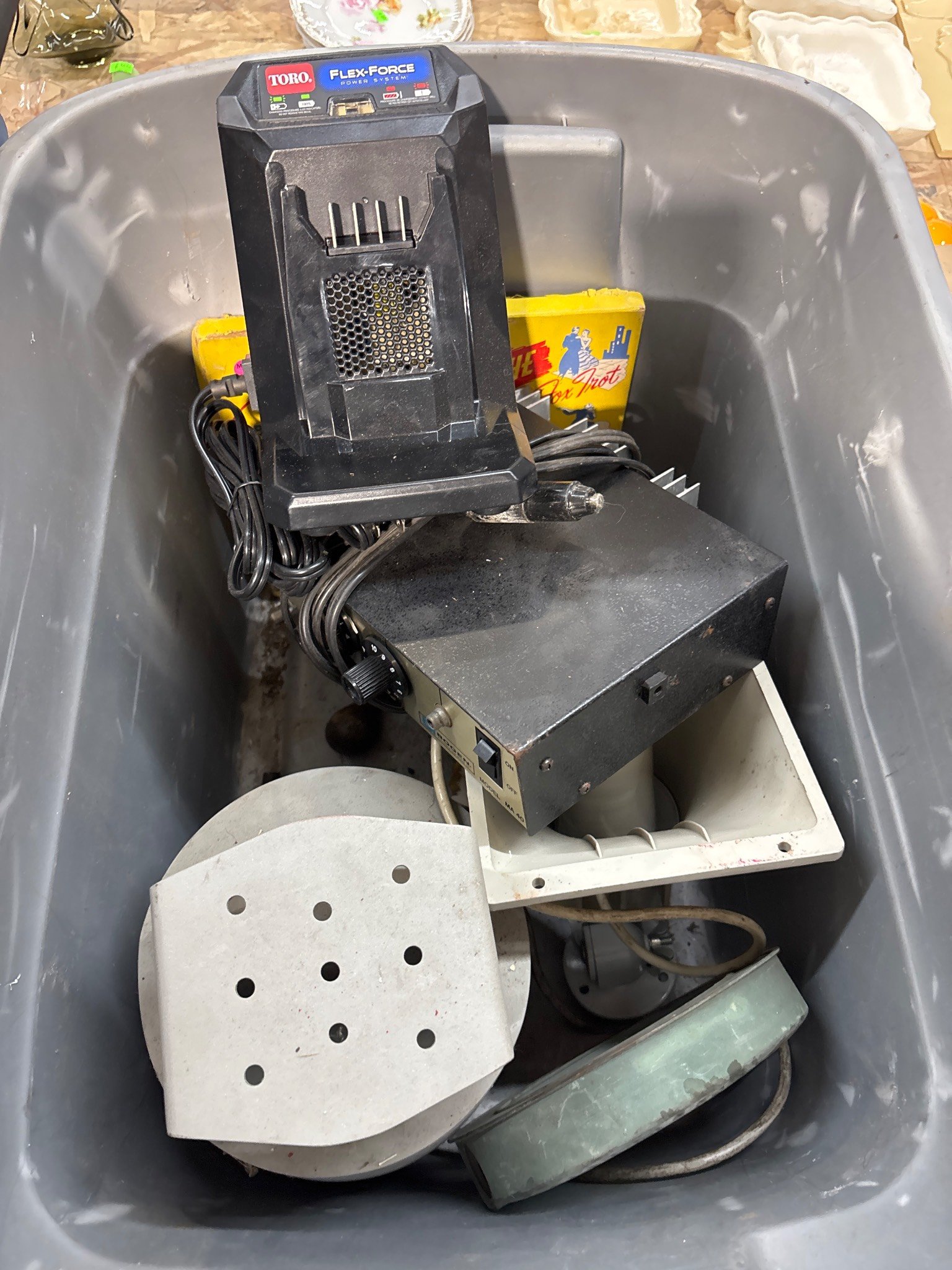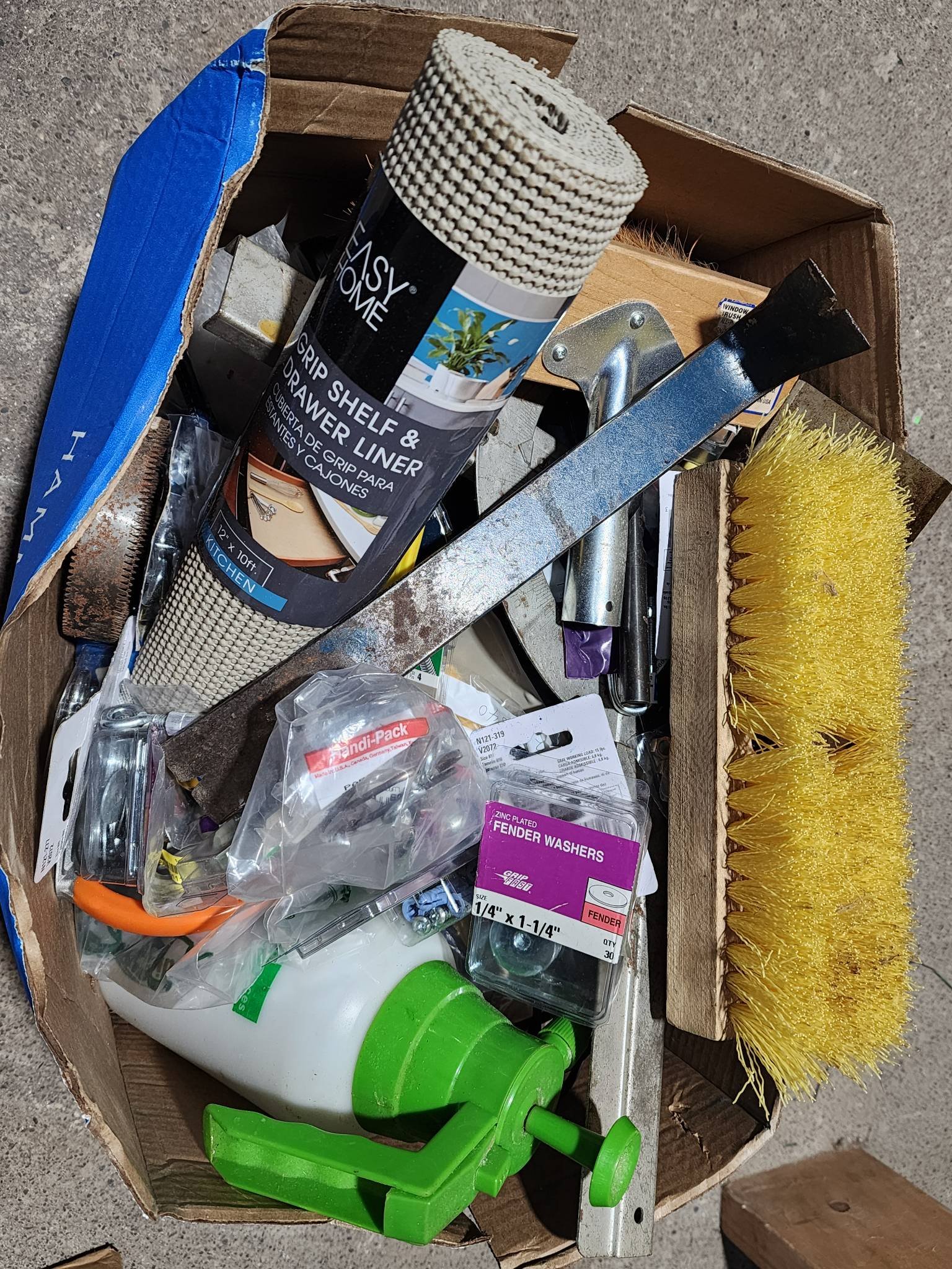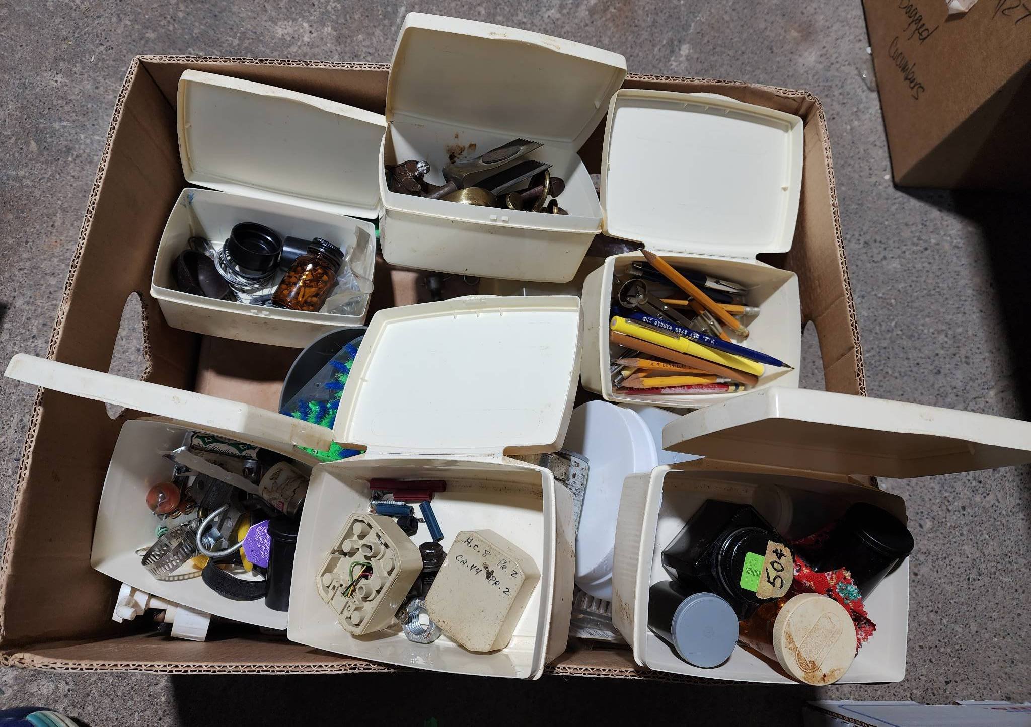 9328 Plastic Storage Bin with Household Items and Tools