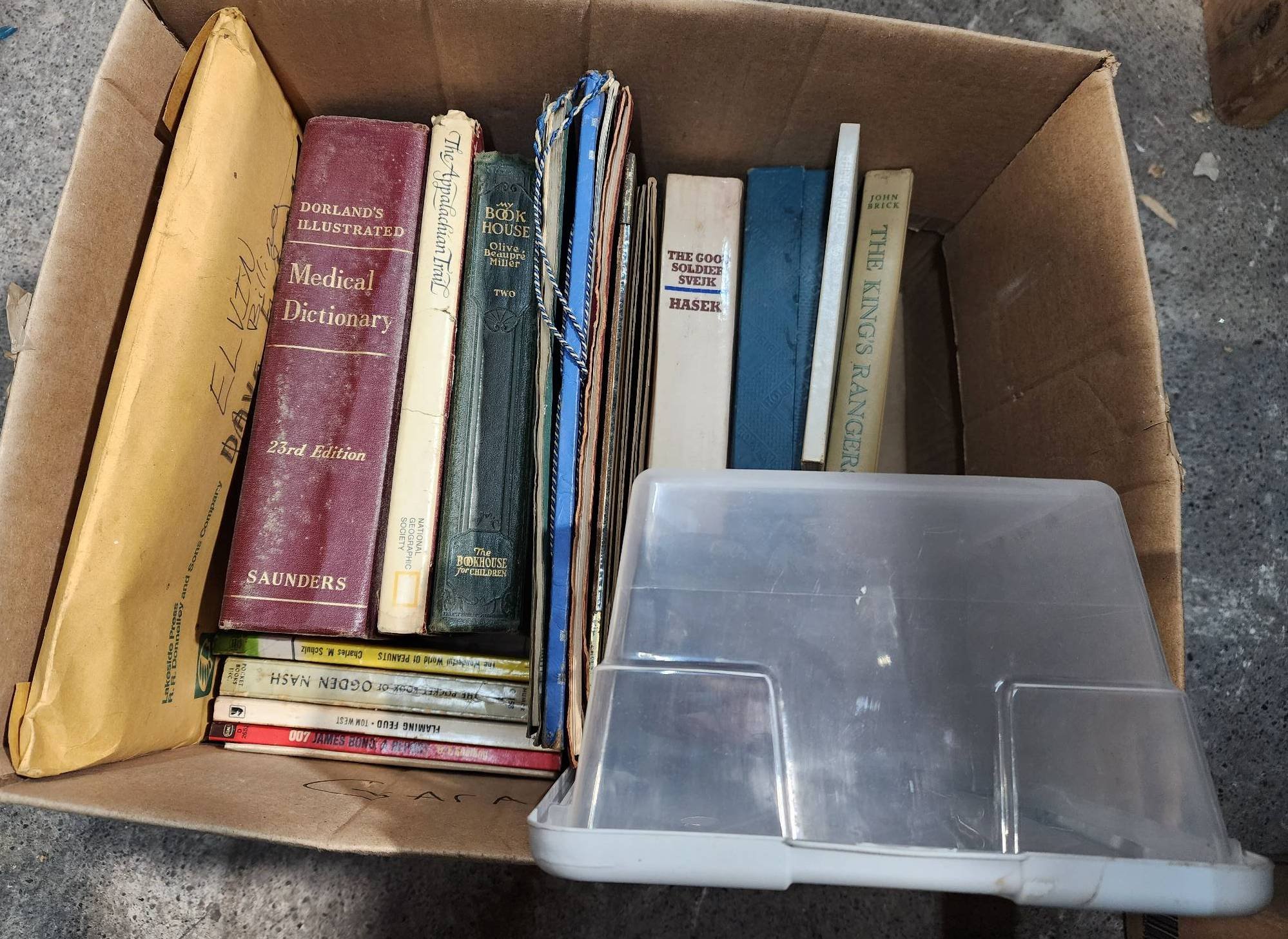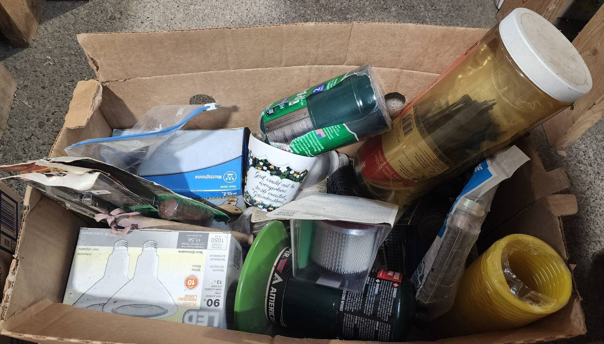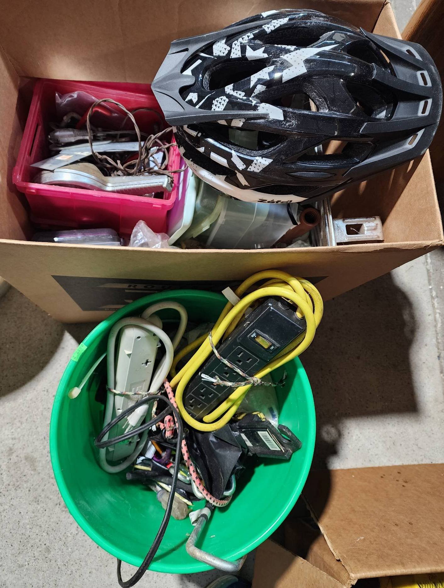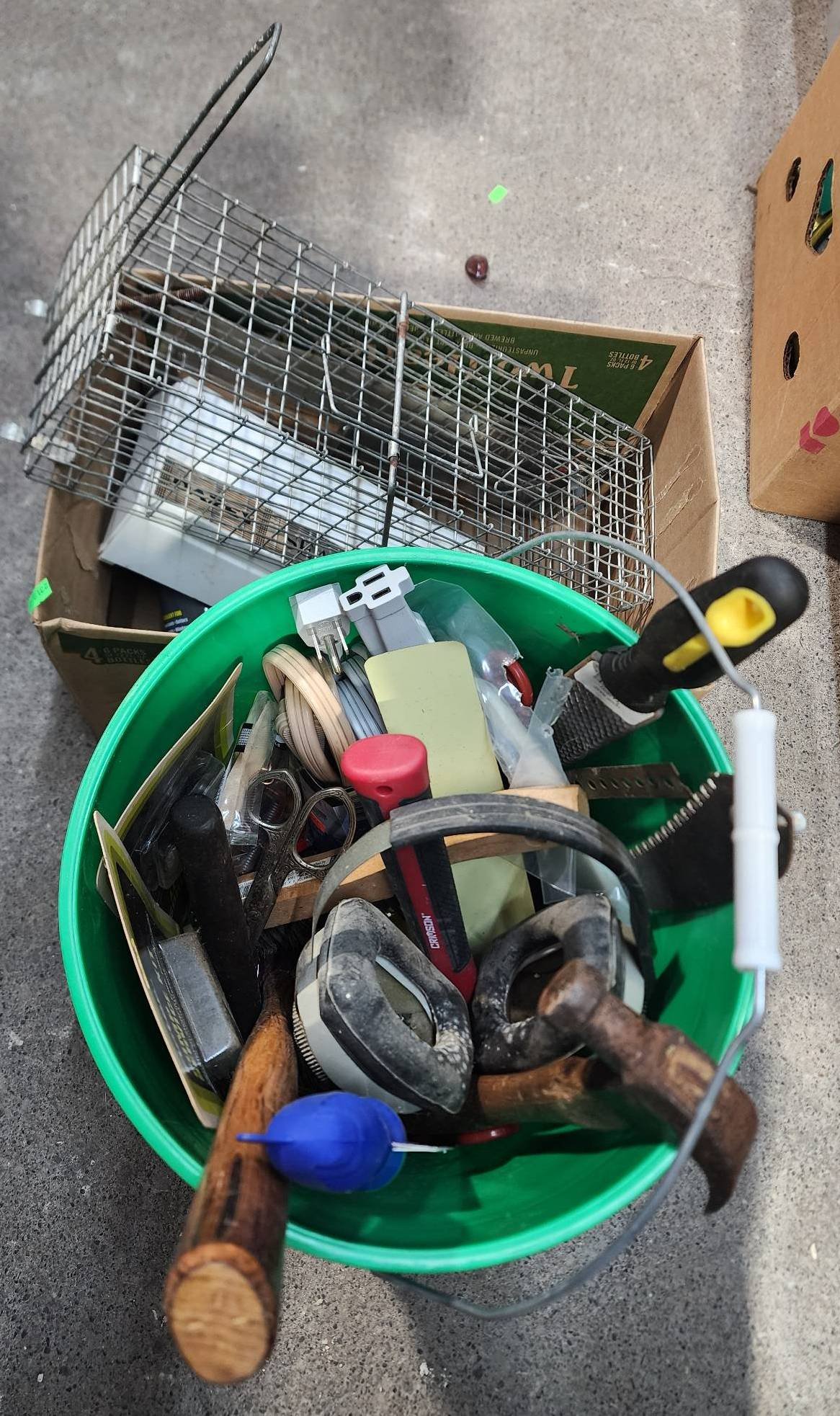 9328 Plastic Storage Bin with Household Items and Tools