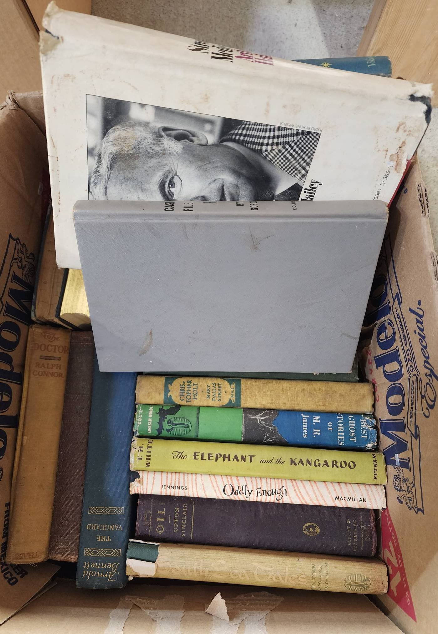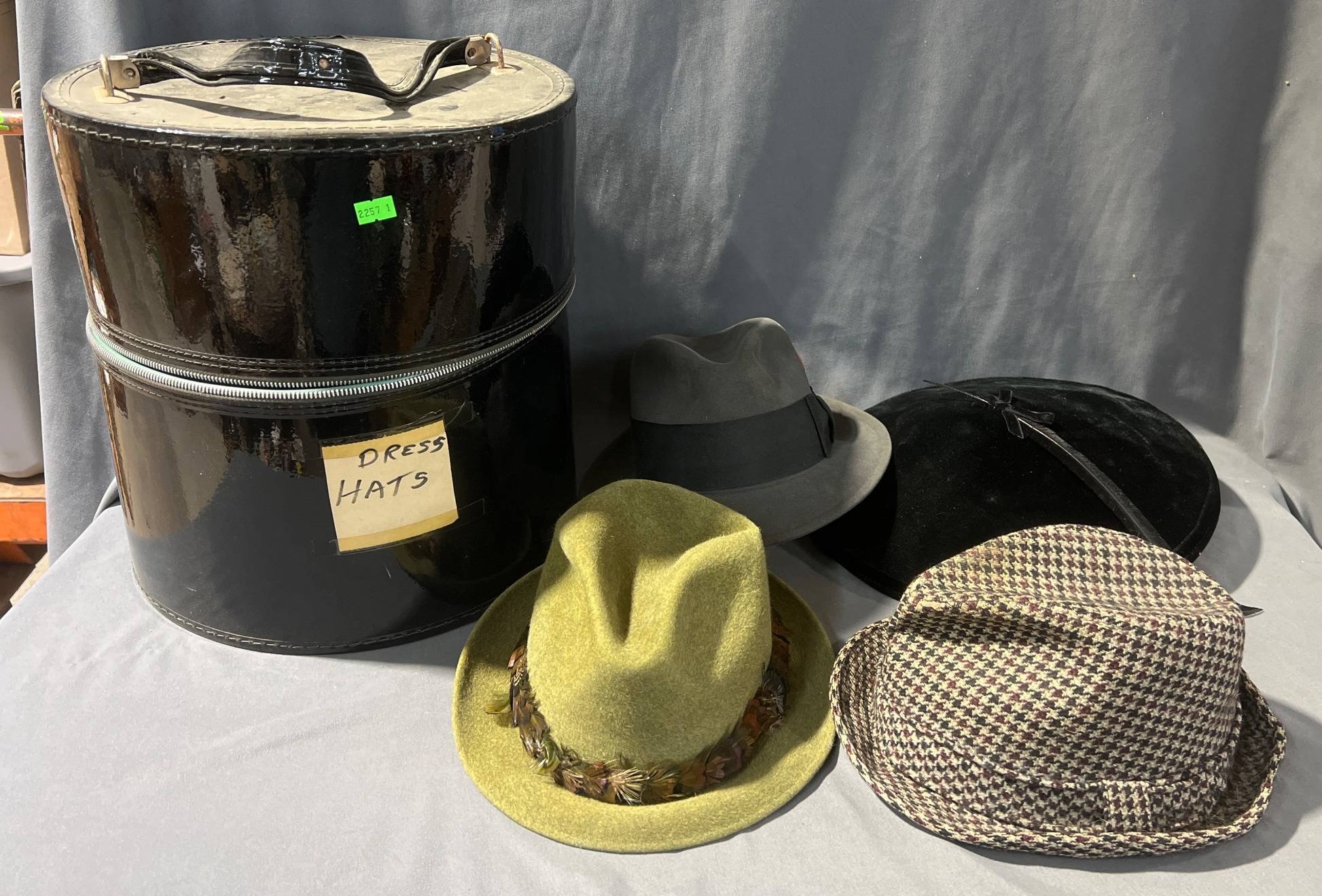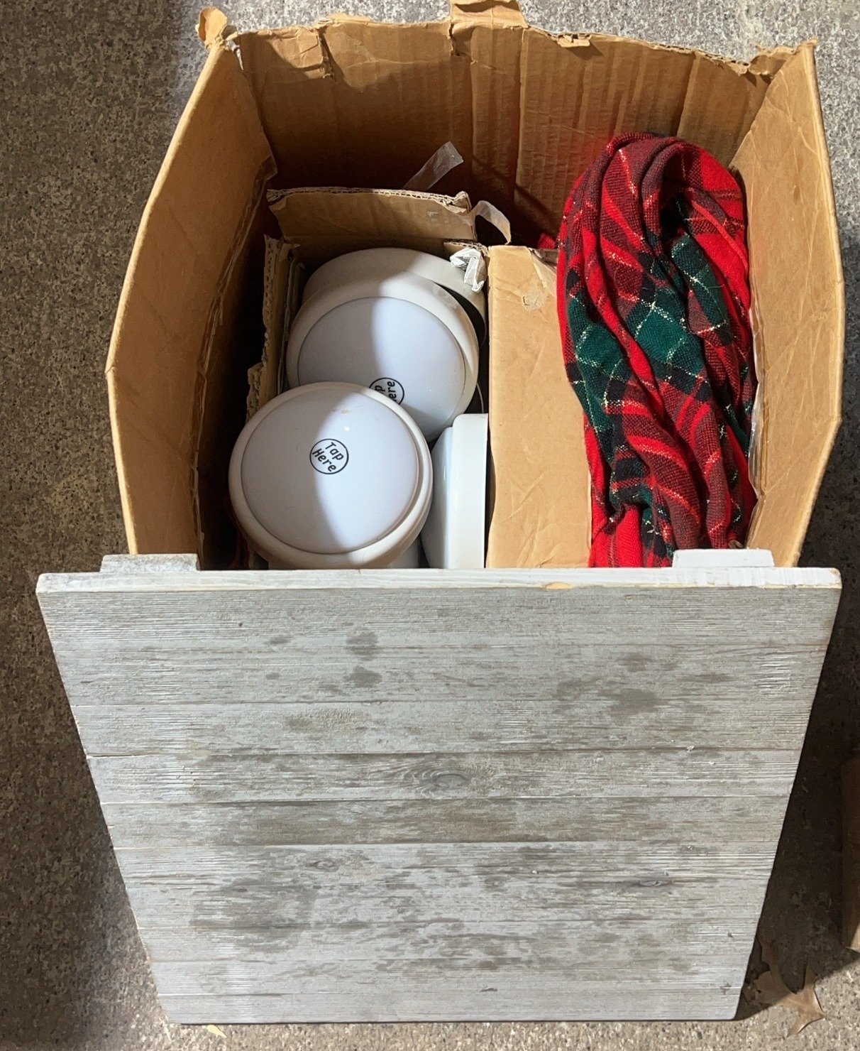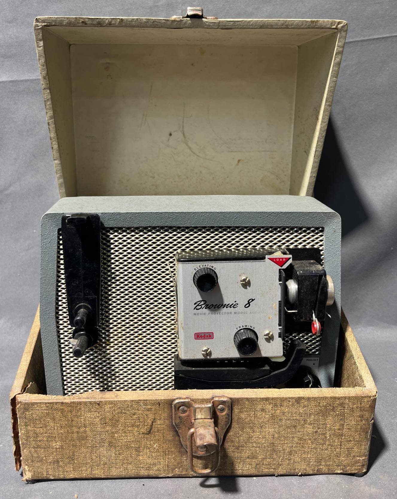 9242 Plastic Pet Carrier, Fasteners in Plastic Bin, and Fabric with Metal Hook in Wood Box