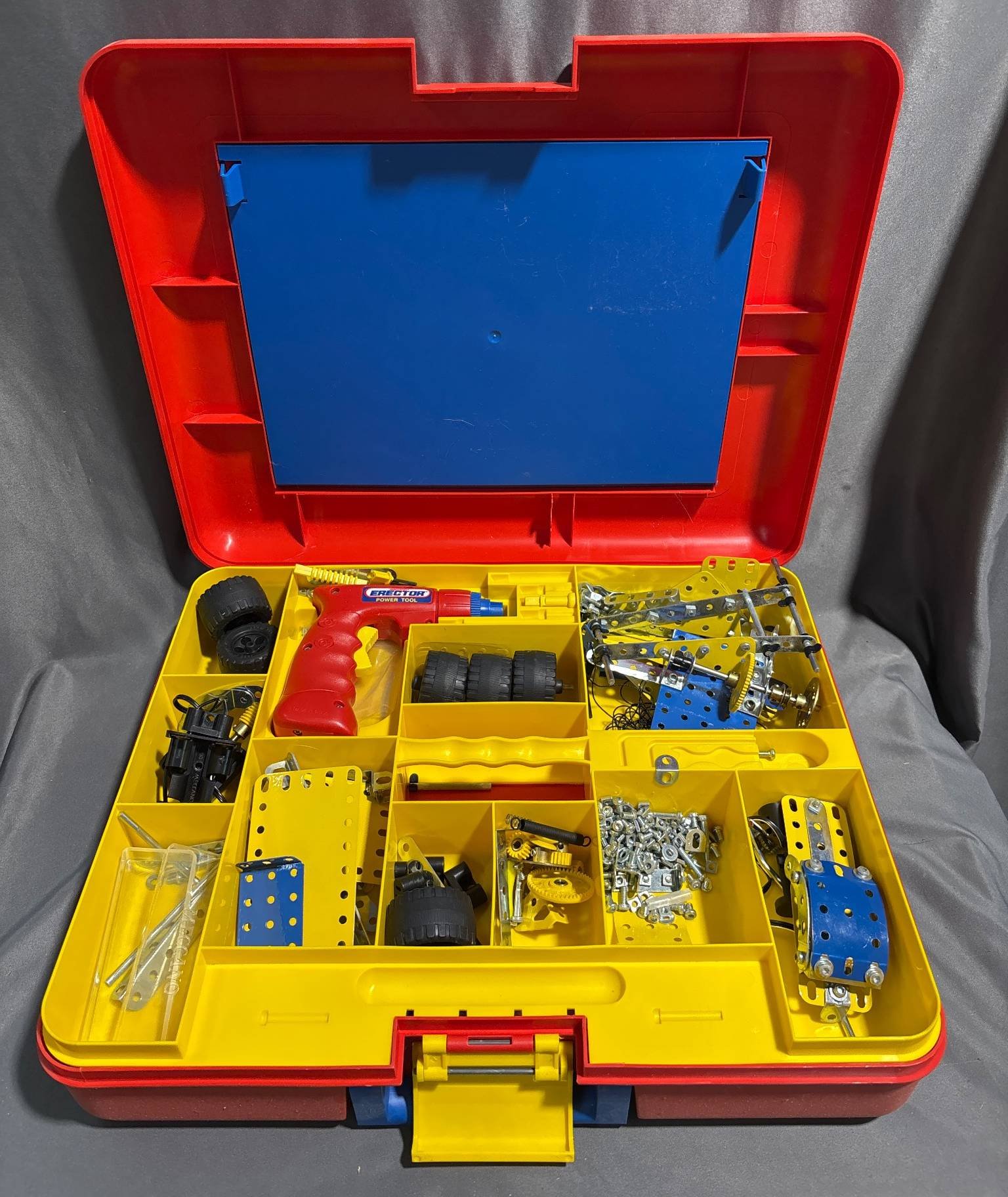 9327 Plastic Storage Box with Assorted Hardware and Blue Toolbox