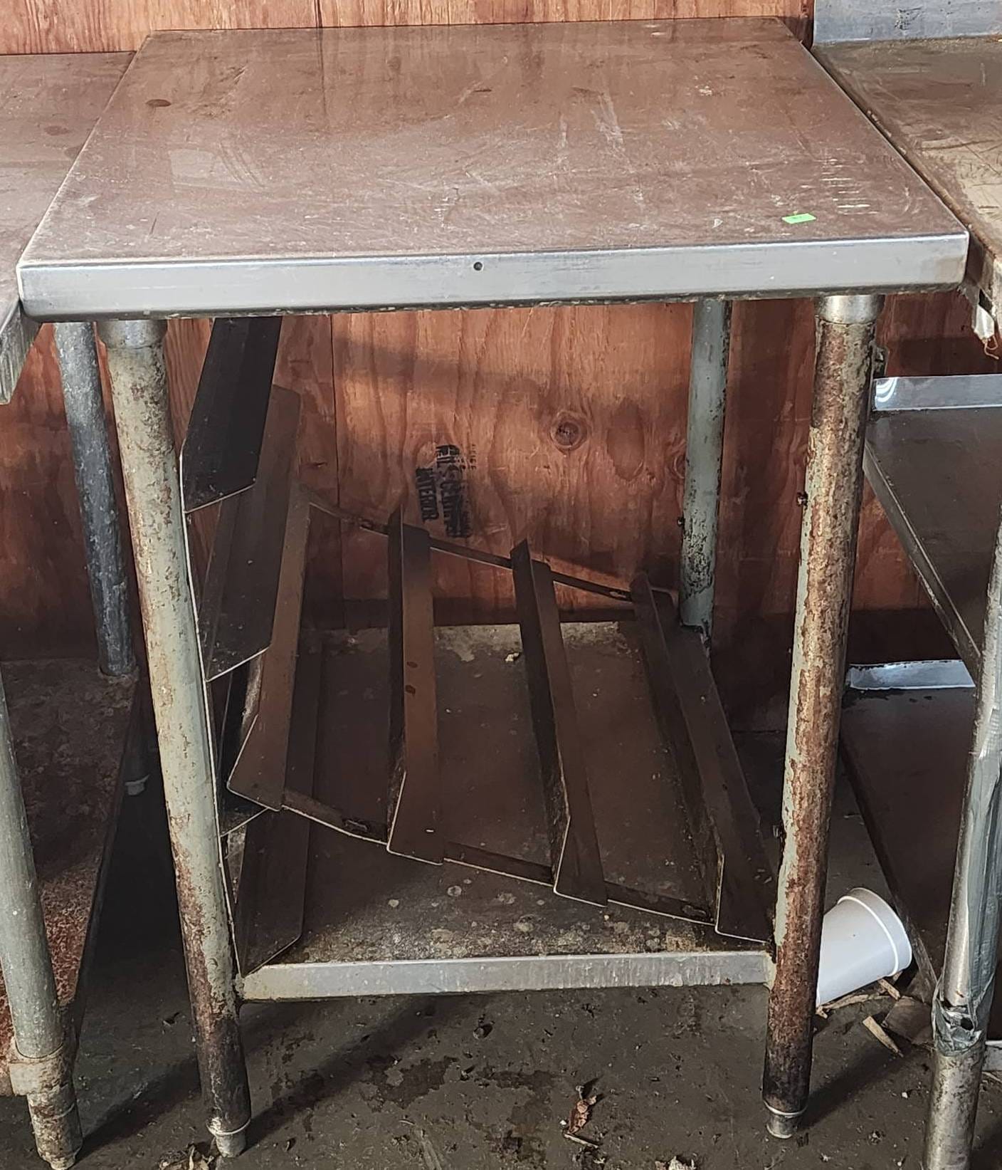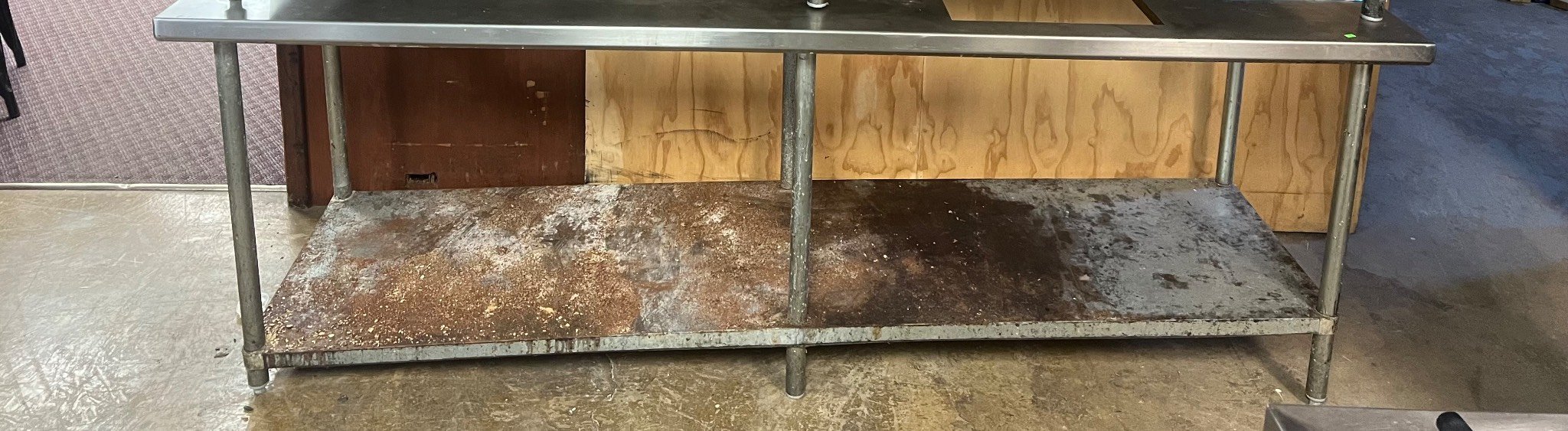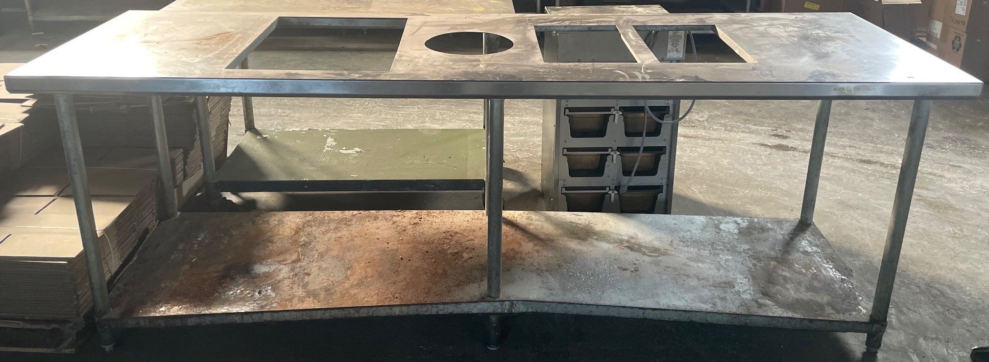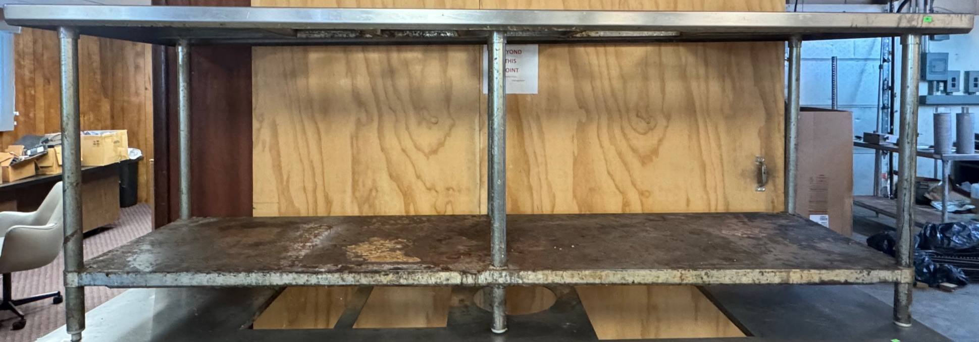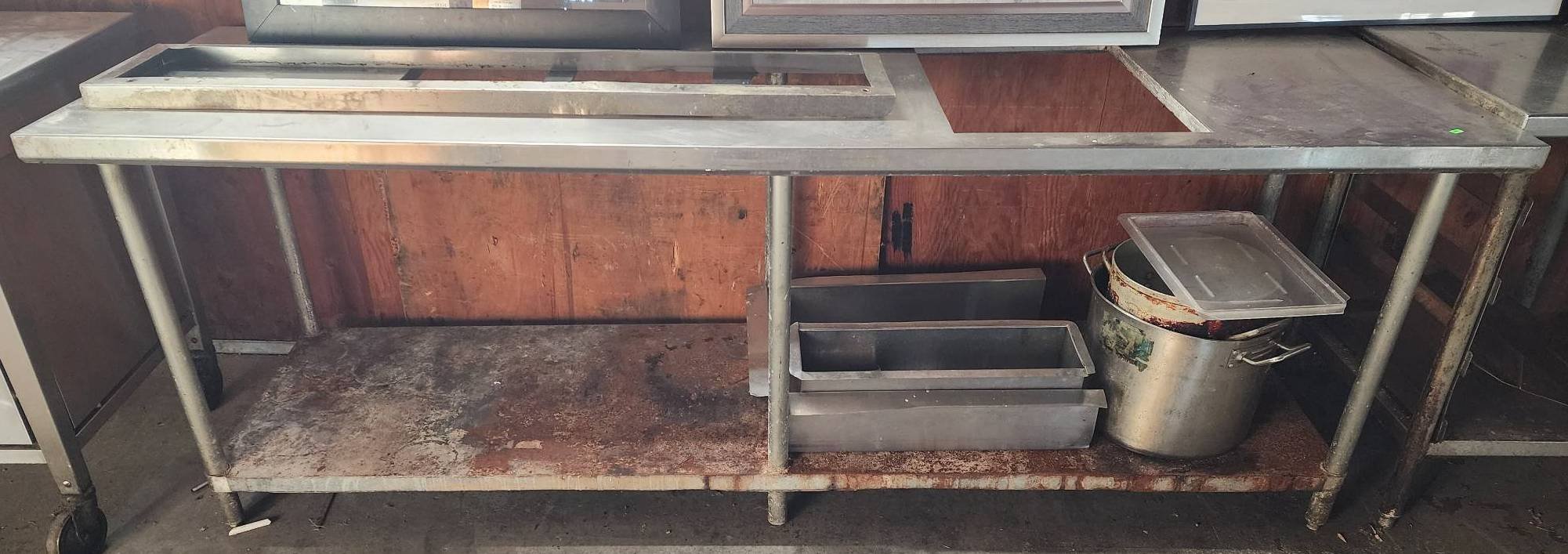 139 Stainless Steel Work Table with 3 Cutouts and Metal Frame, 34.5” x 94” x 30”