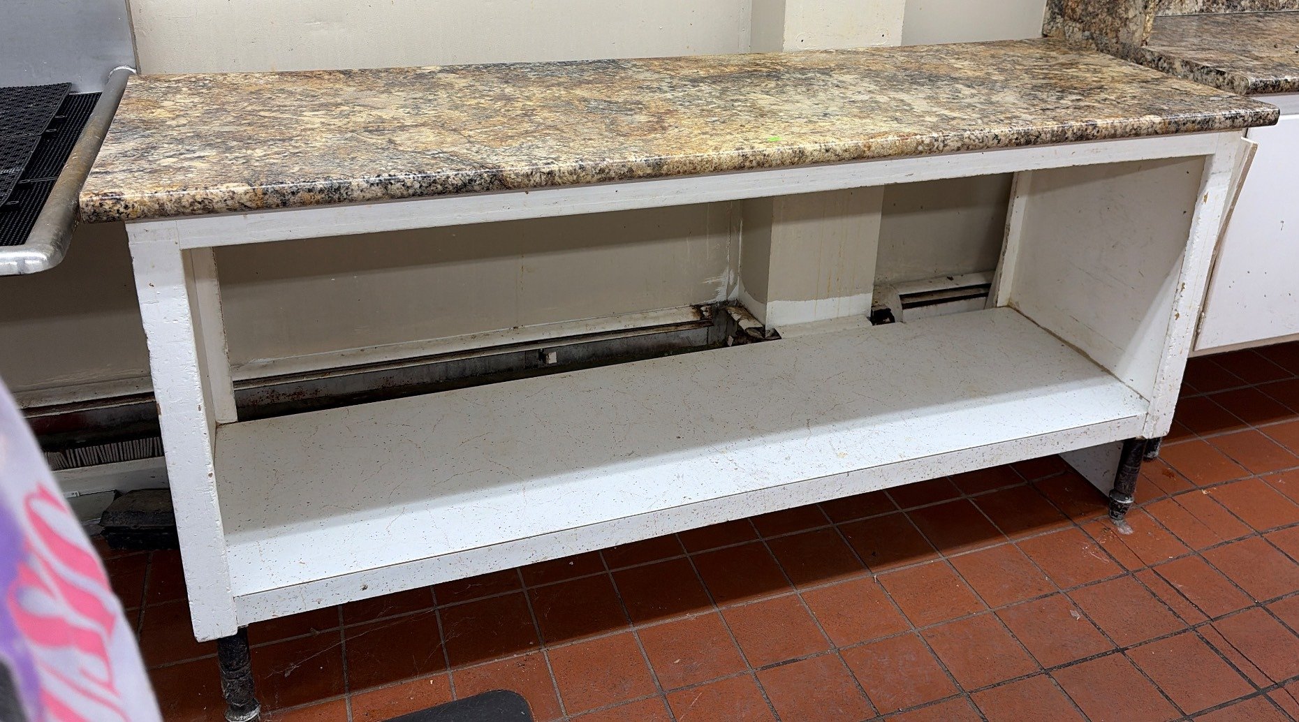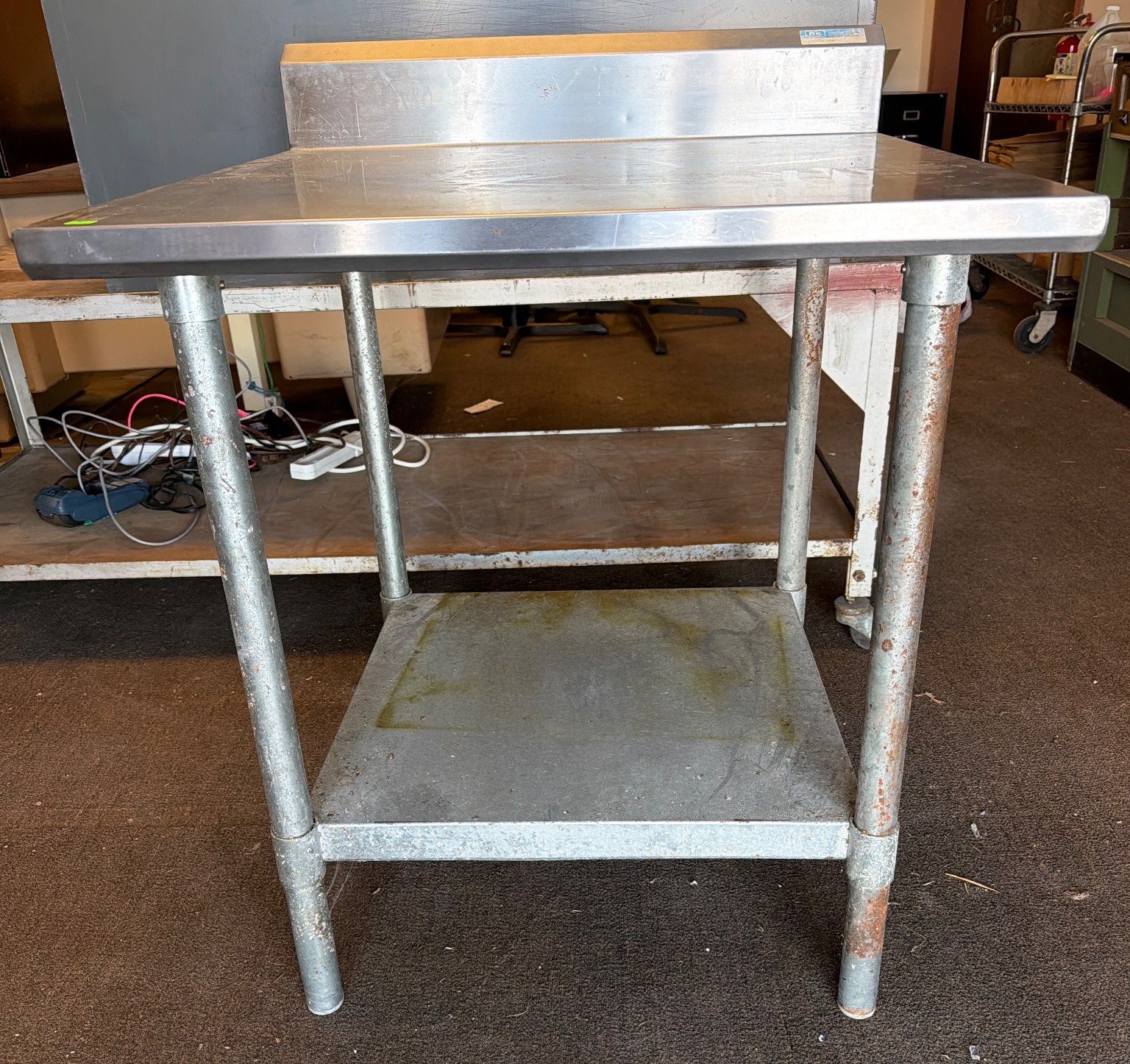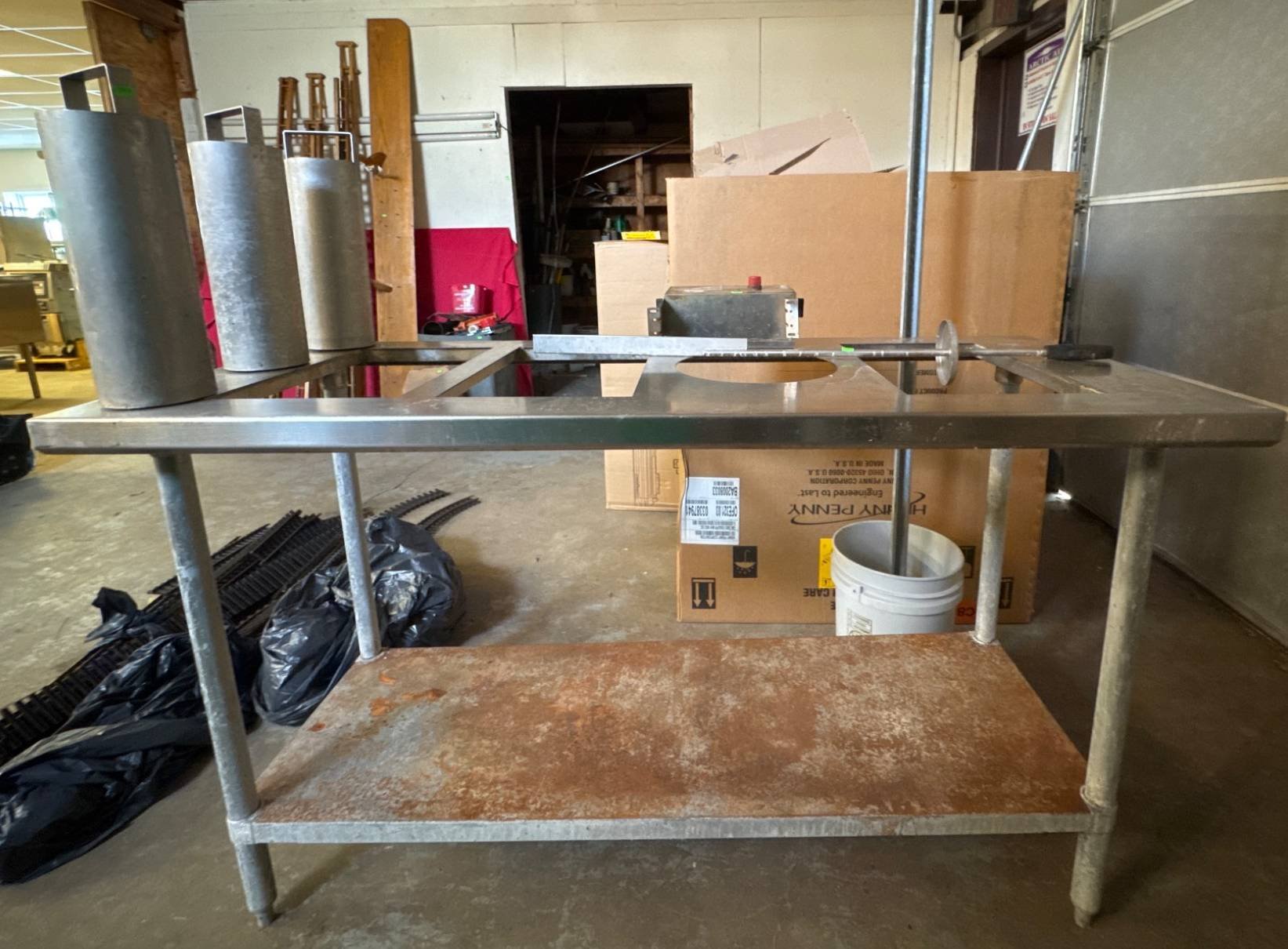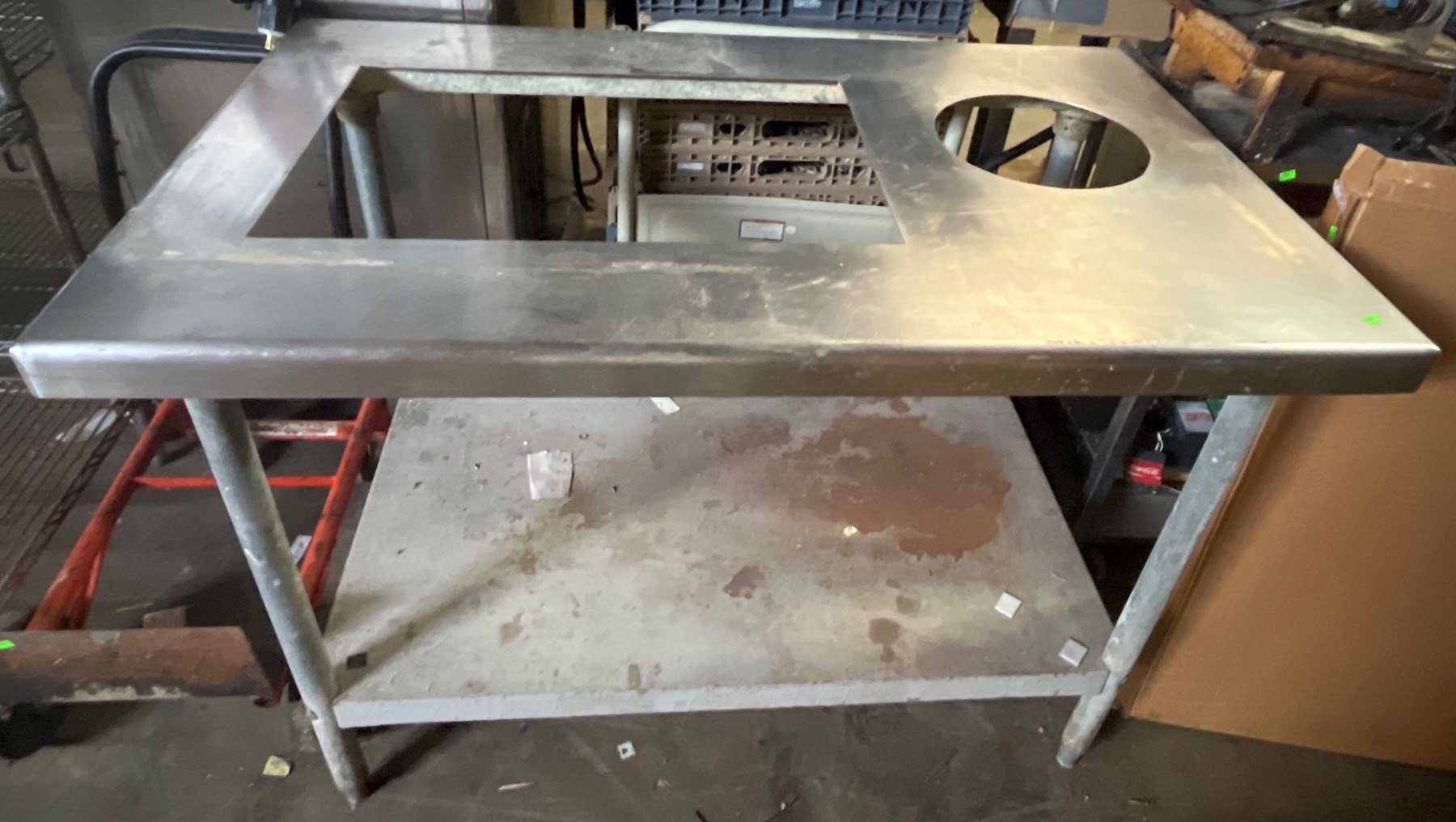 139 Stainless Steel Work Table with 3 Cutouts and Metal Frame, 34.5” x 94” x 30”