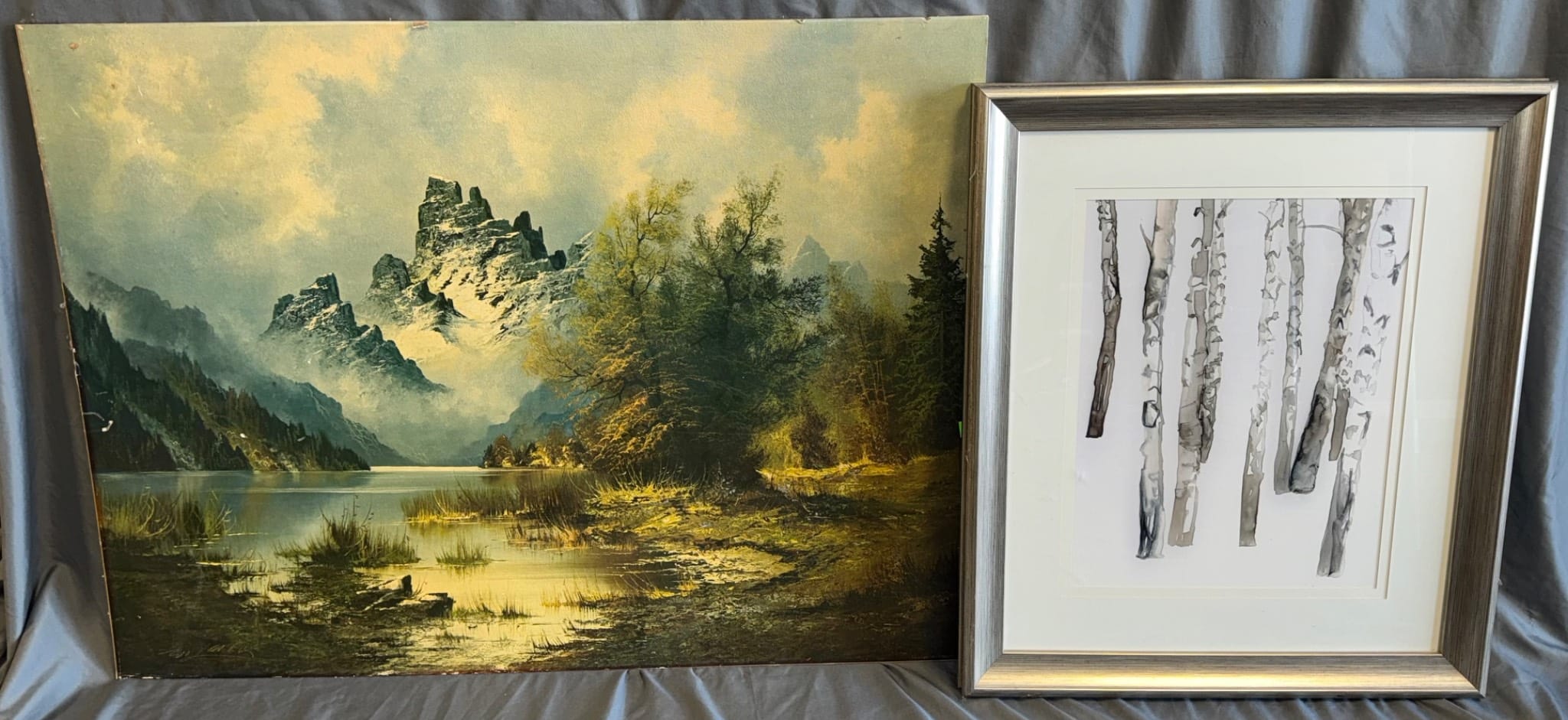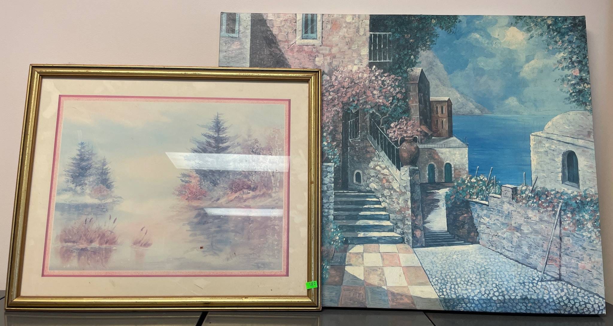 130 Framed Landscape Watercolor Print and Mediterranean Scene Canvas, 17.5”x21.5” and 22”x28”