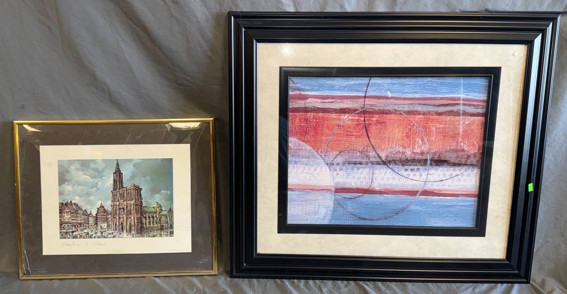 102 Framed Abstract Art and Strasbourg Cathedral Print 31 x 25 – 20.5 x 16.5