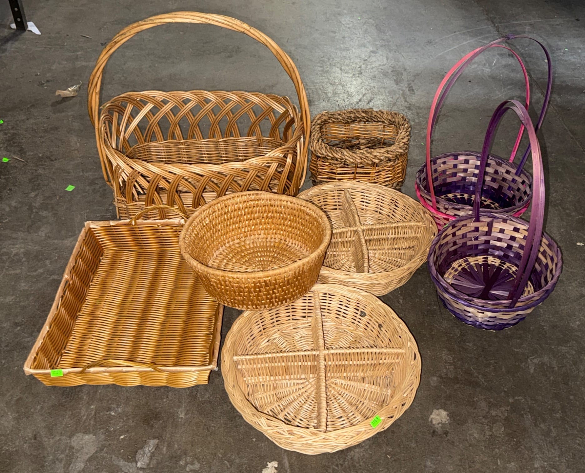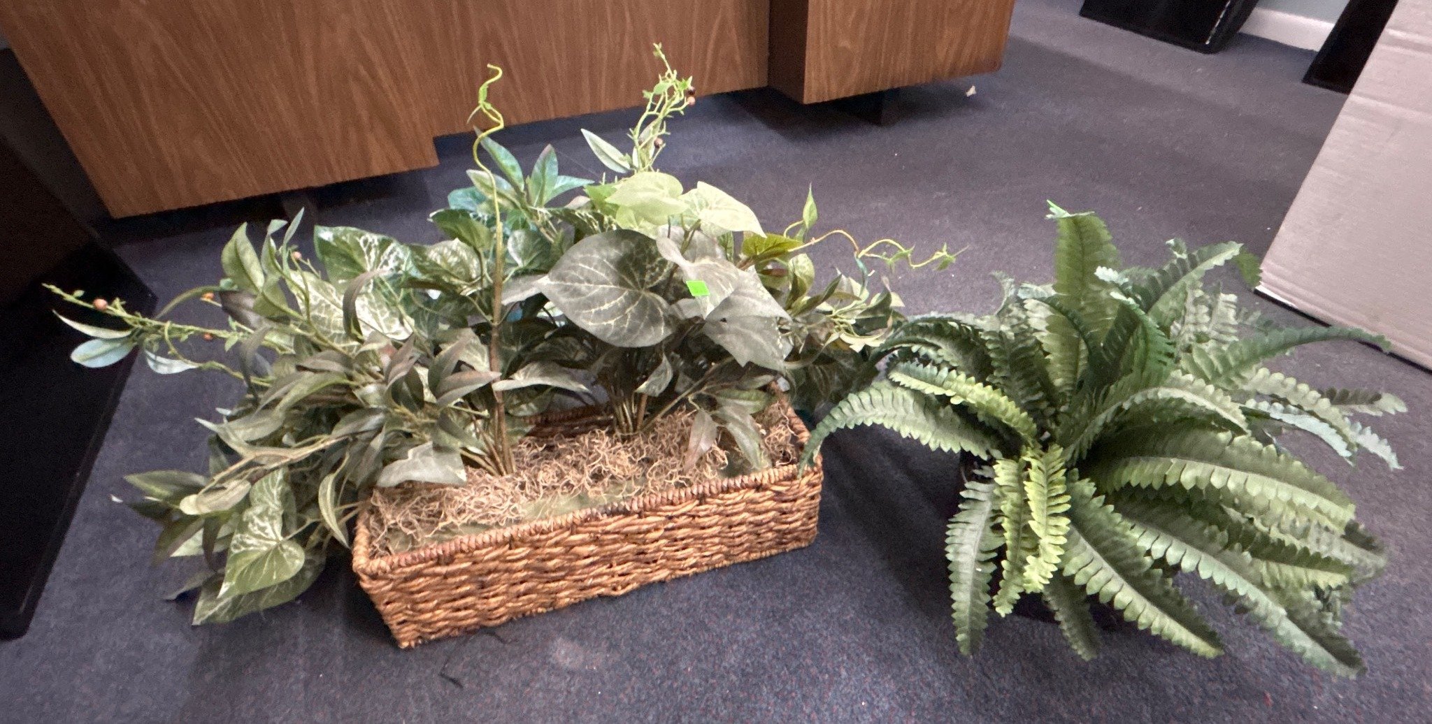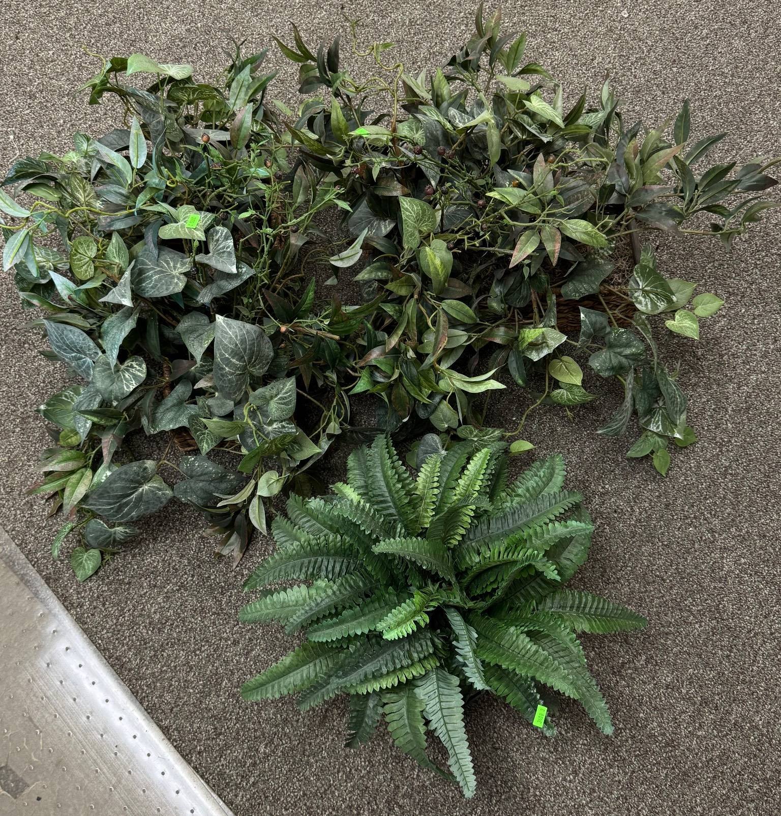 3408 Artificial Plants in Rattan and Metal Pots, (2) 15” and (1) 6” Plants