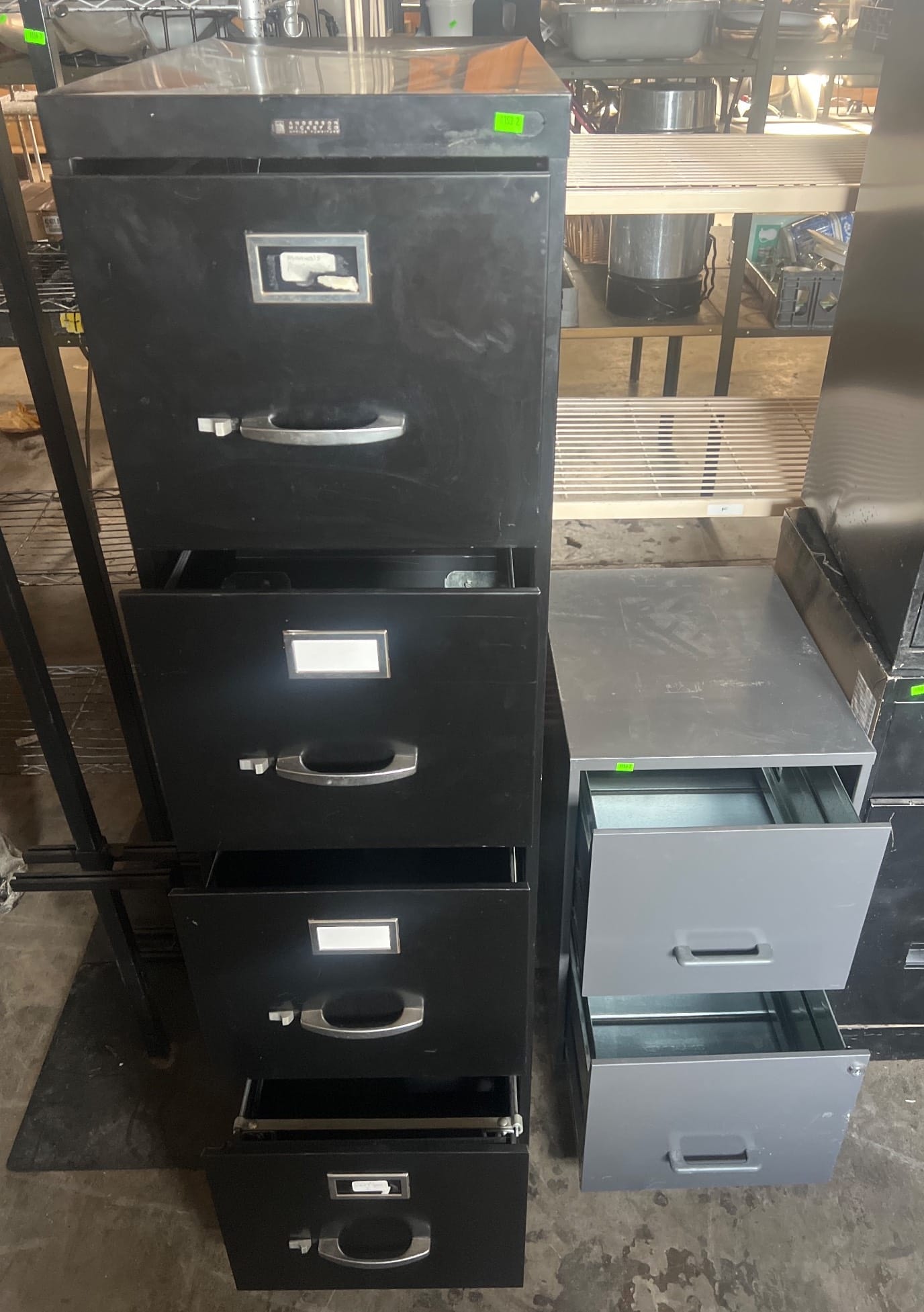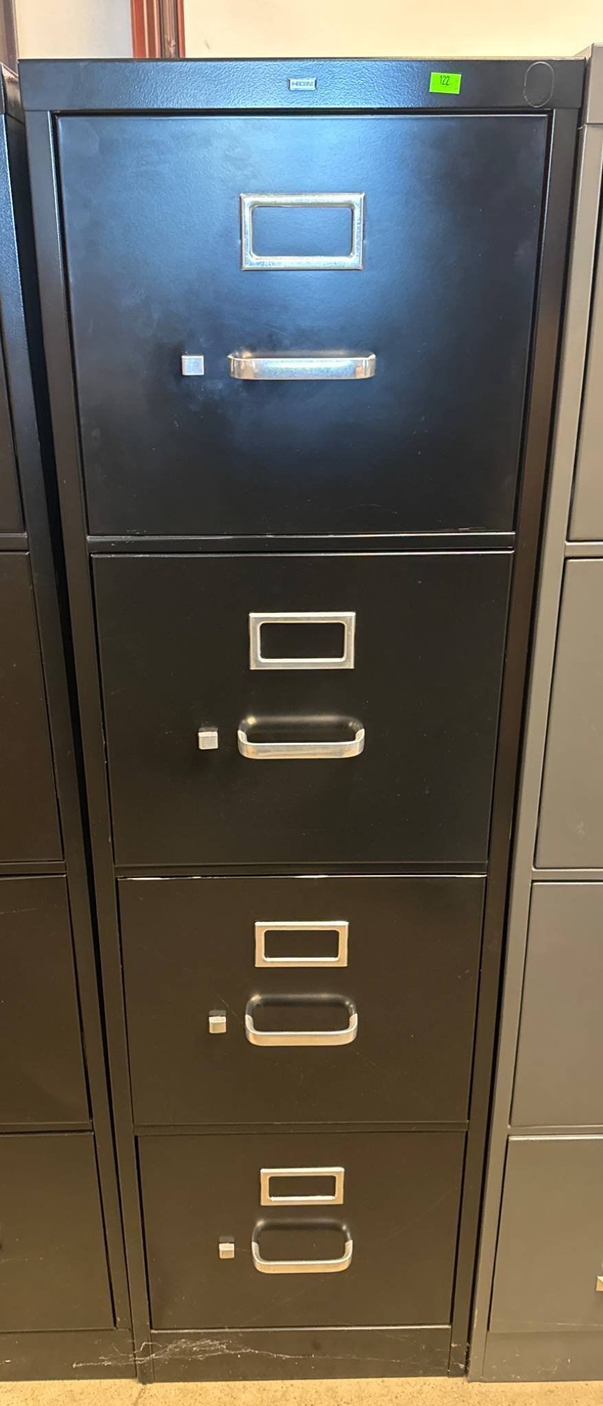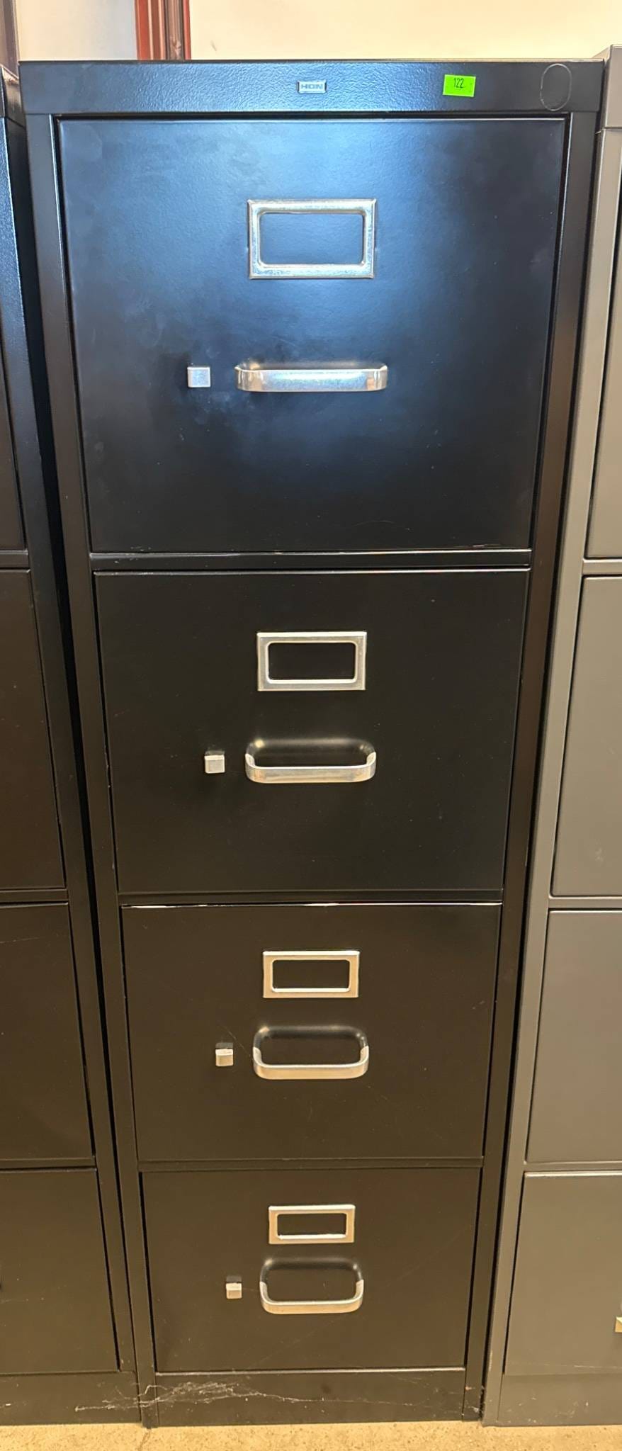 122 HON Black Metal 4-Drawer File Cabinet, 26.5 x 15 x 62 (no key)
