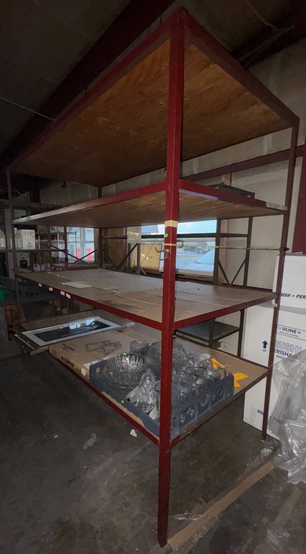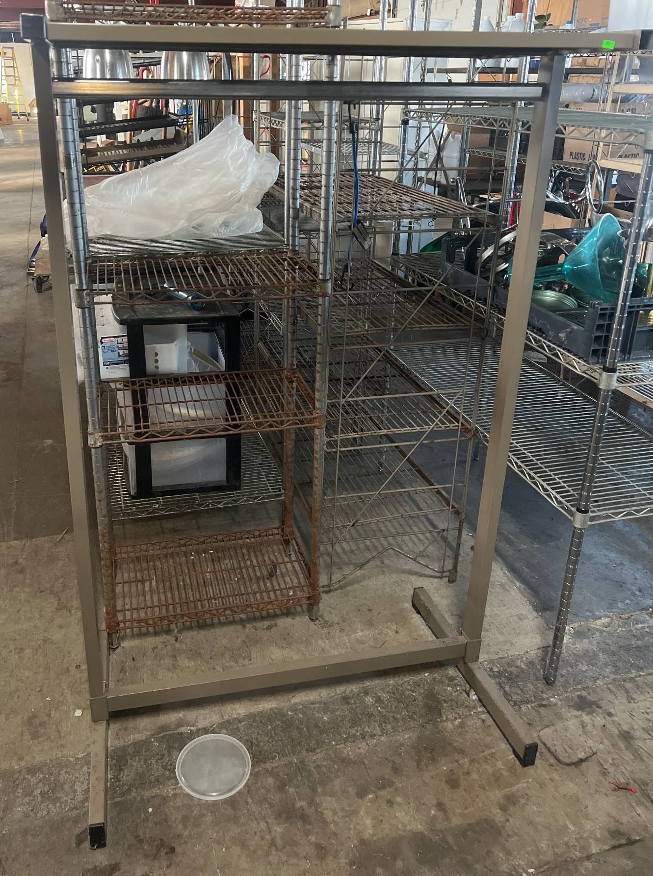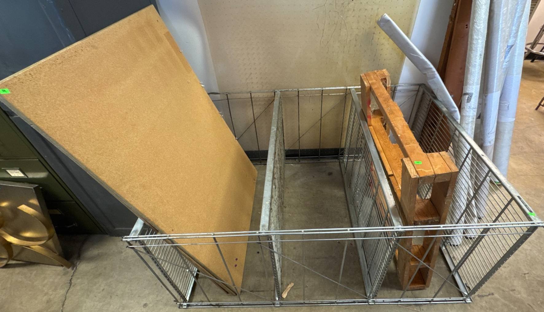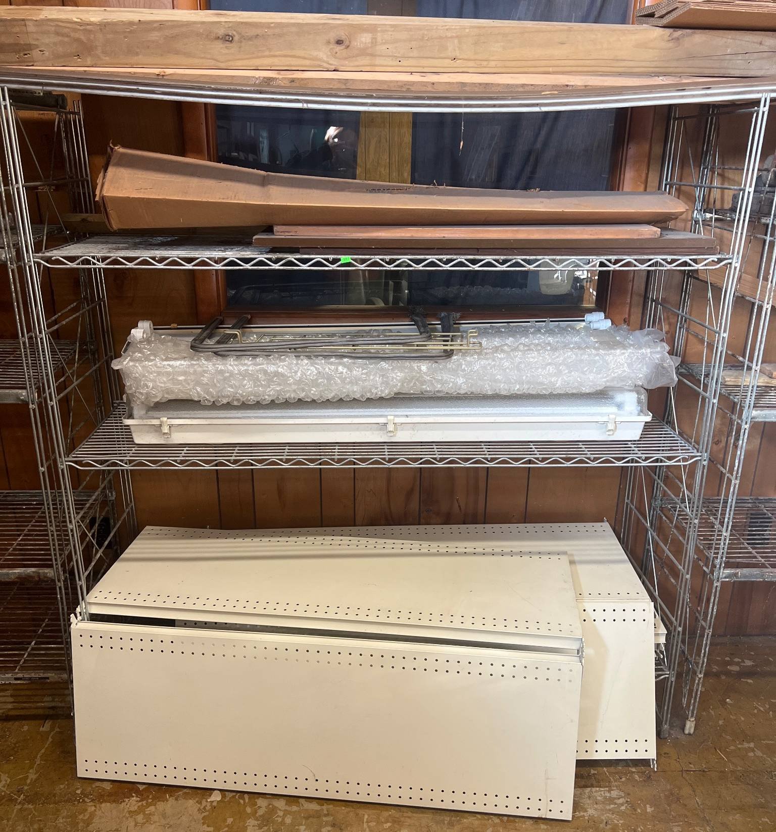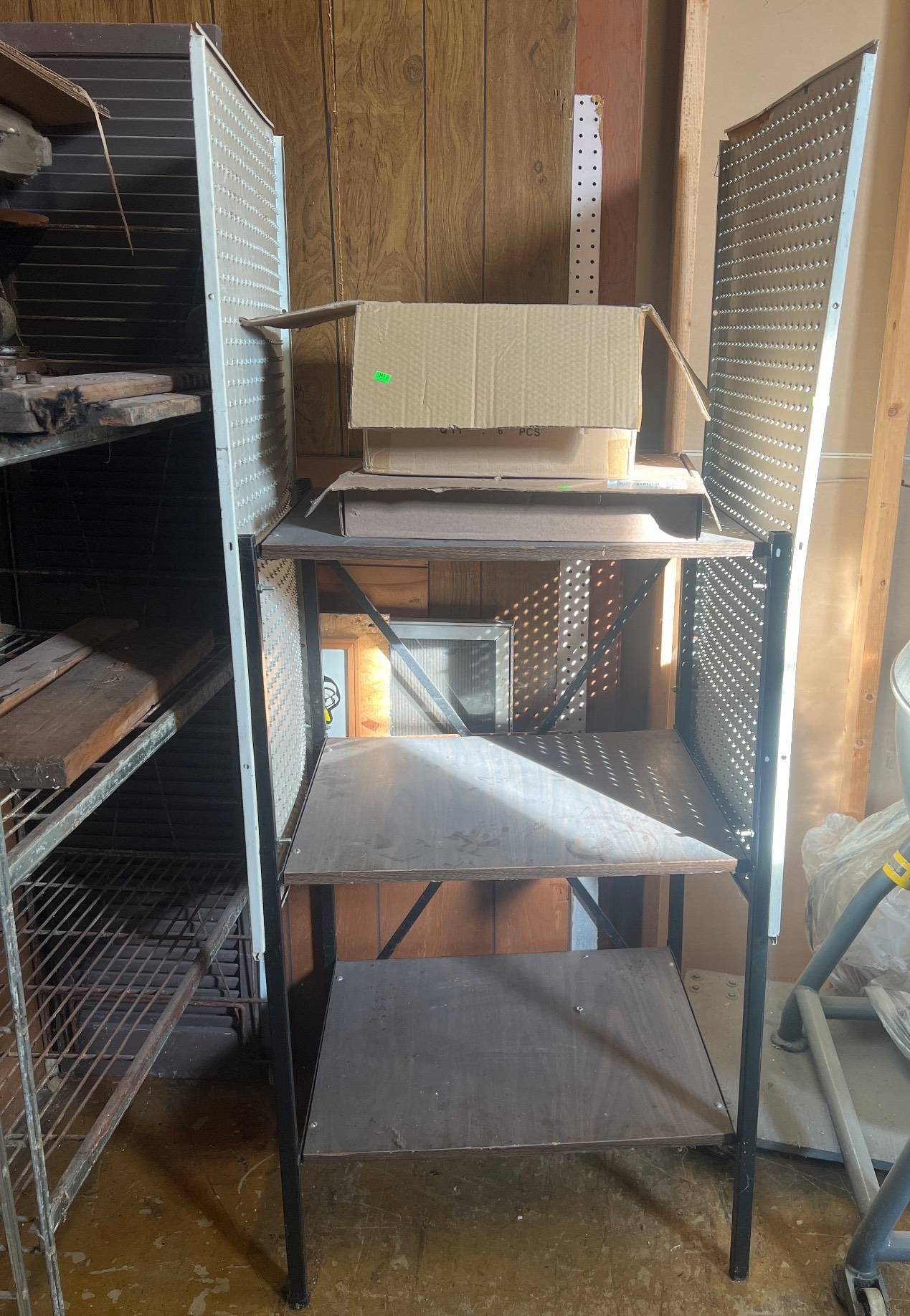 104 Metal Shelving Unit with Panel Board and Wood Skid 55 x 42.5 x 24
