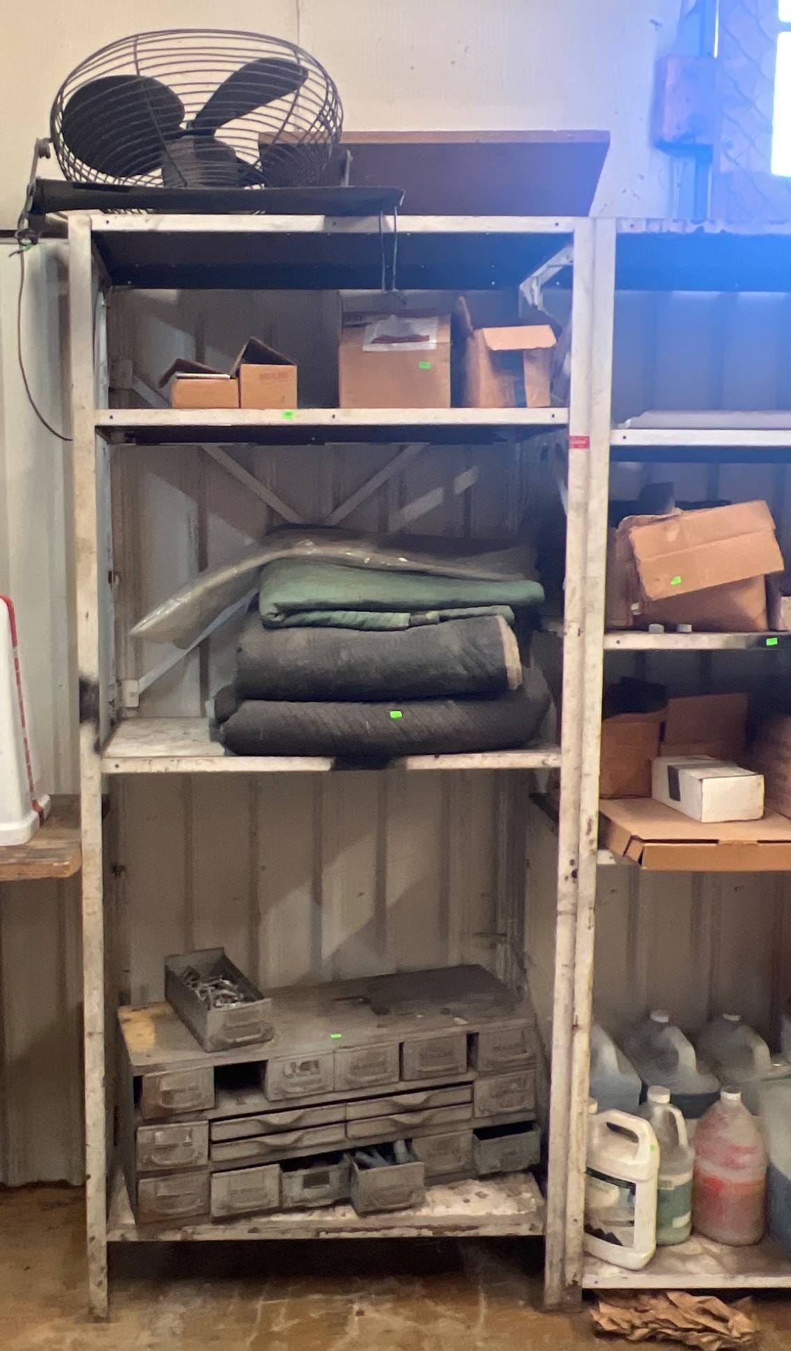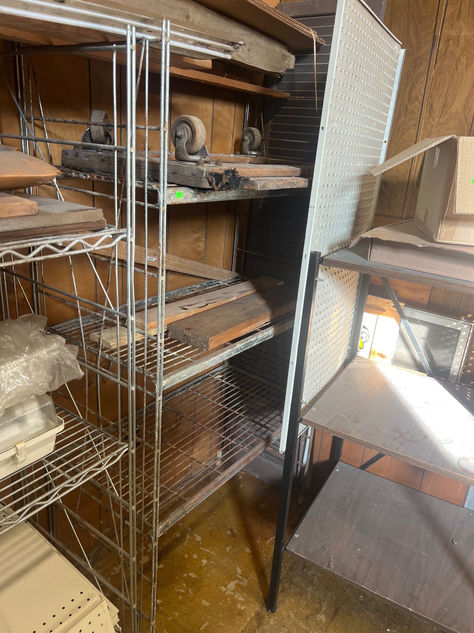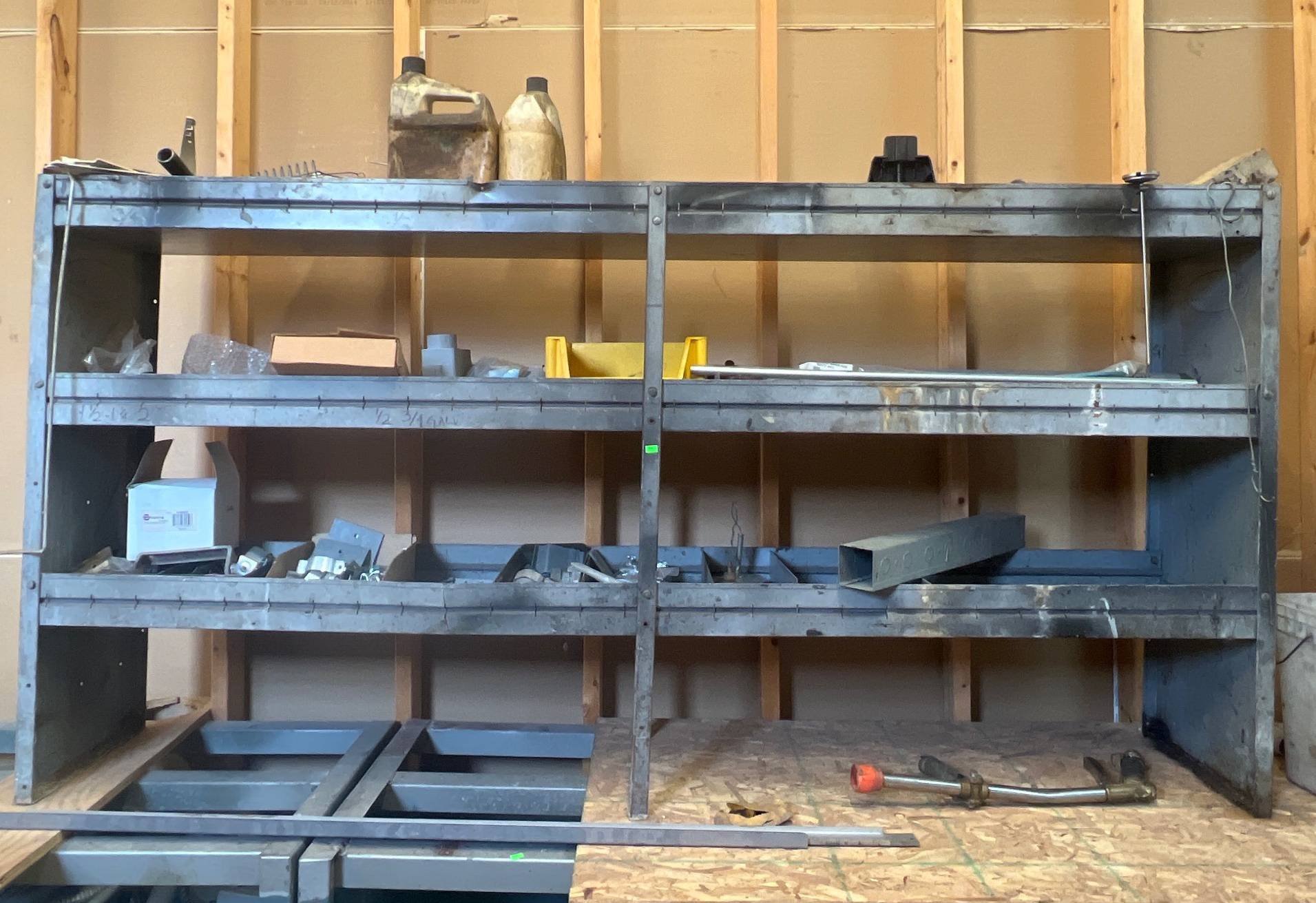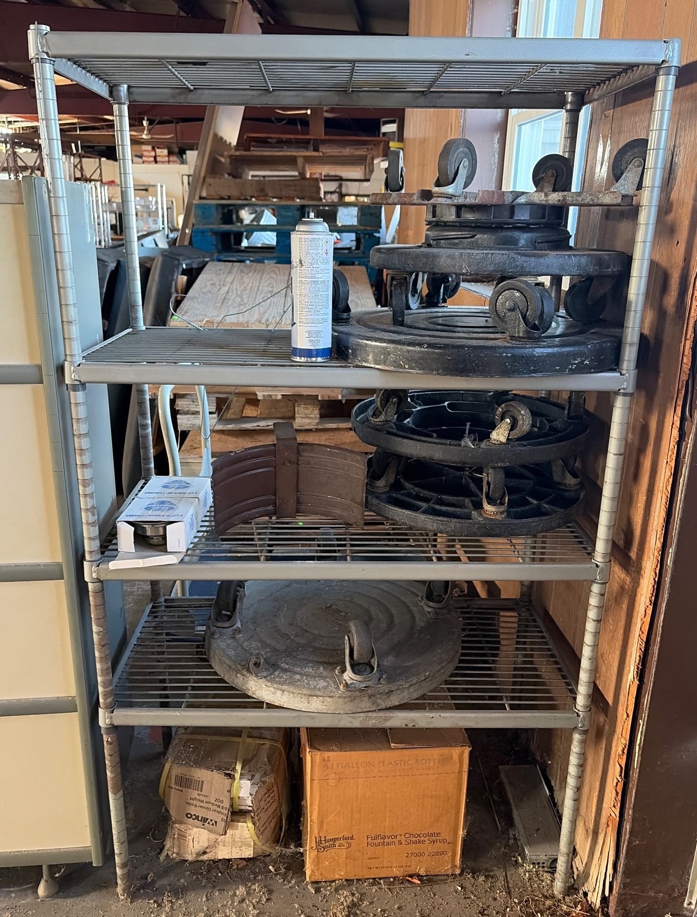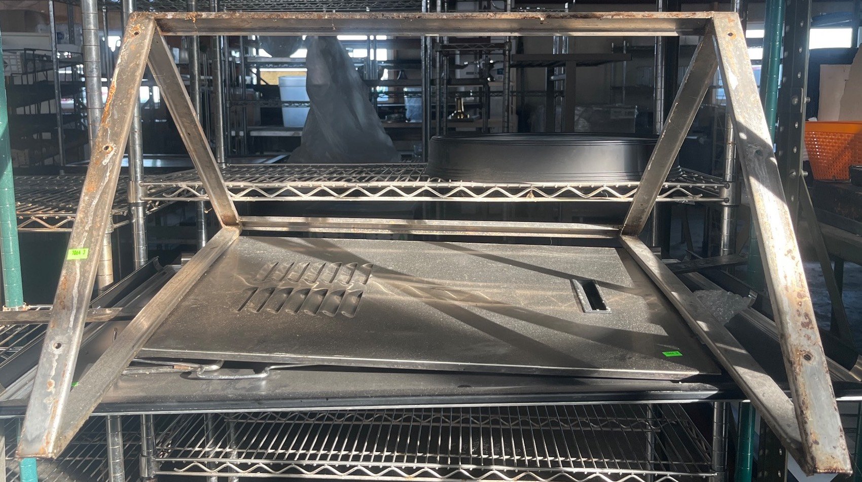 104 Metal Shelving Unit with Panel Board and Wood Skid 55 x 42.5 x 24