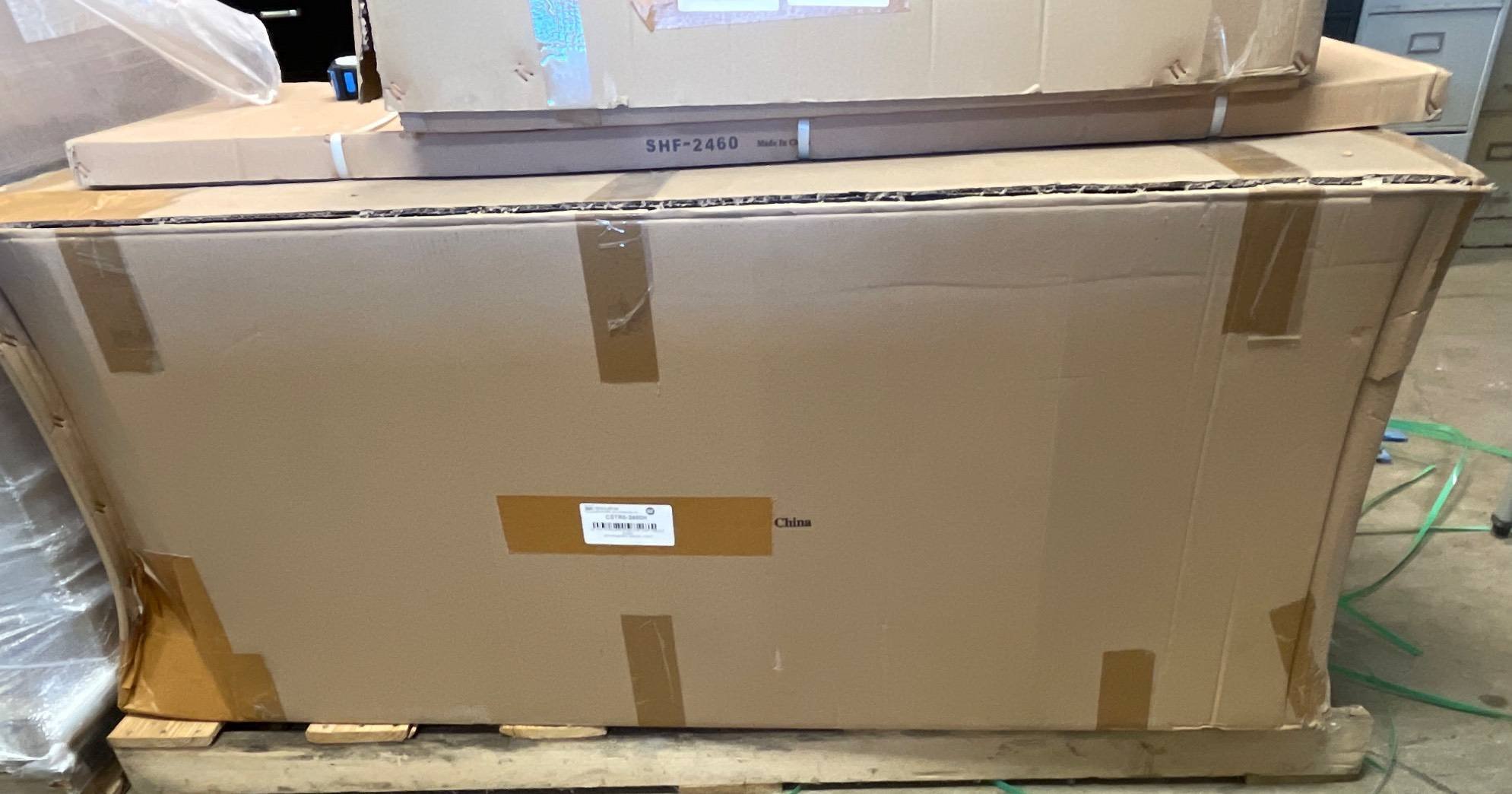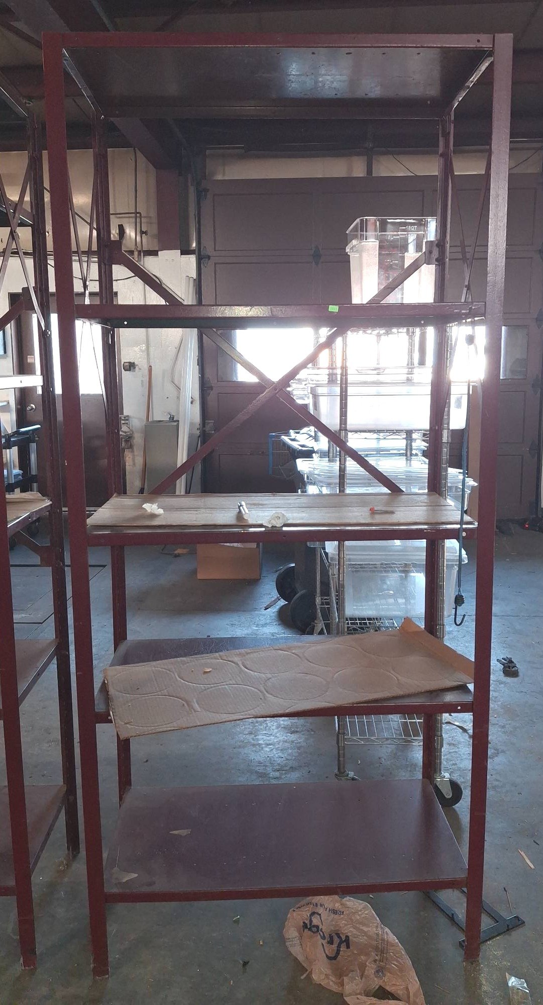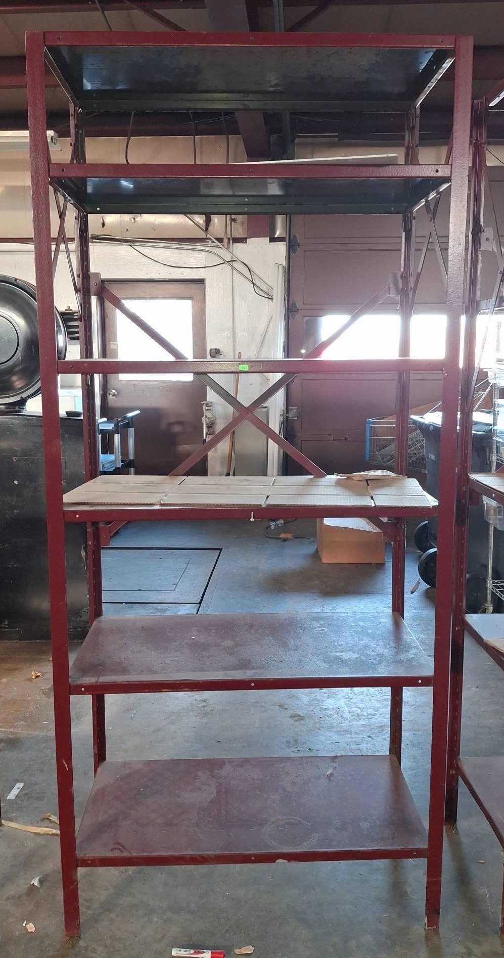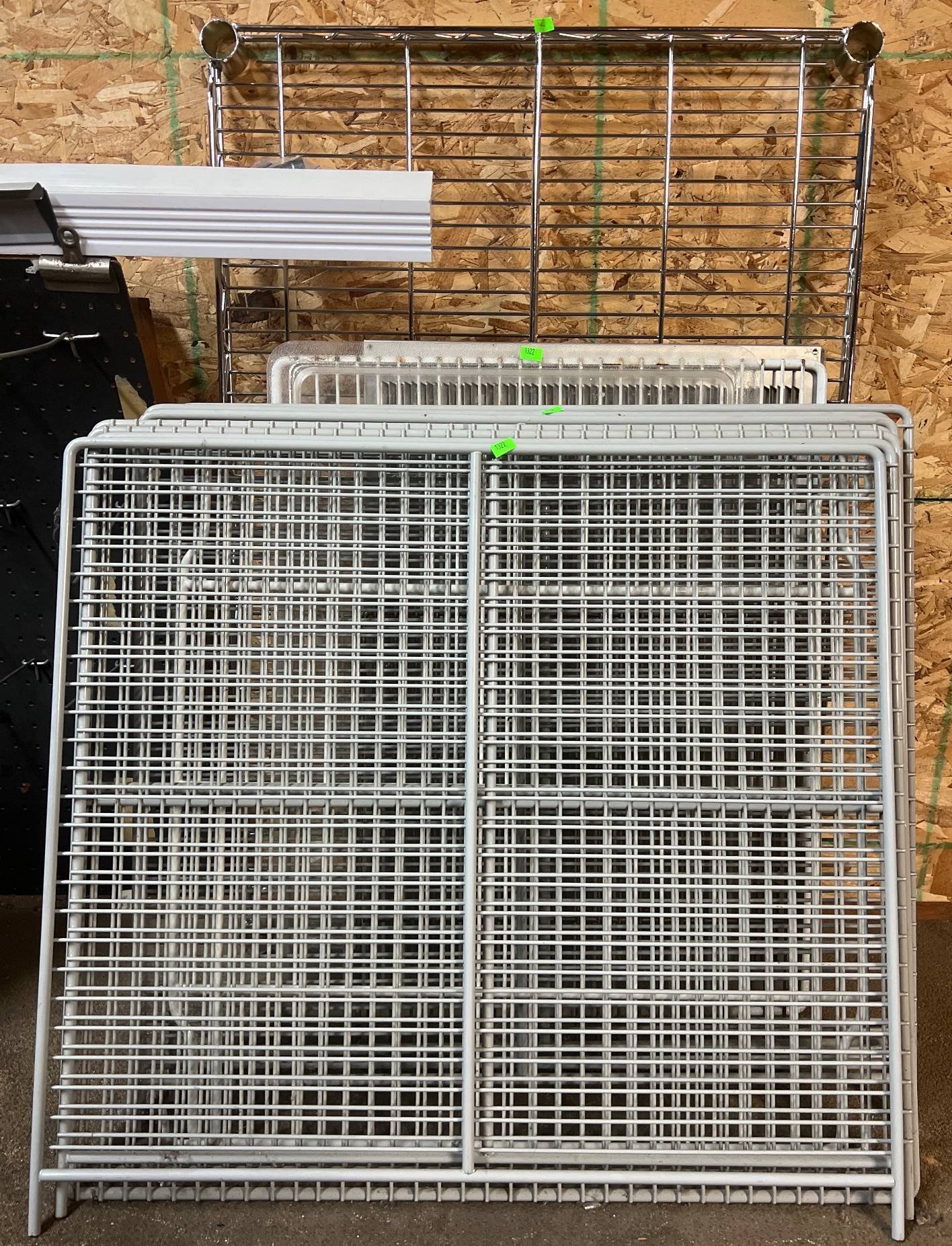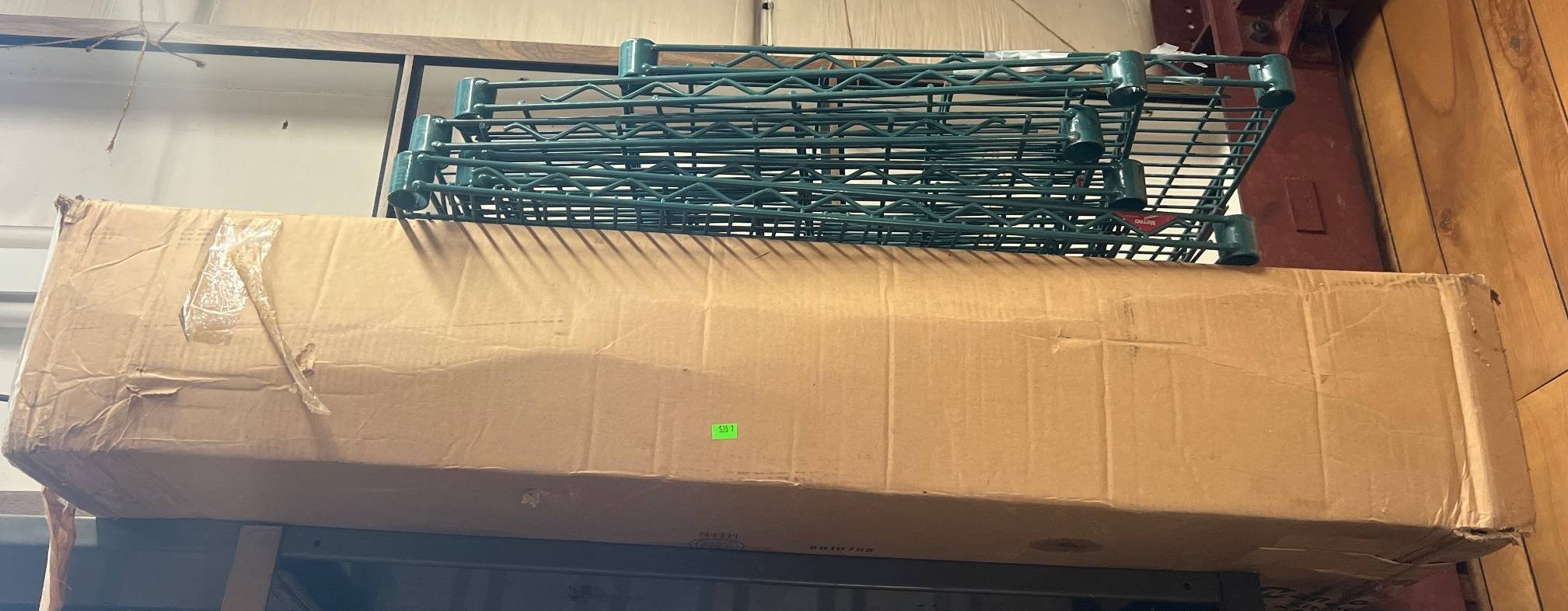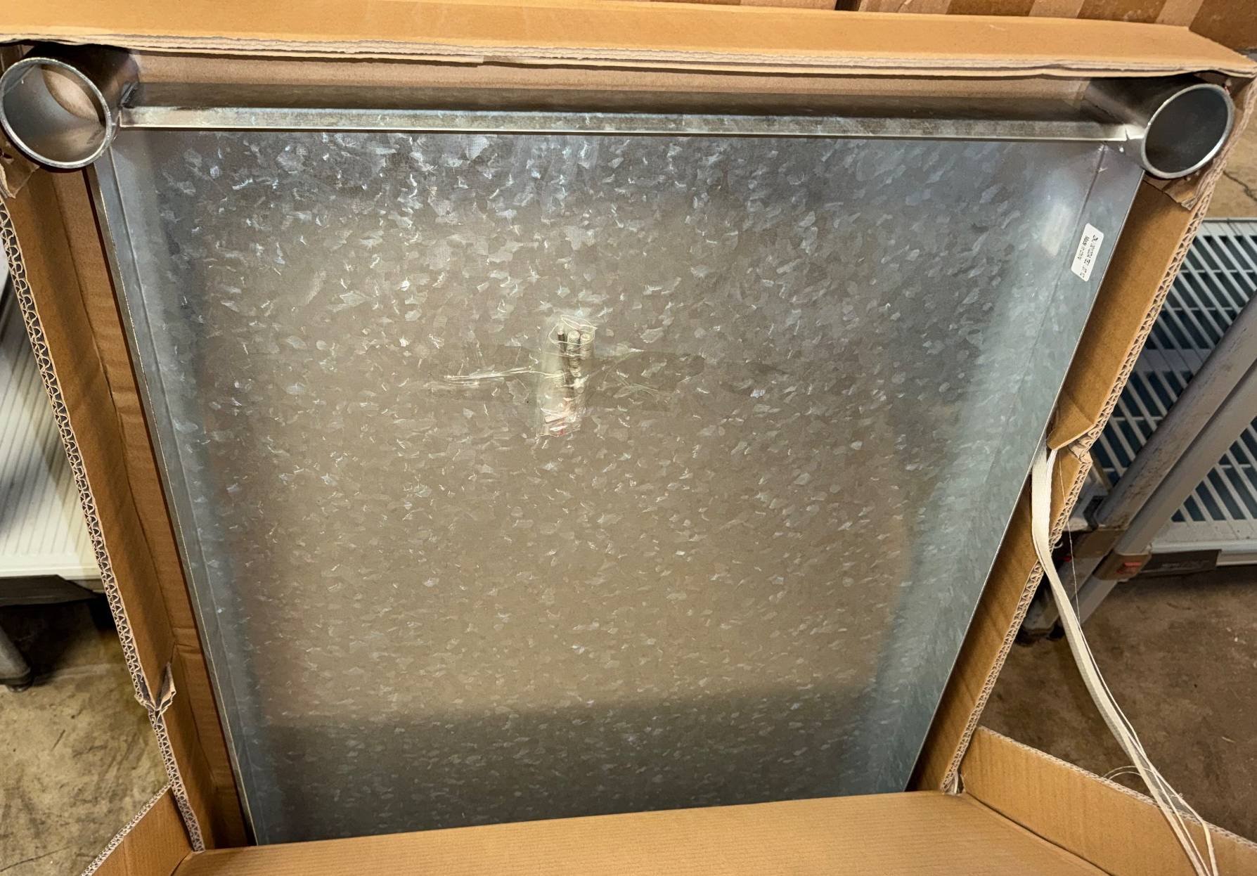 104 Metal Shelving Unit with Panel Board and Wood Skid 55 x 42.5 x 24