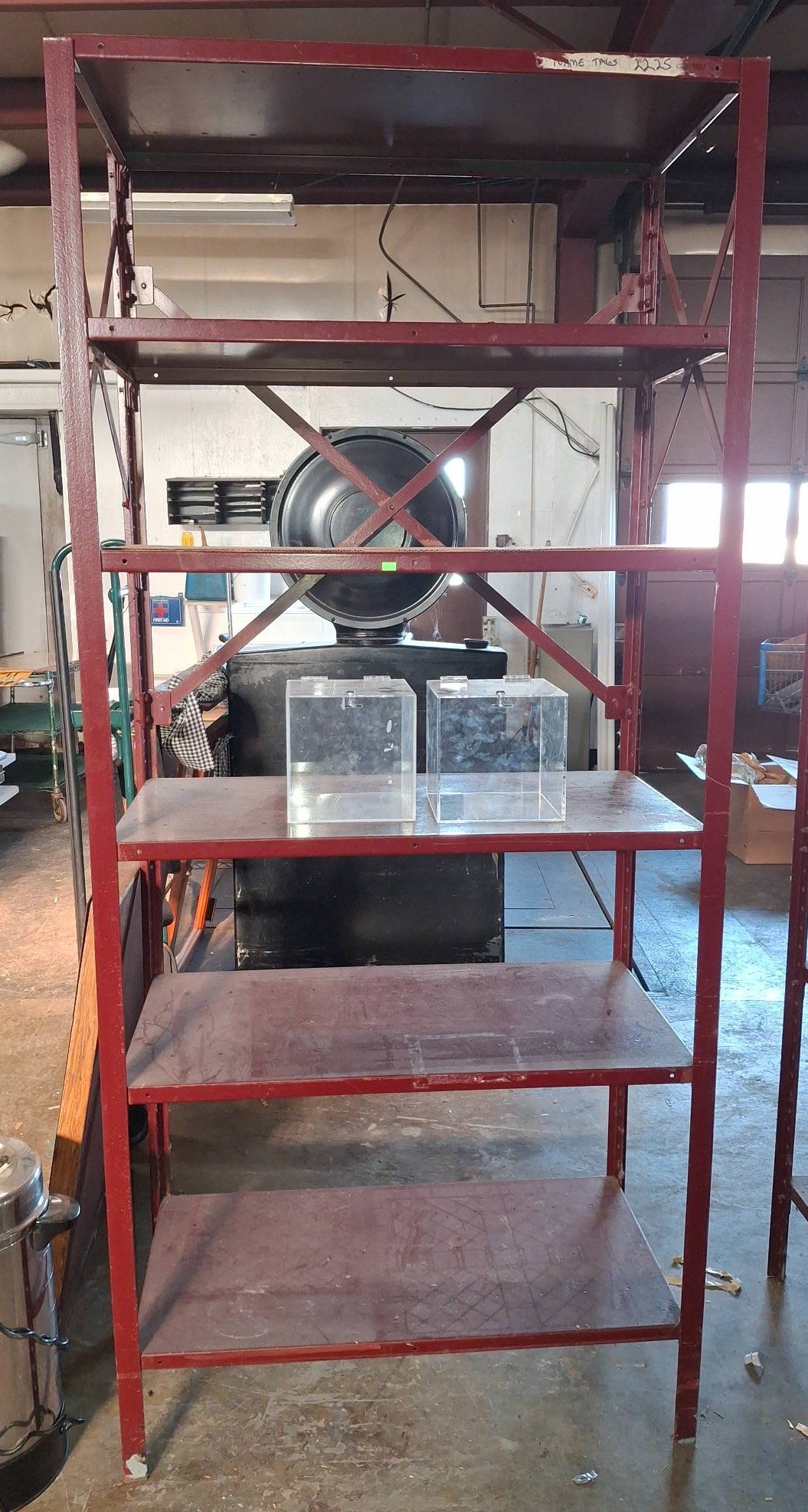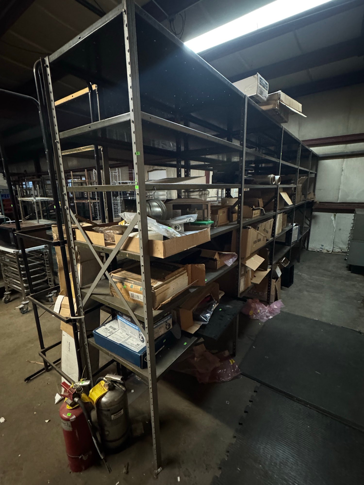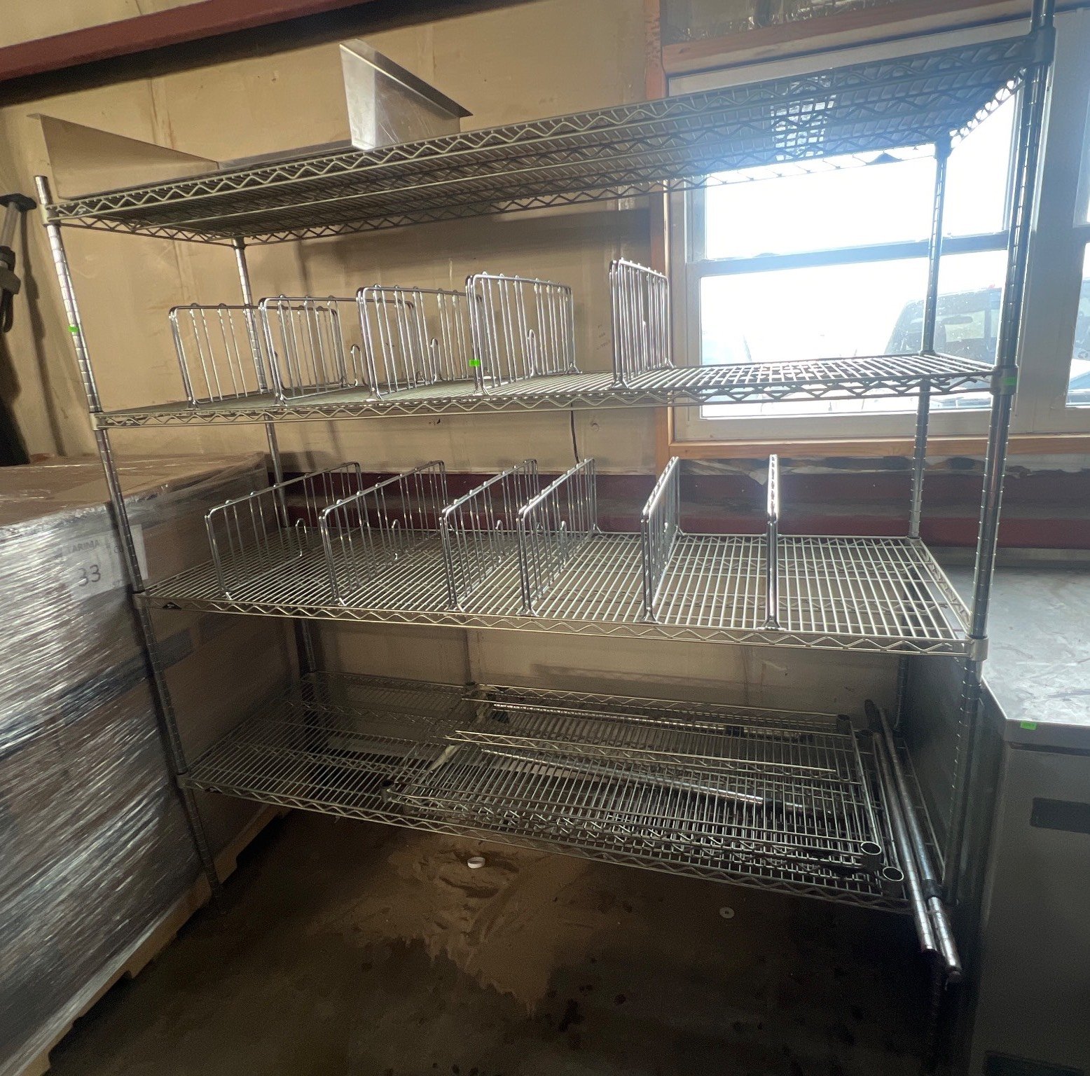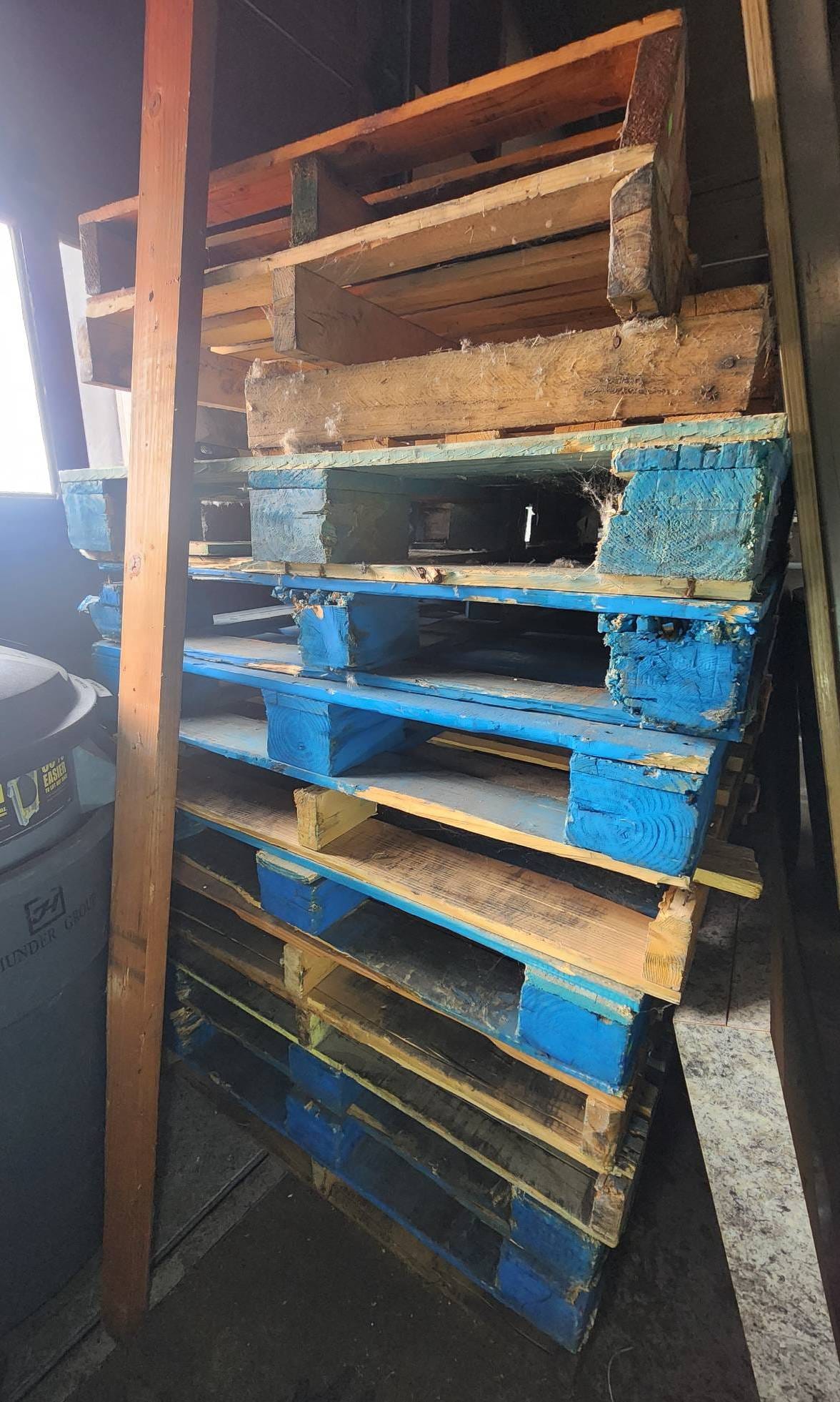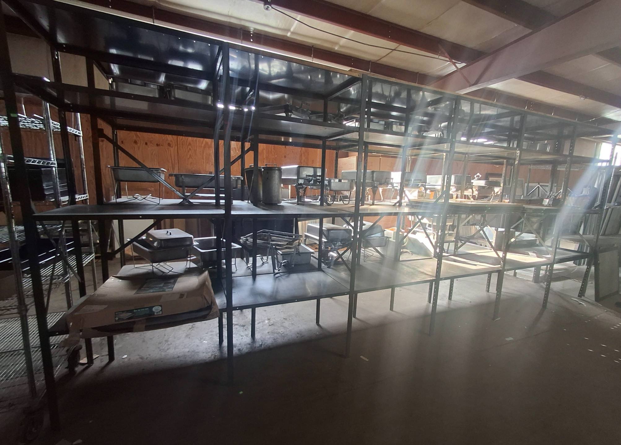 104 Metal Shelving Unit with Panel Board and Wood Skid 55 x 42.5 x 24