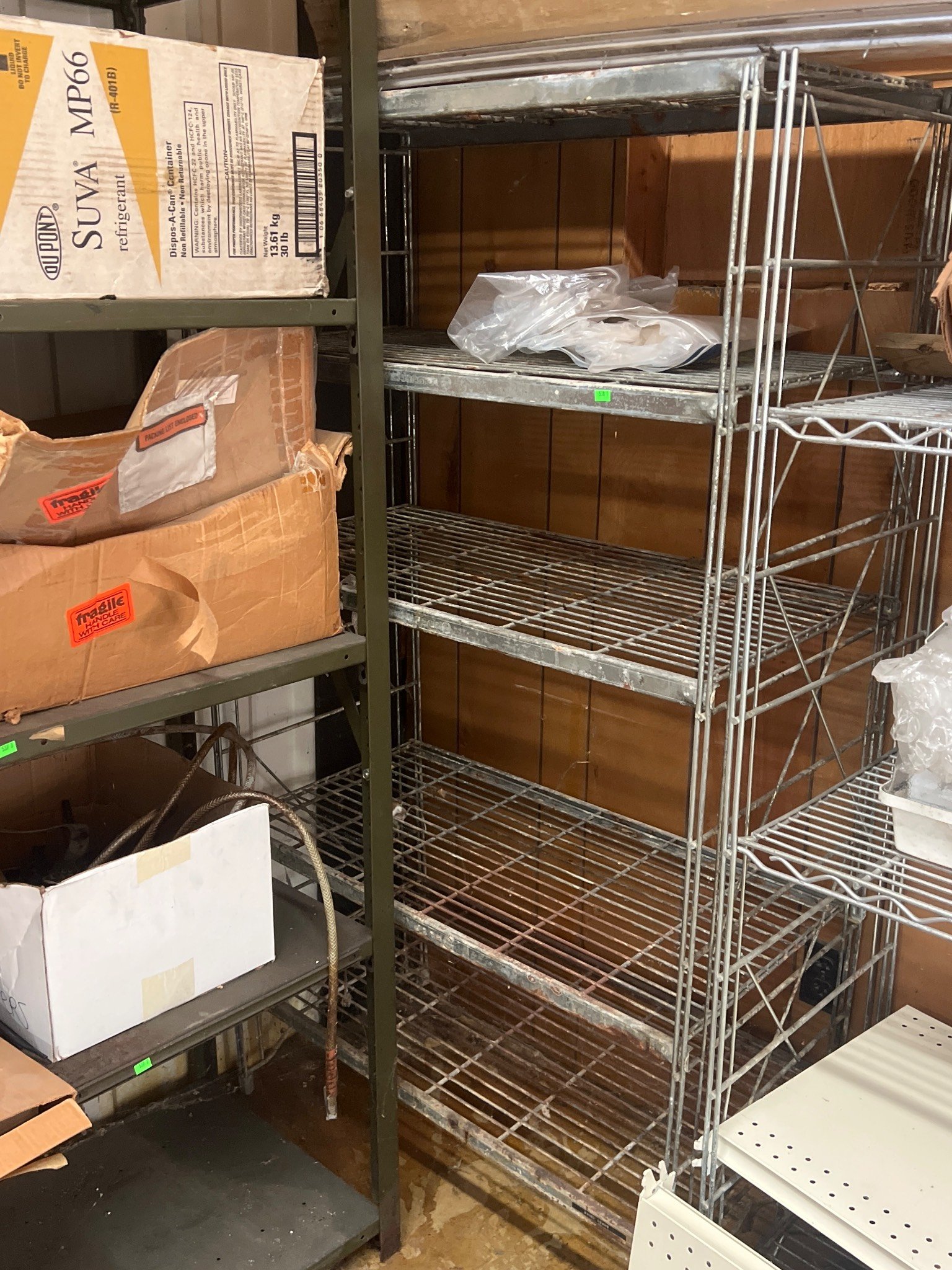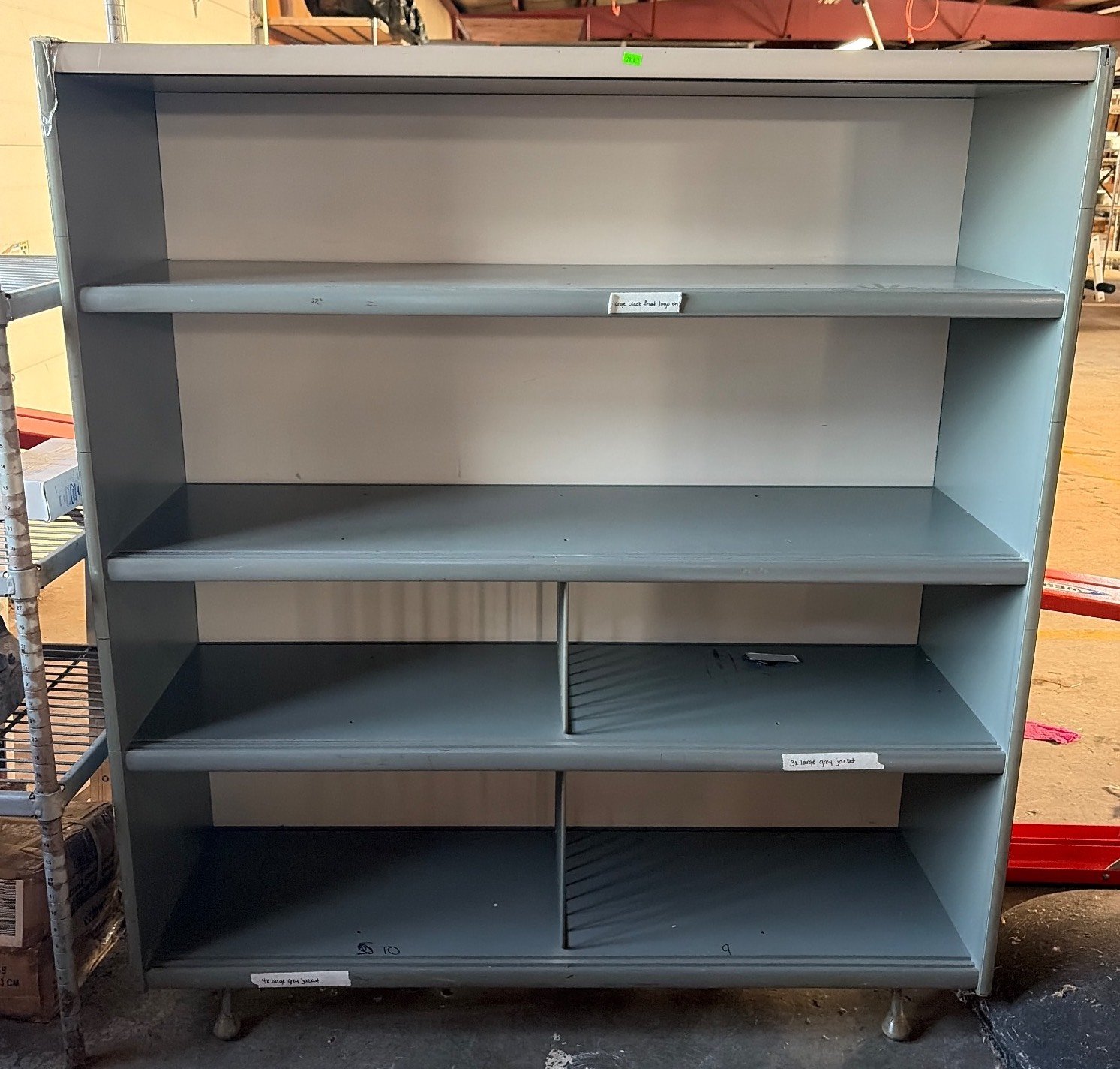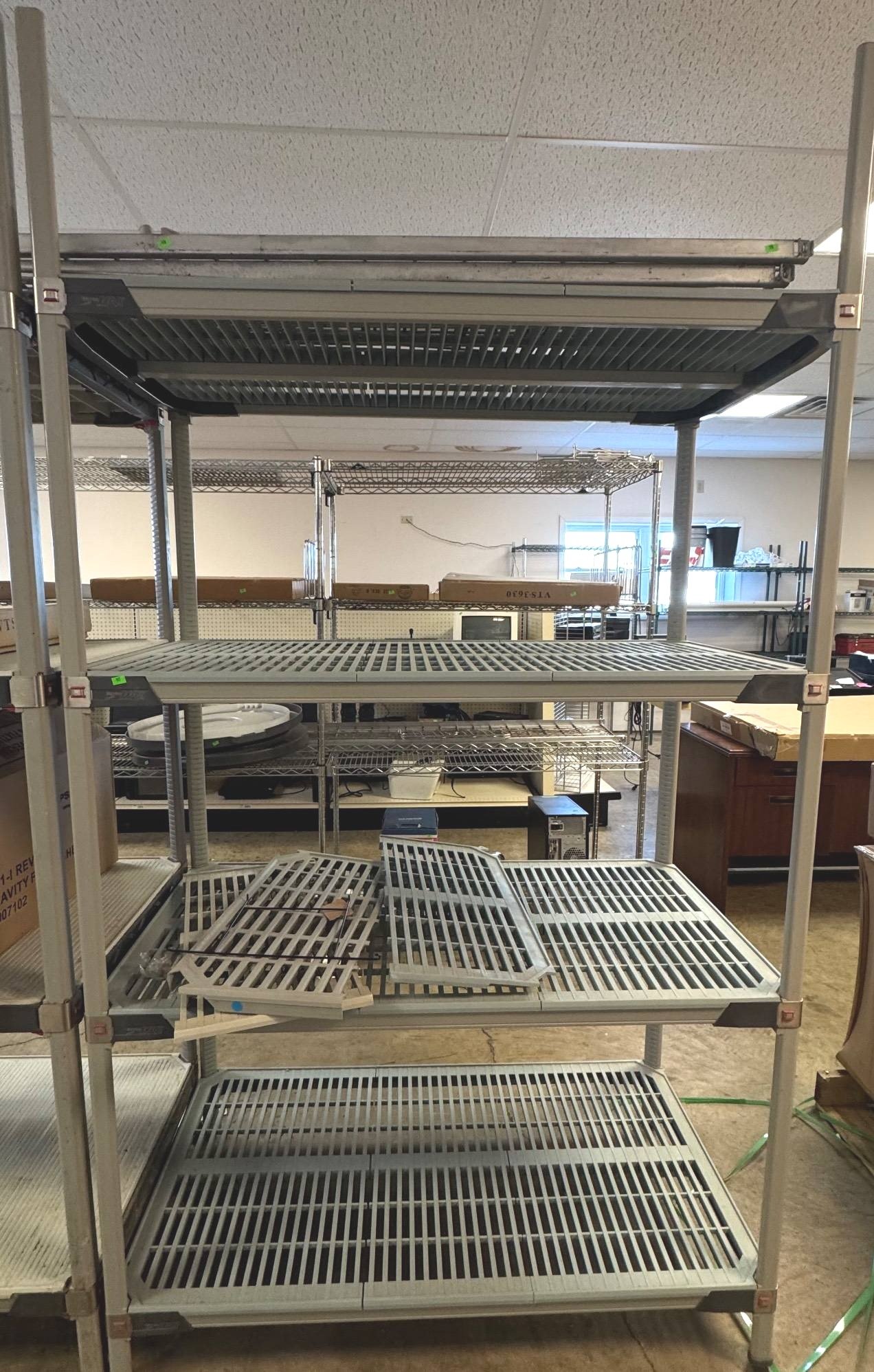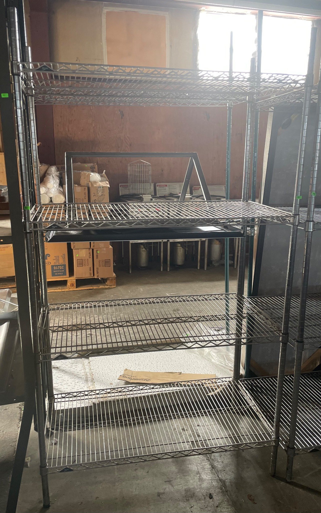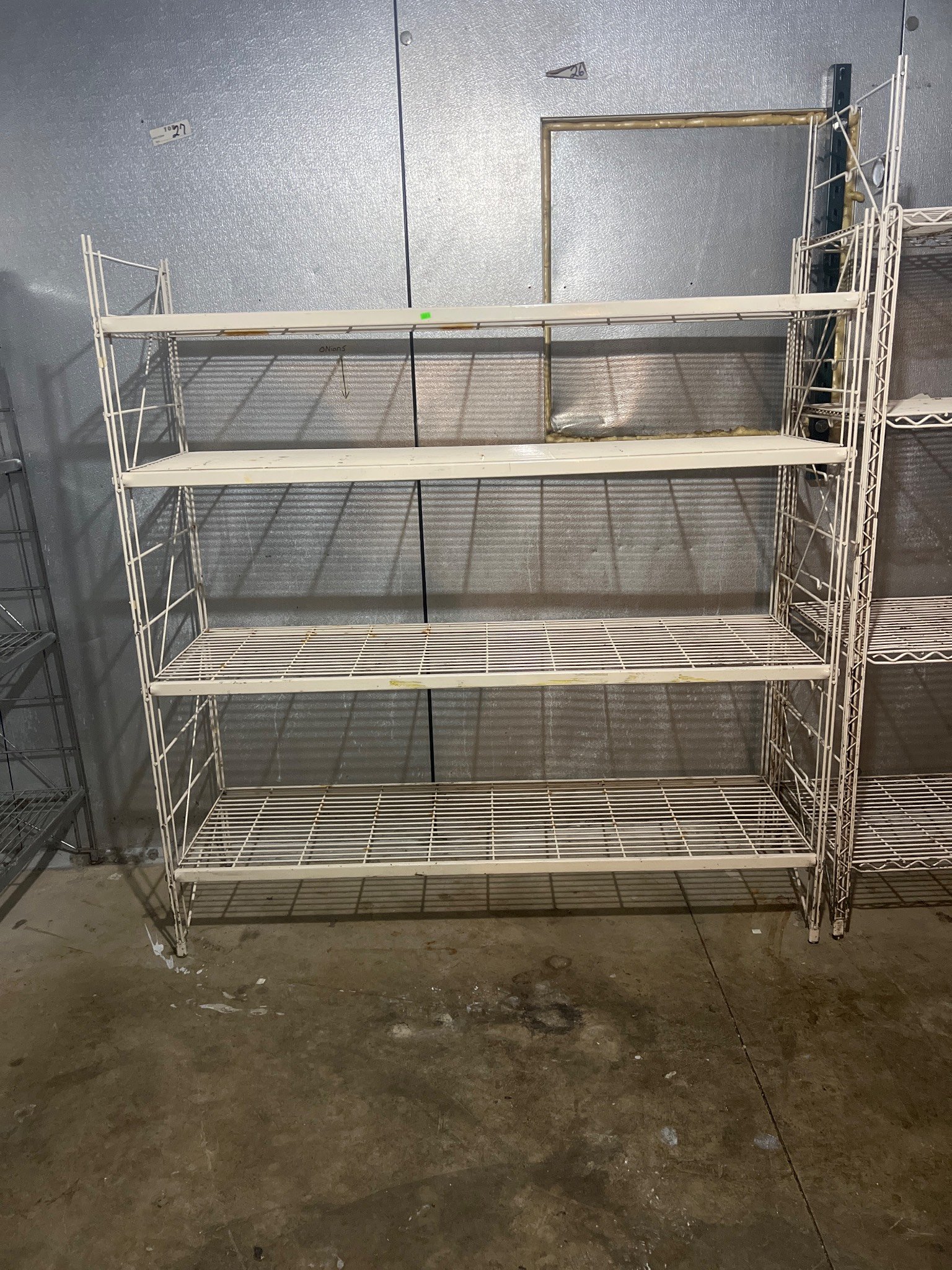 104 Metal Shelving Unit with Panel Board and Wood Skid 55 x 42.5 x 24