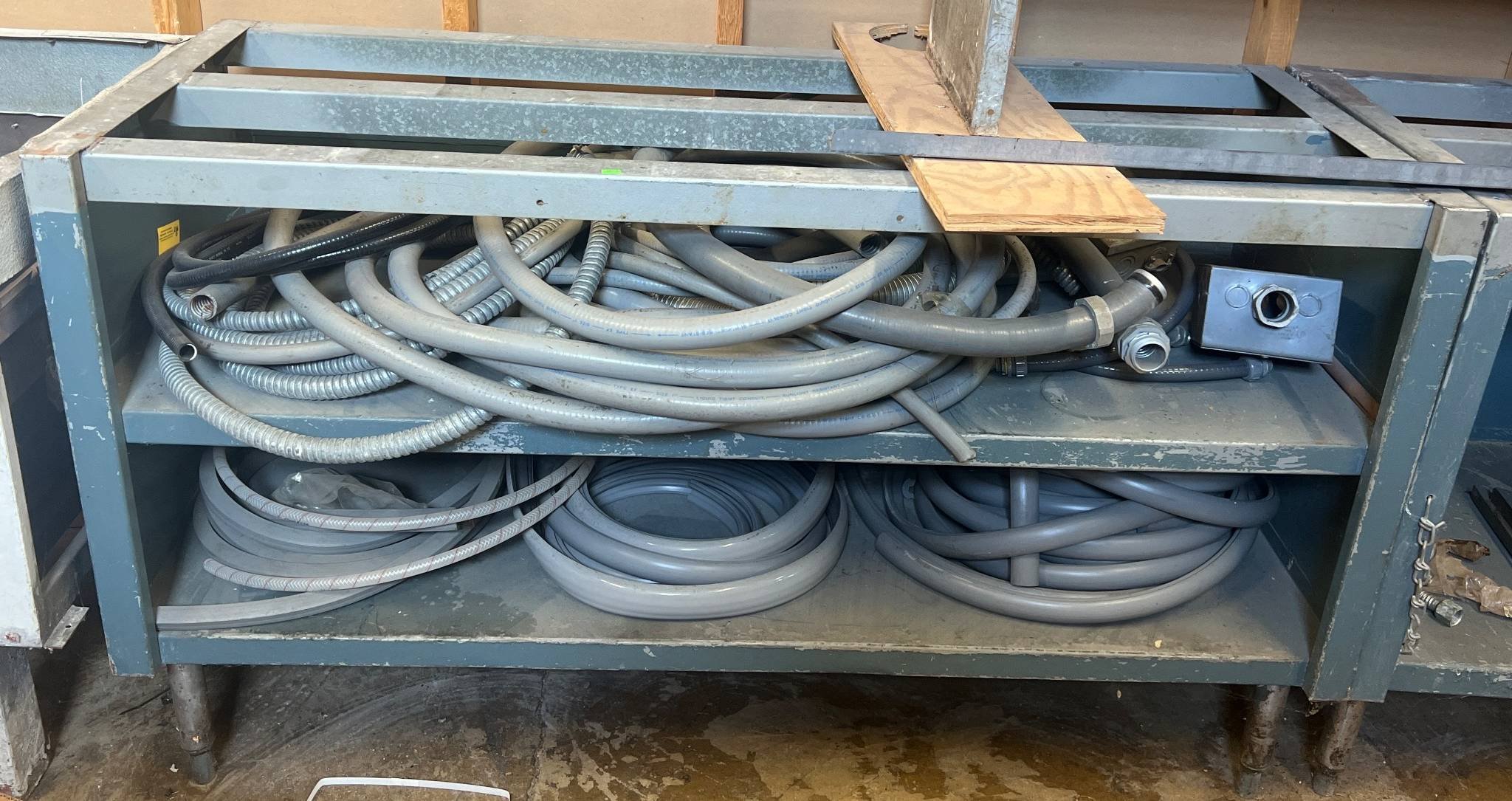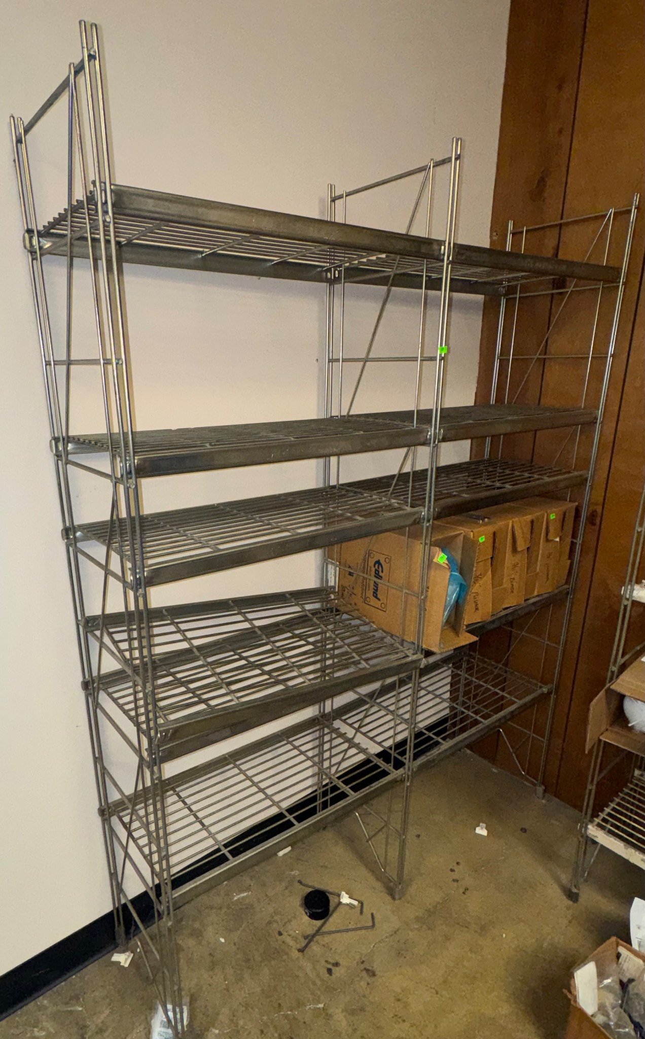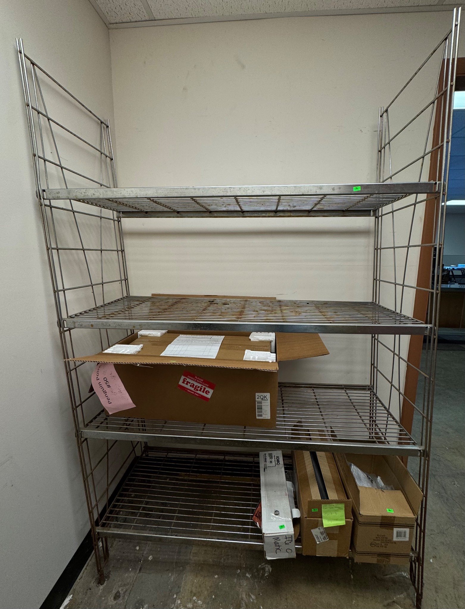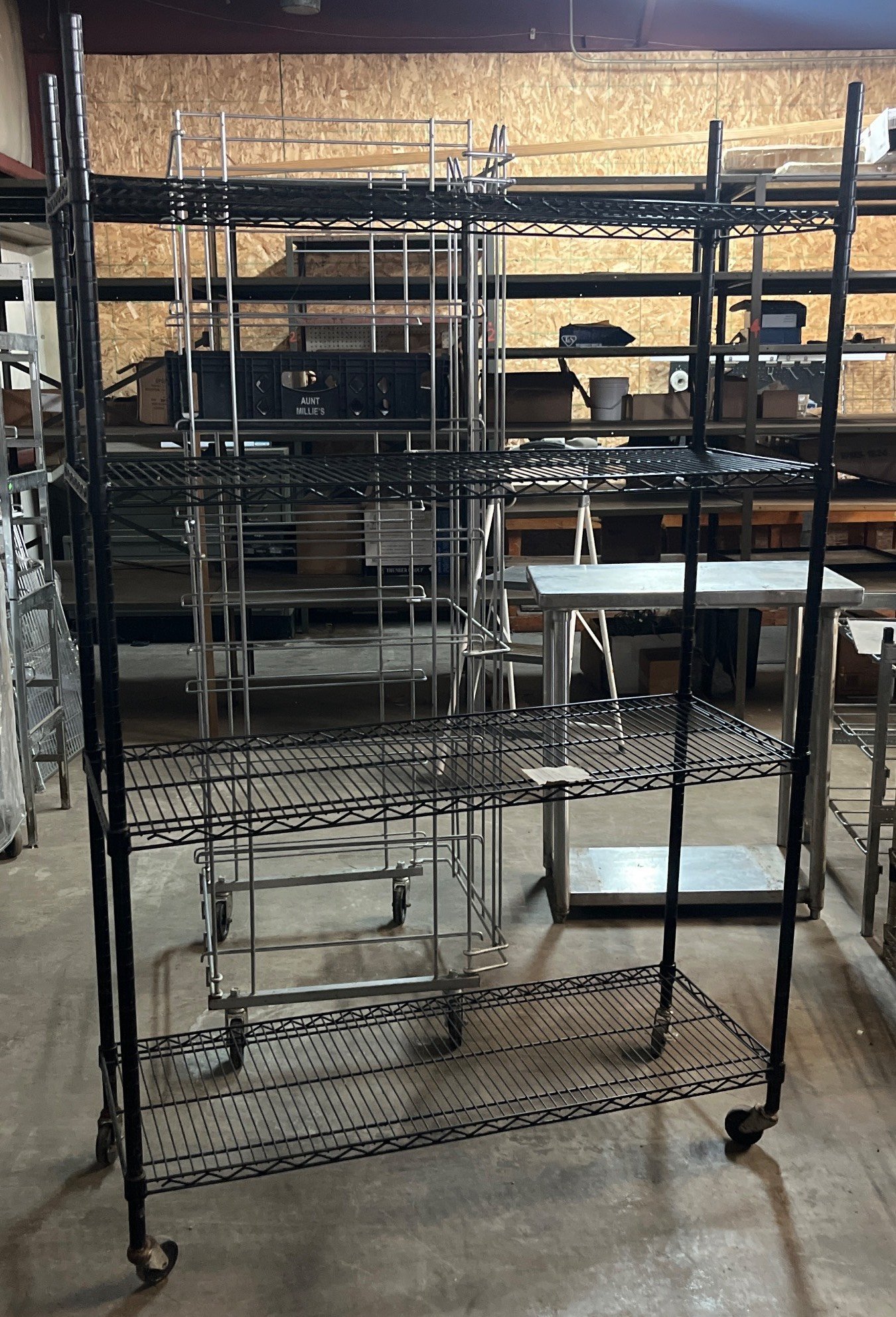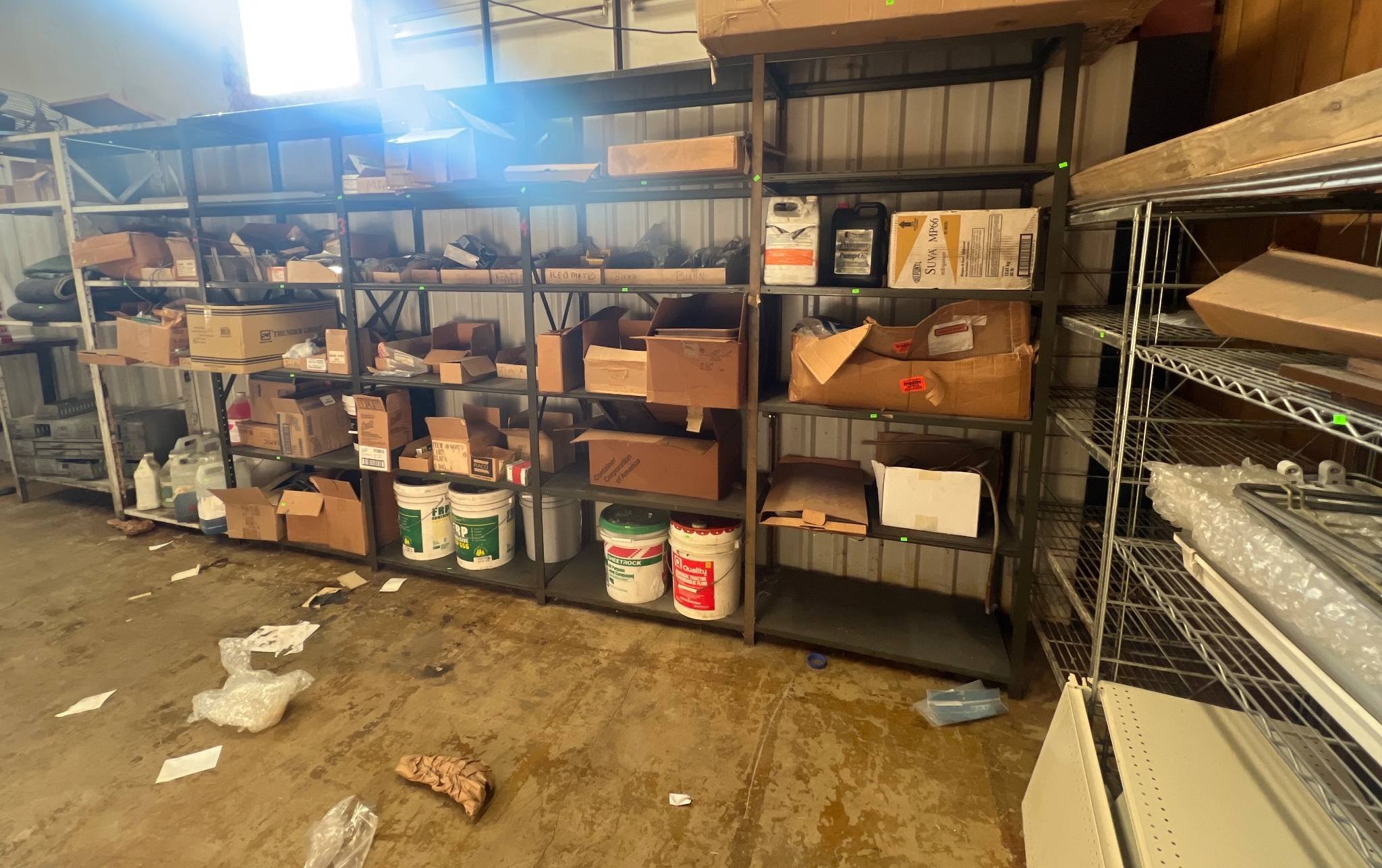 104 Metal Shelving Unit with Panel Board and Wood Skid 55 x 42.5 x 24