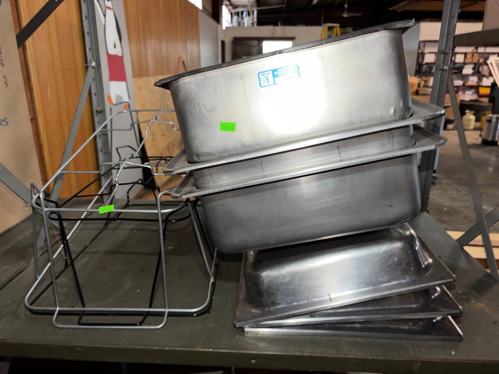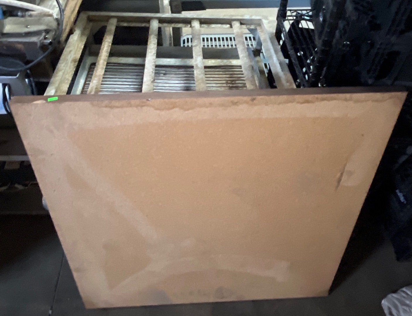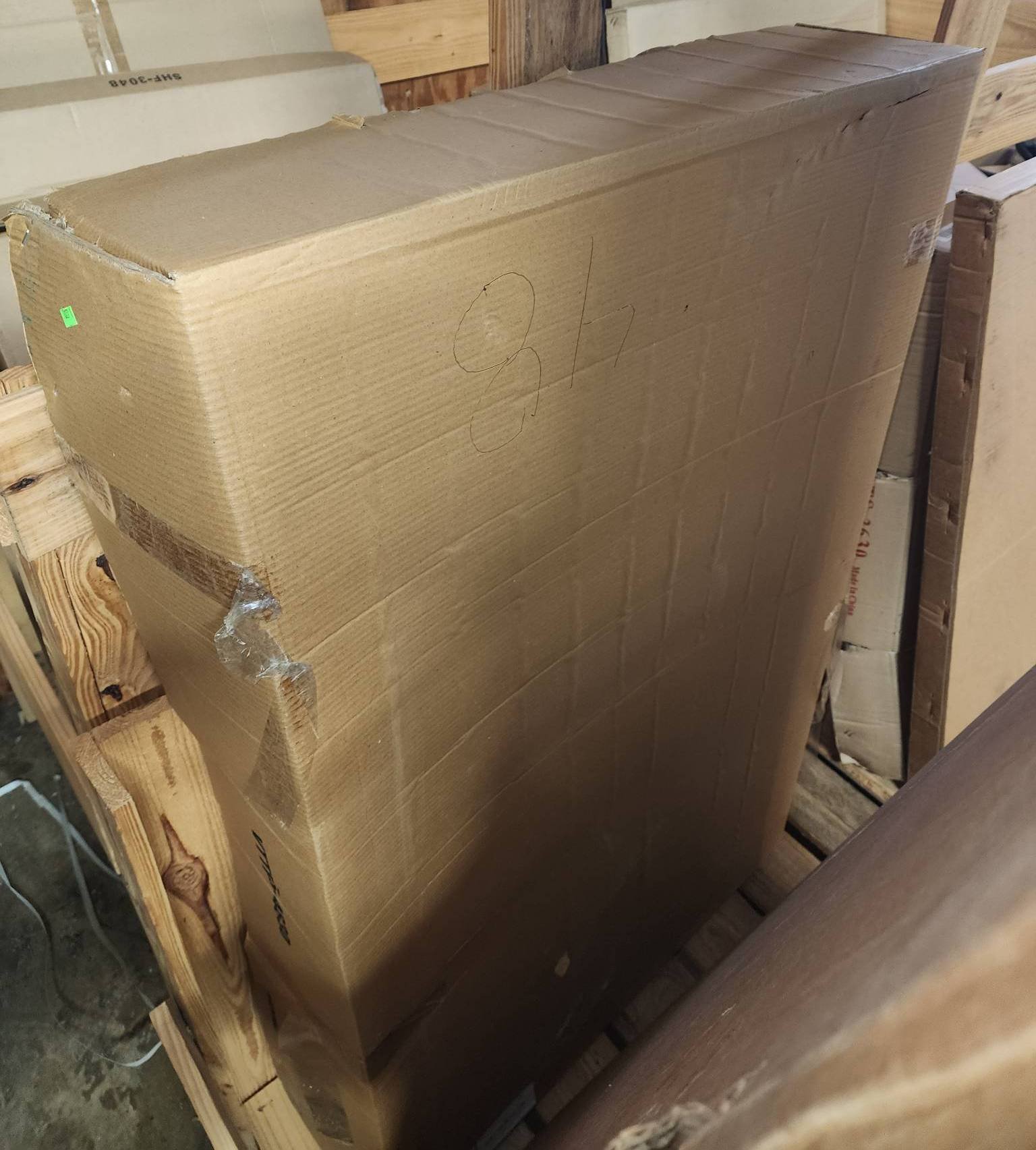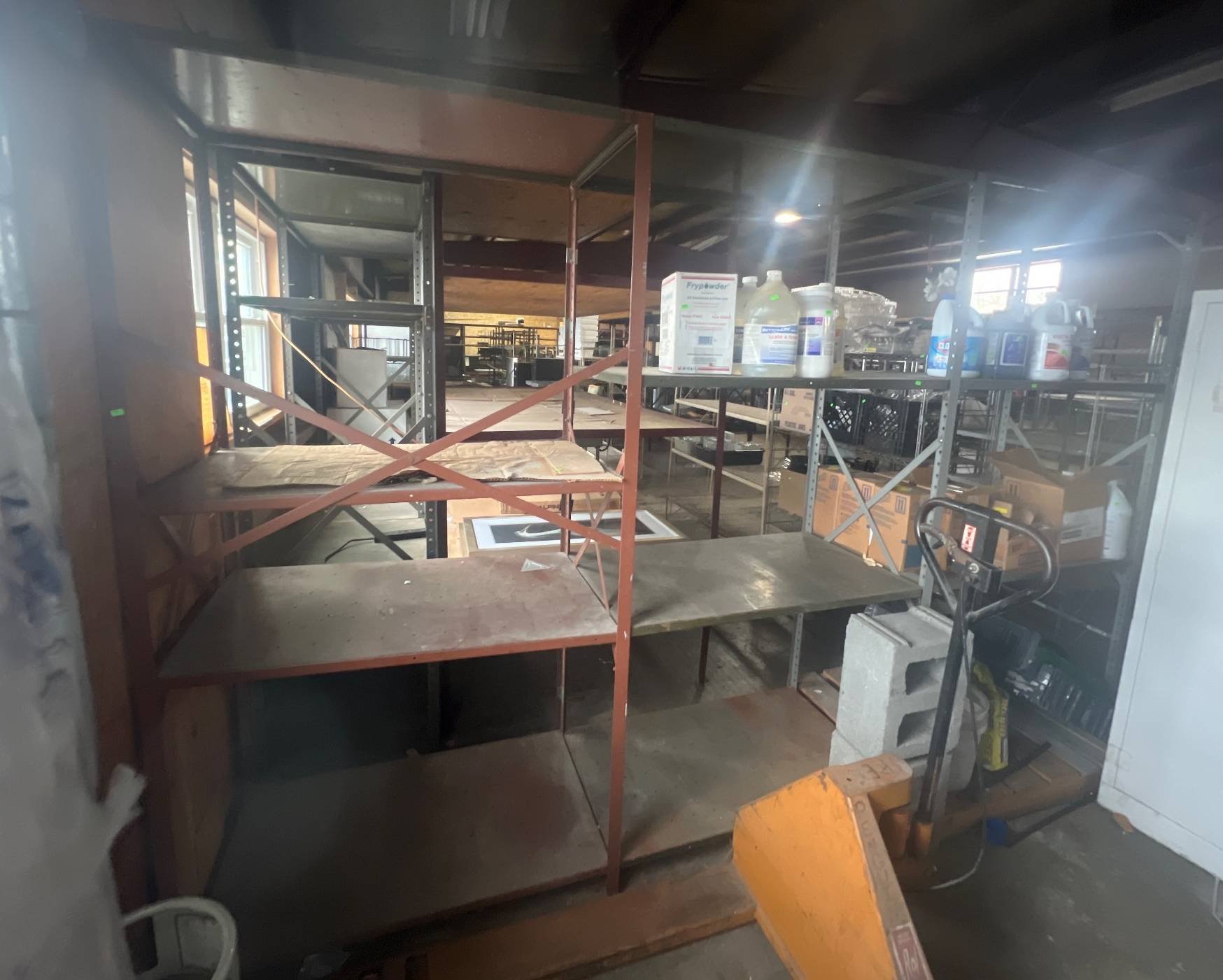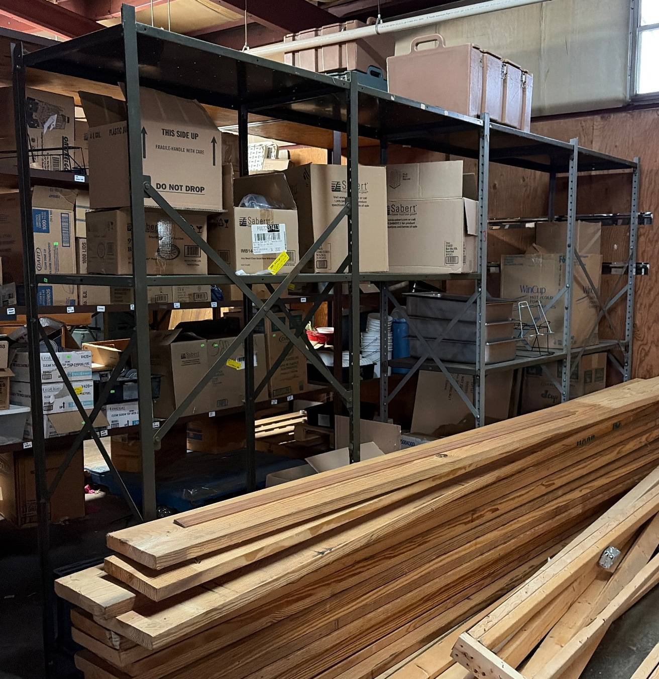 104 Metal Shelving Unit with Panel Board and Wood Skid 55 x 42.5 x 24