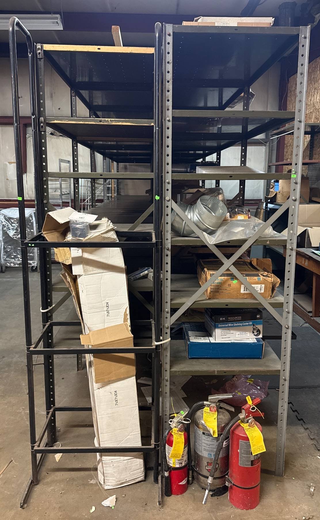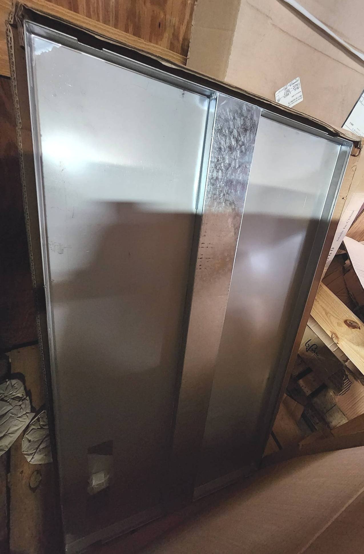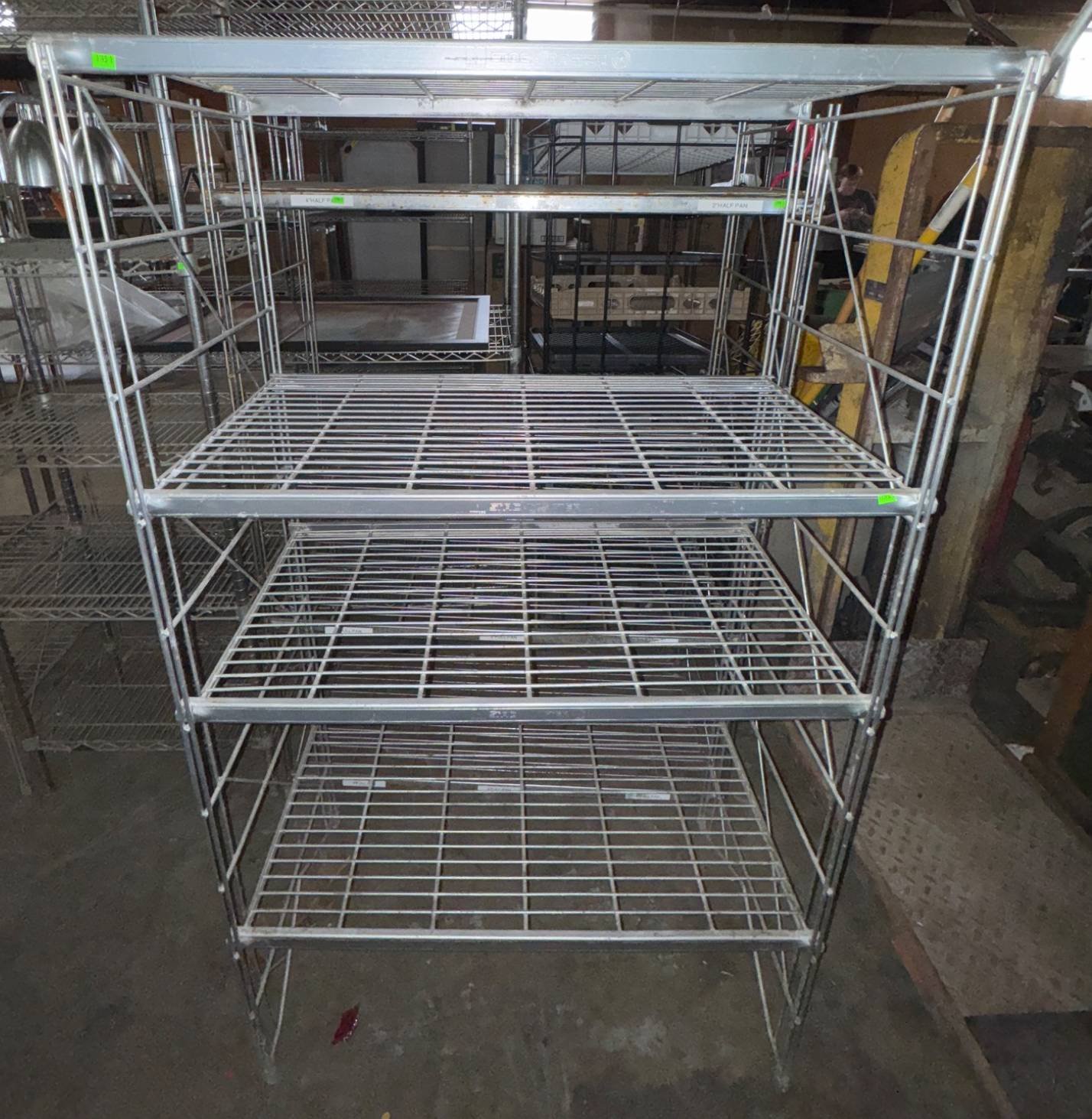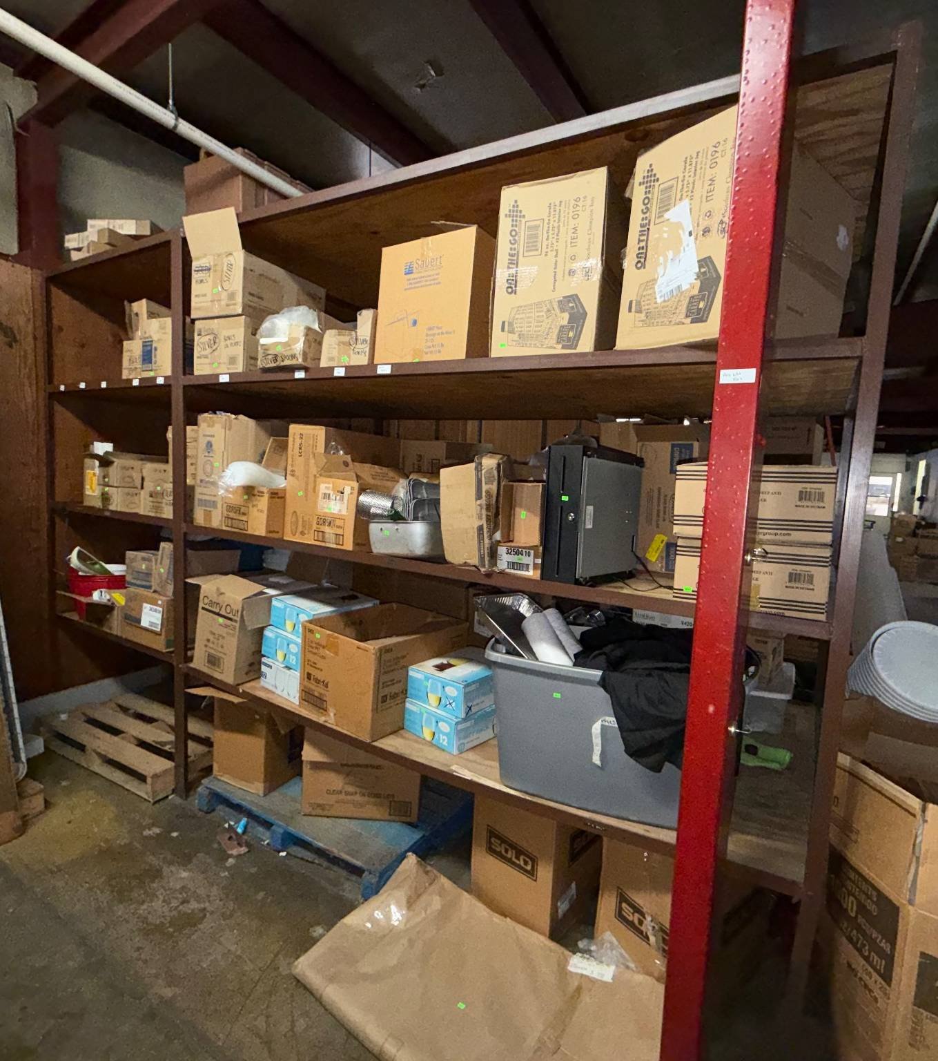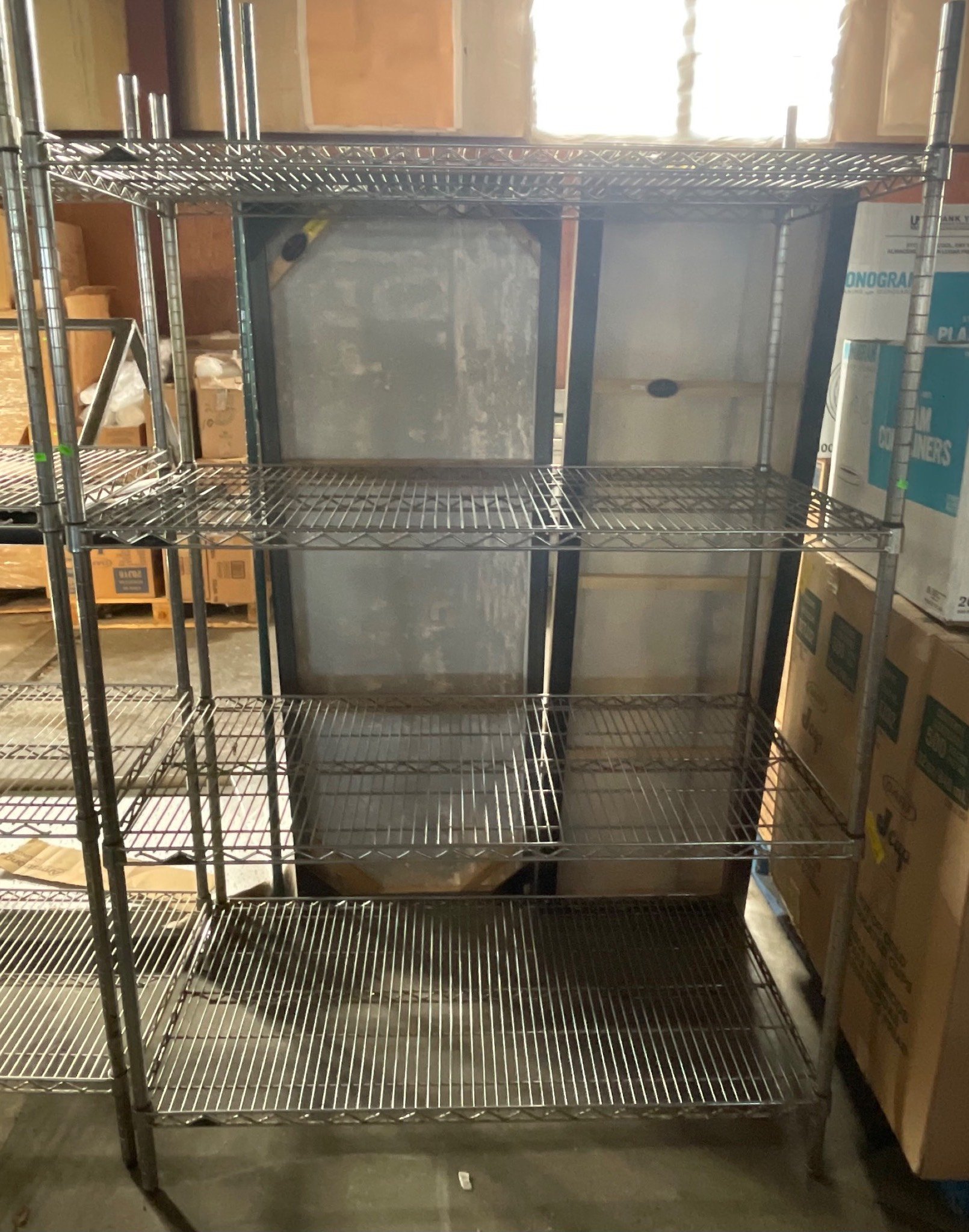 104 Metal Shelving Unit with Panel Board and Wood Skid 55 x 42.5 x 24