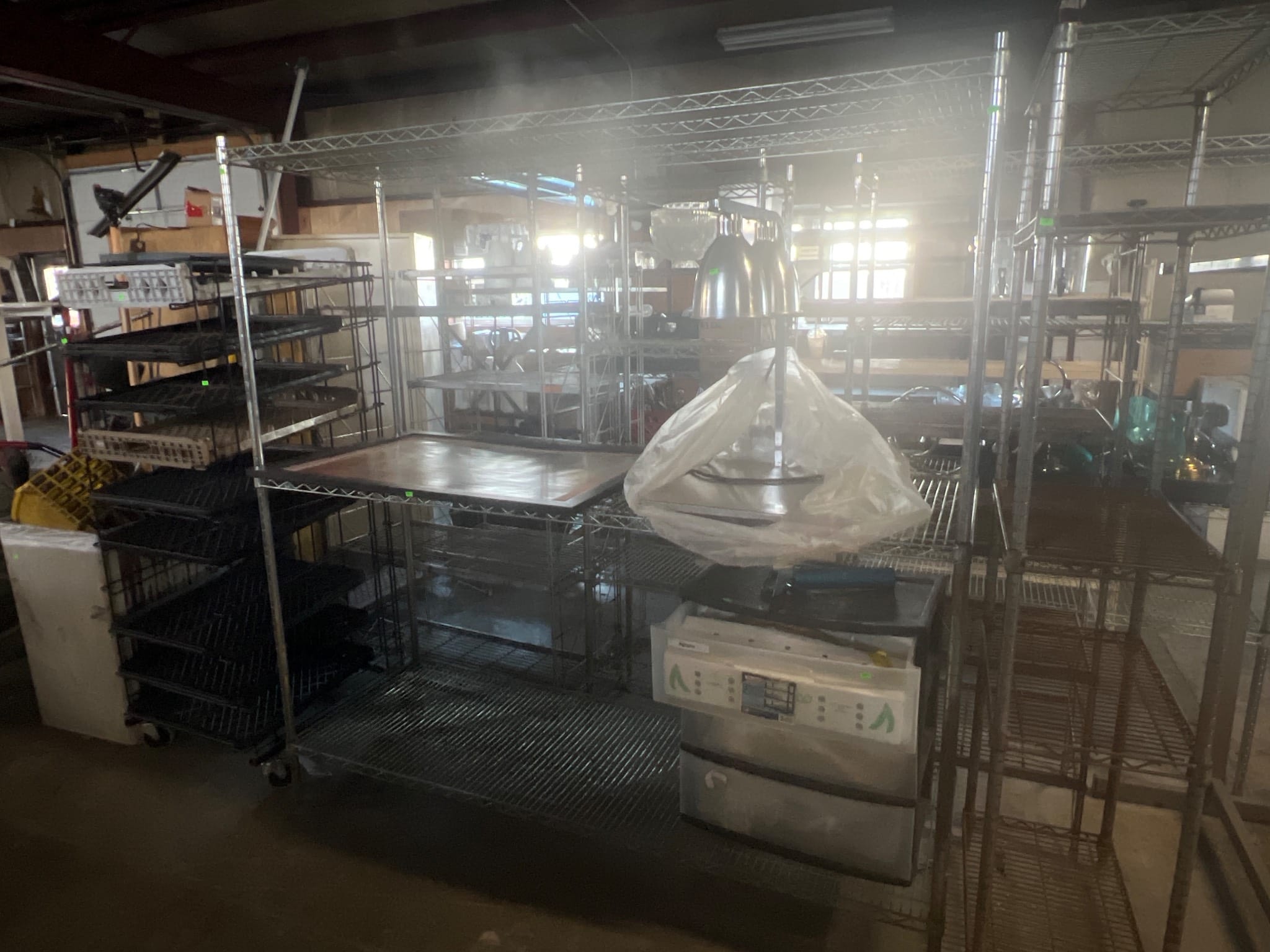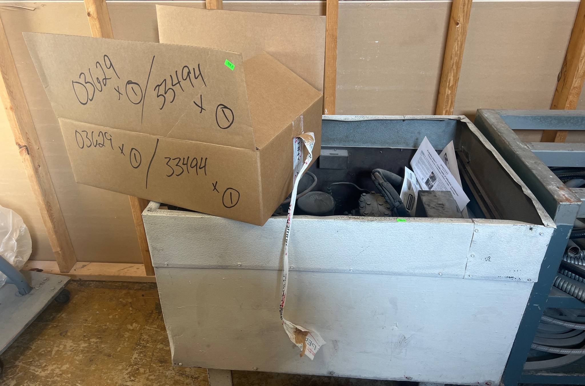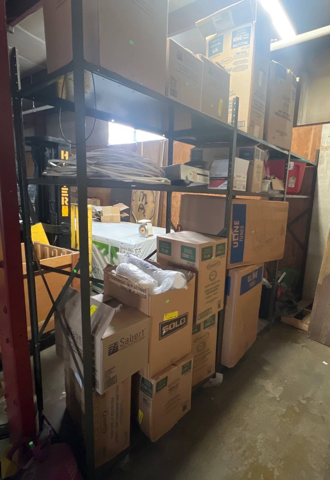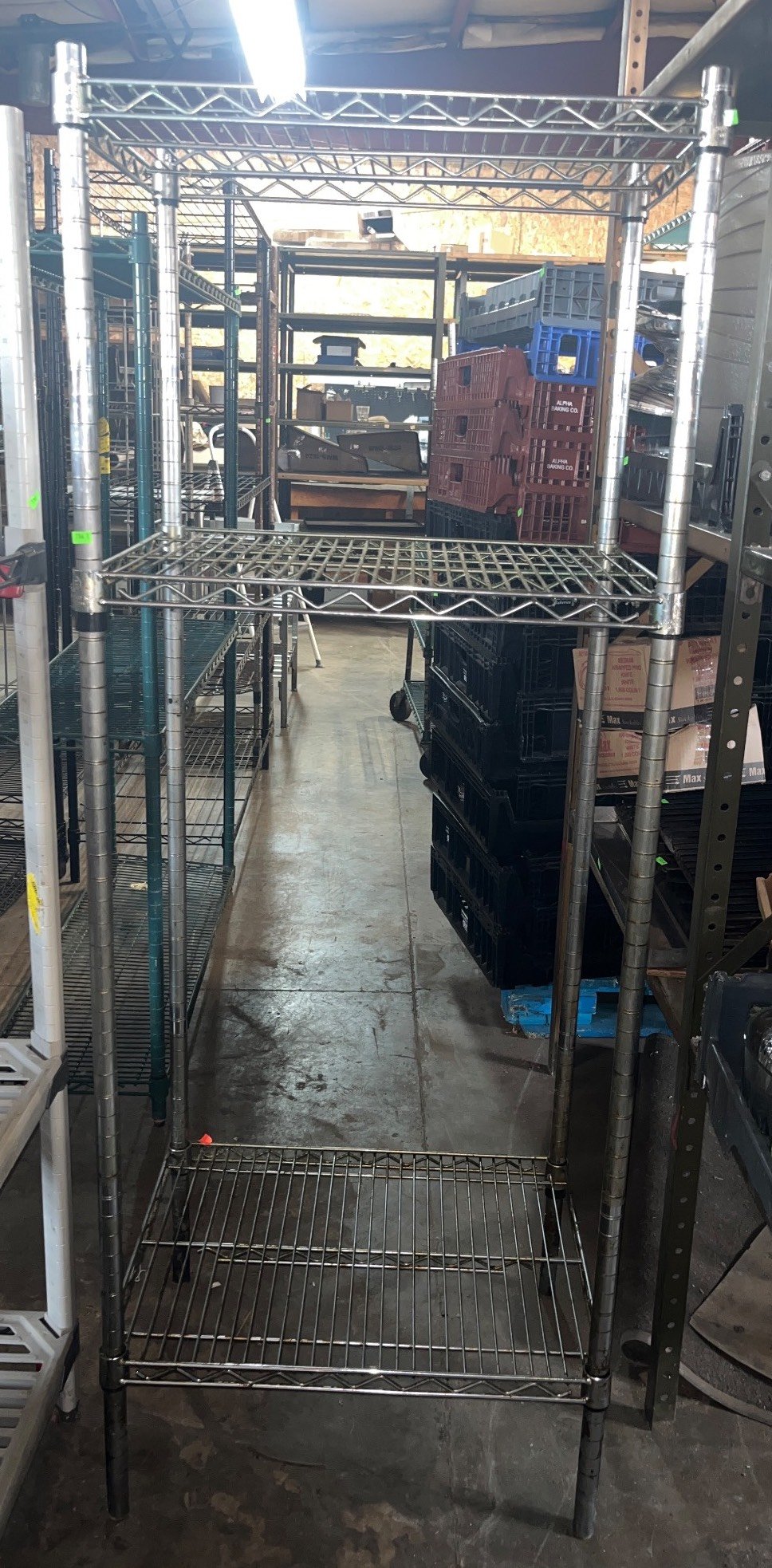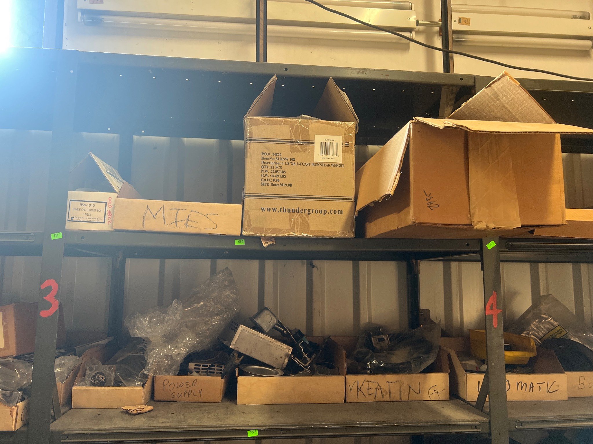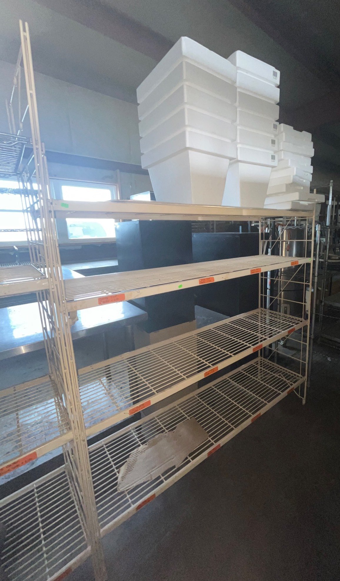 104 Metal Shelving Unit with Panel Board and Wood Skid 55 x 42.5 x 24