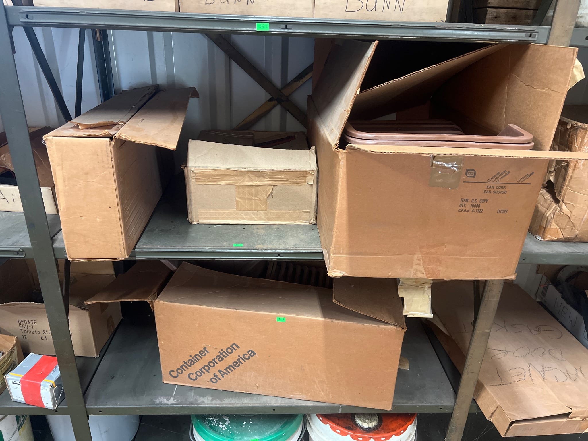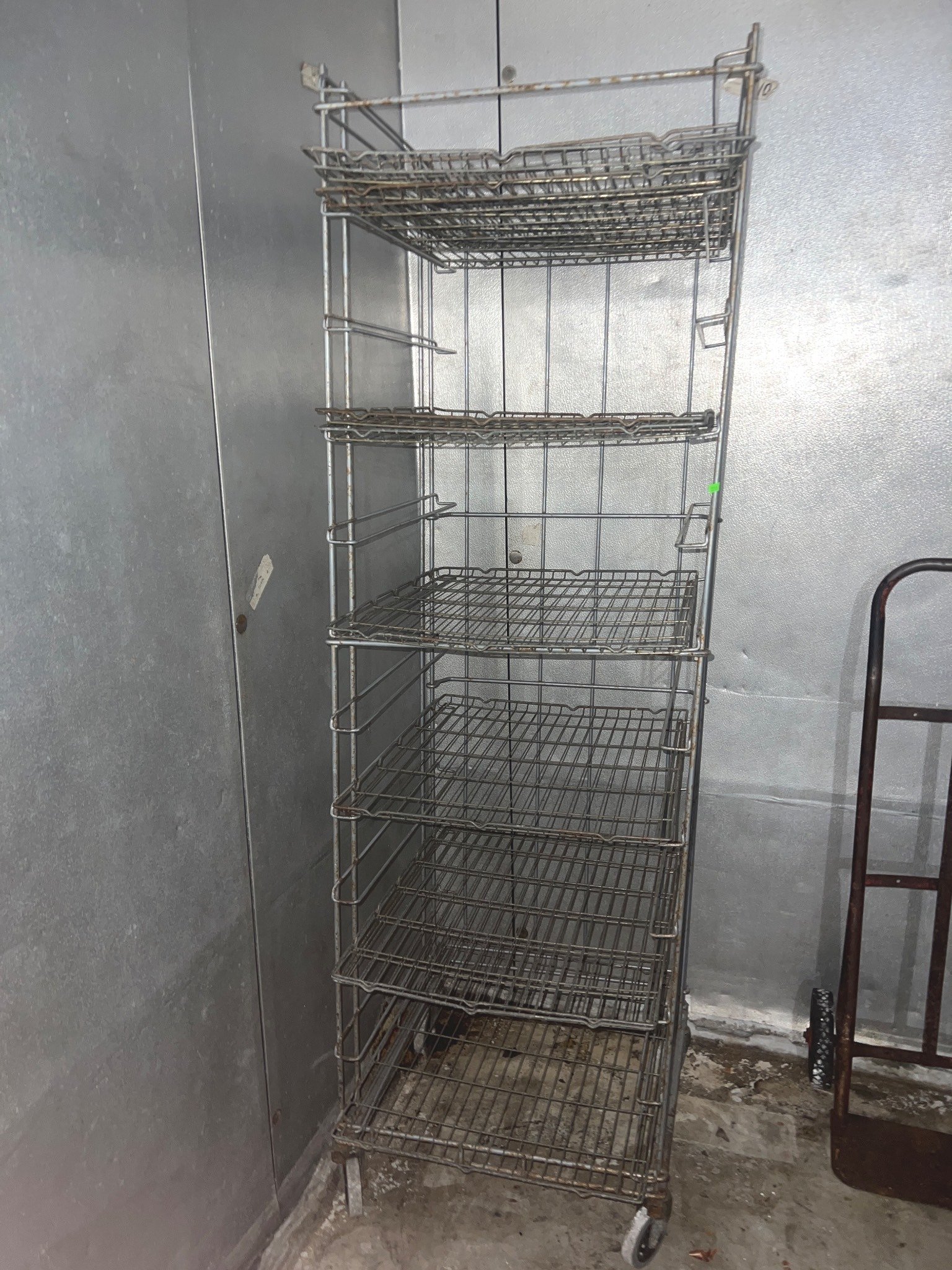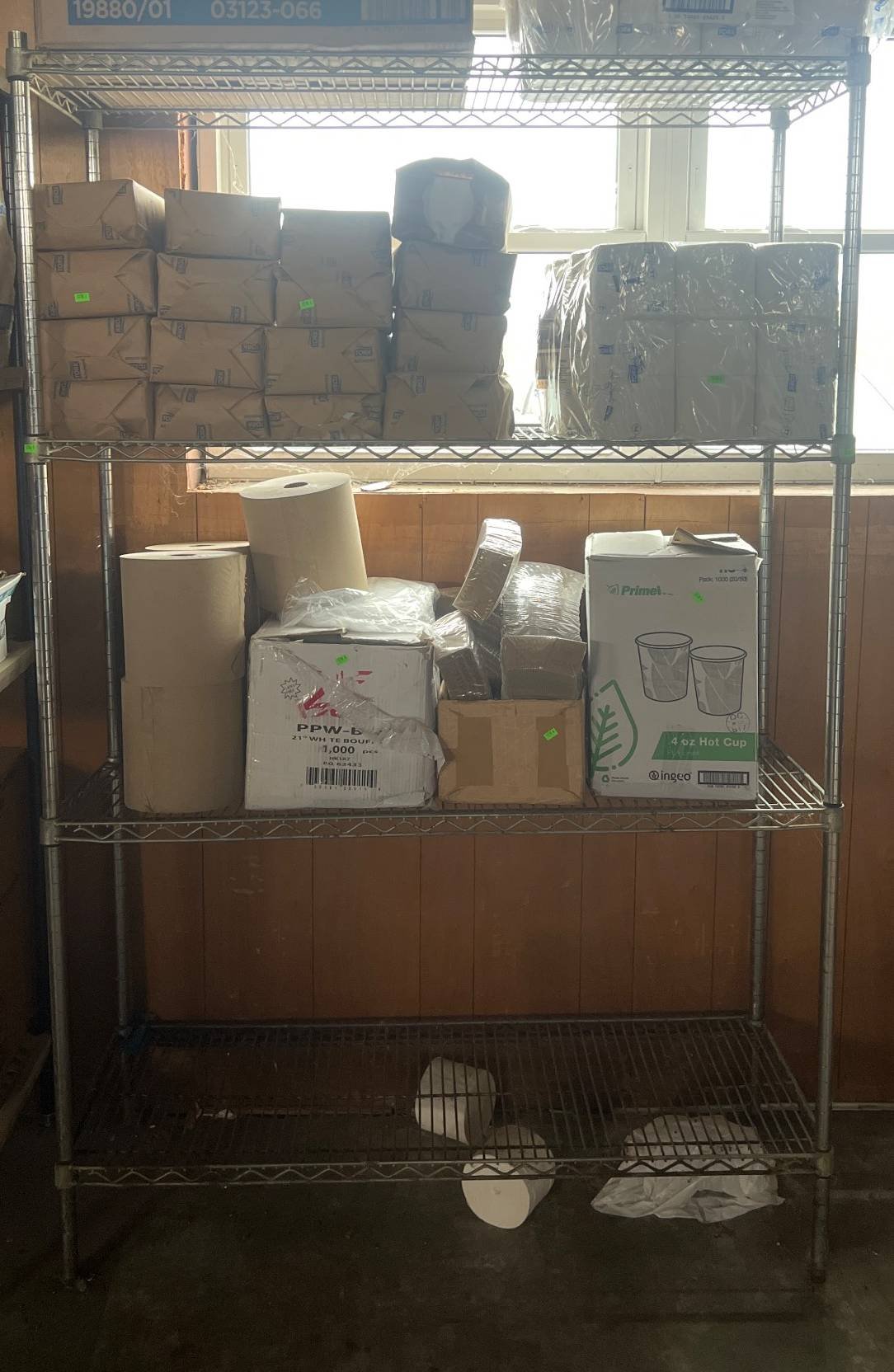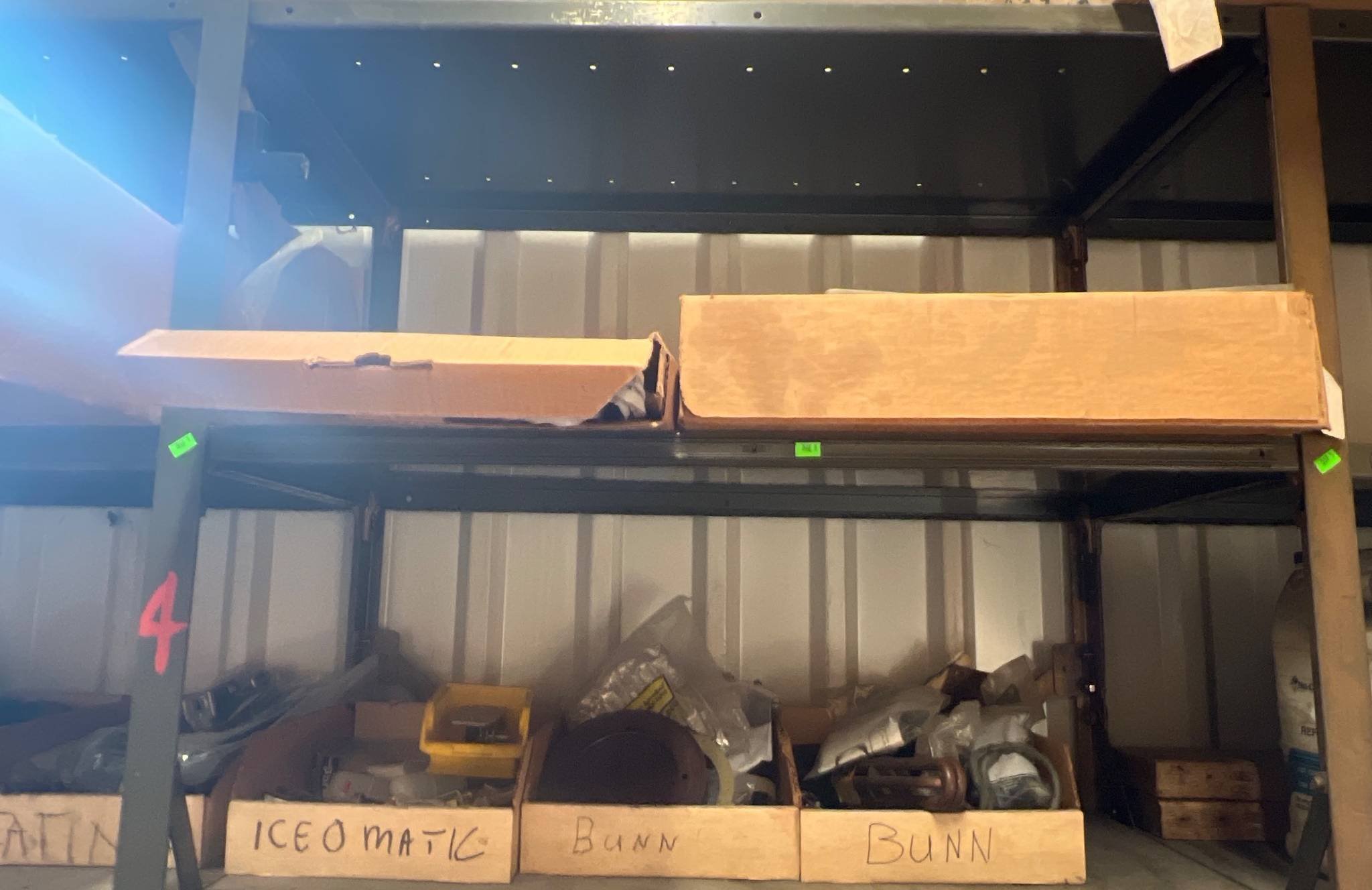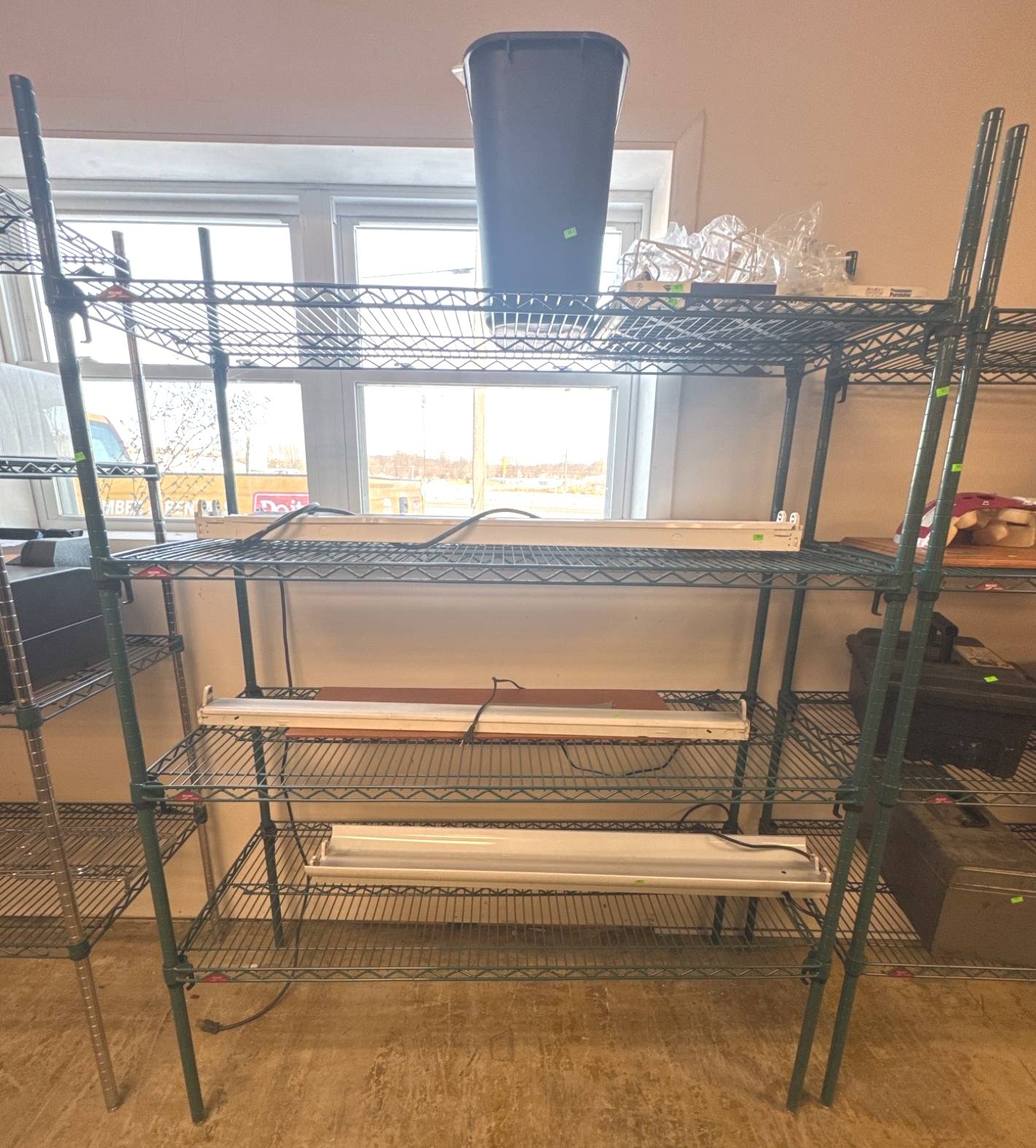104 Metal Shelving Unit with Panel Board and Wood Skid 55 x 42.5 x 24