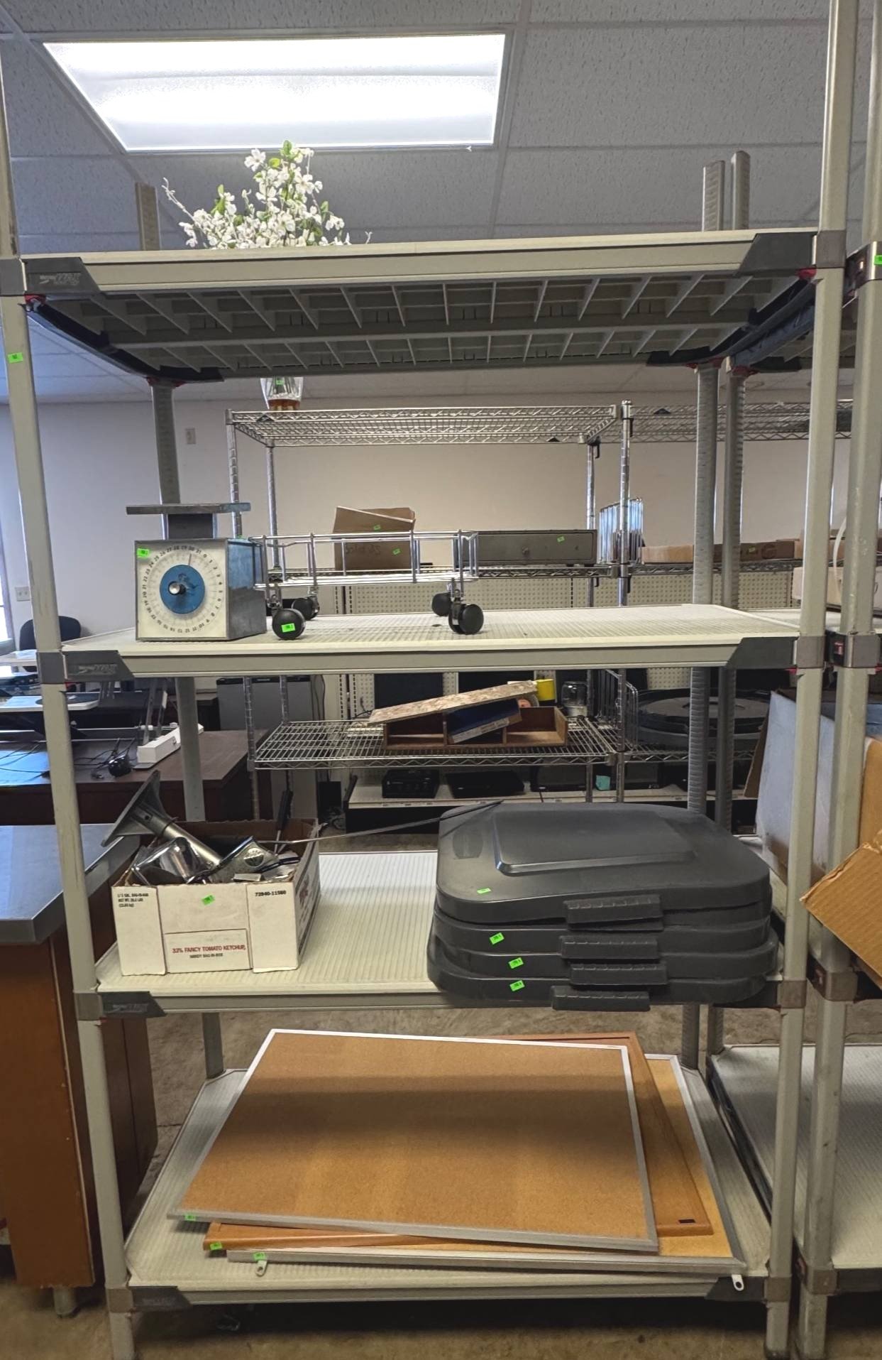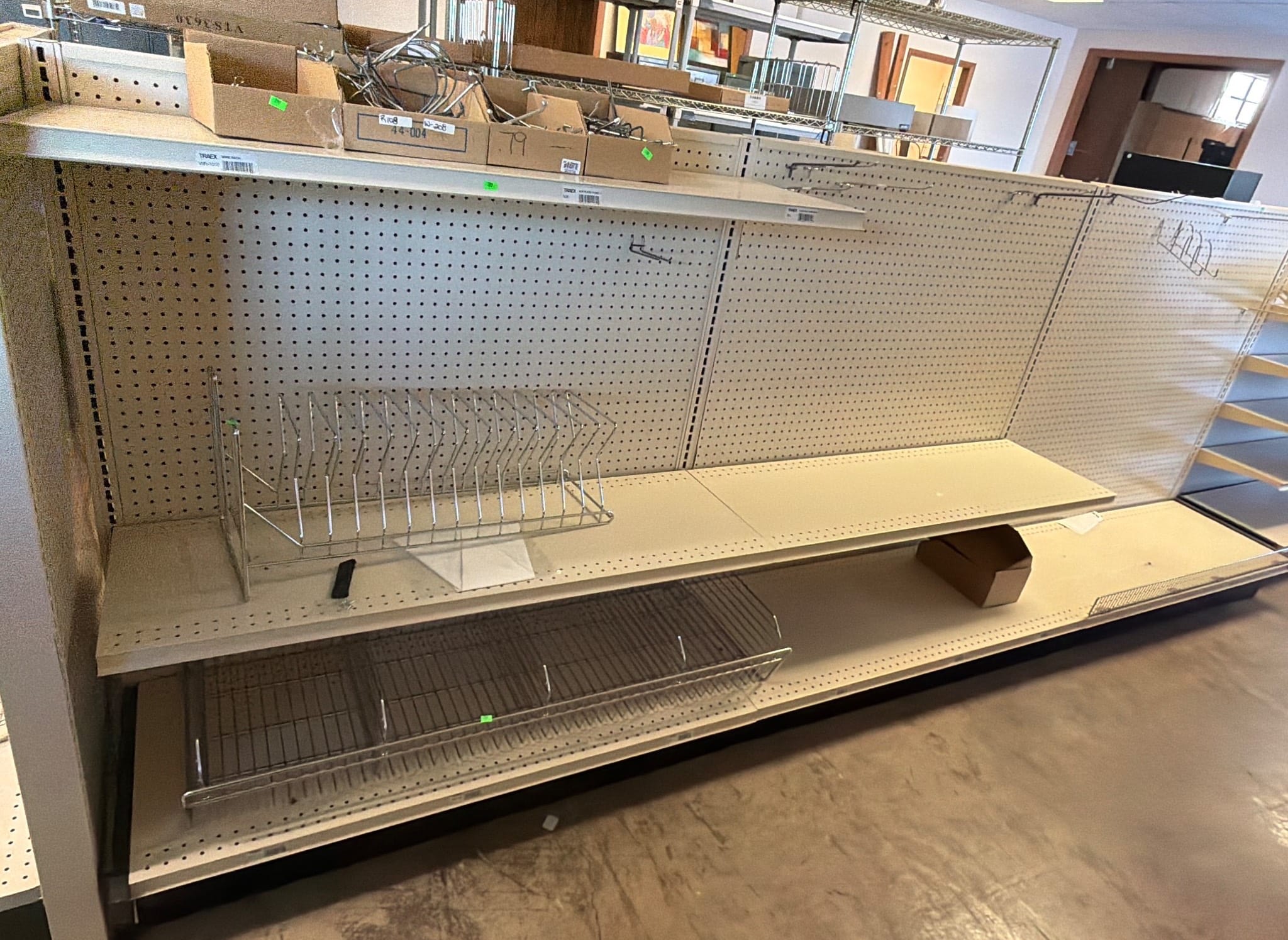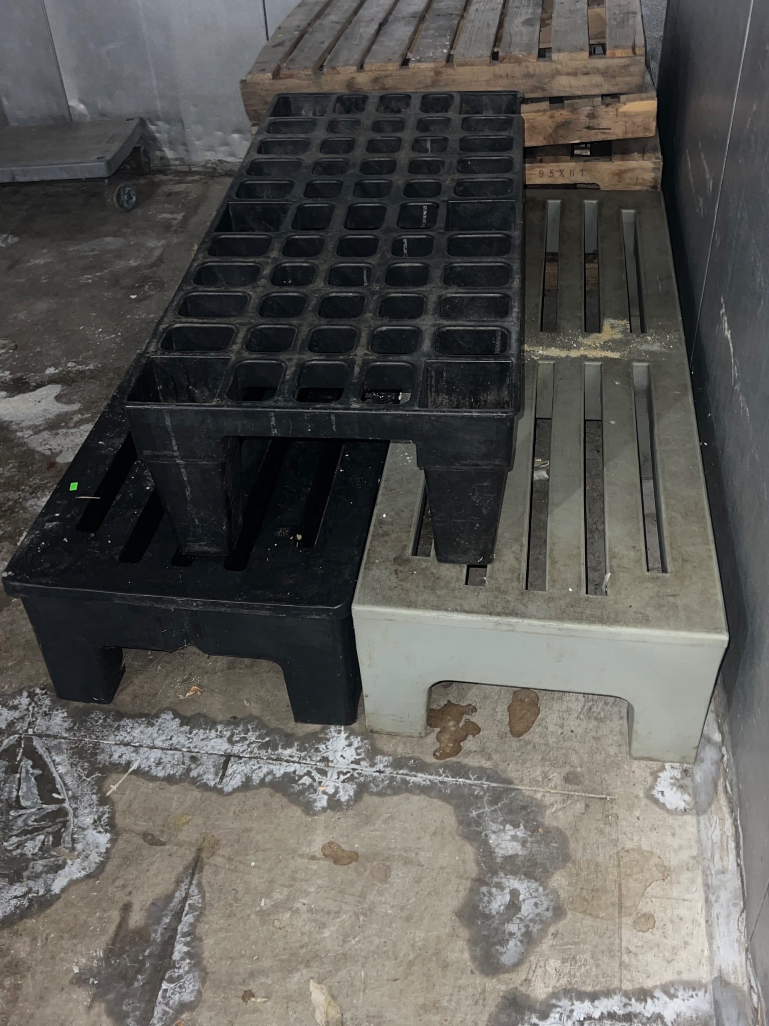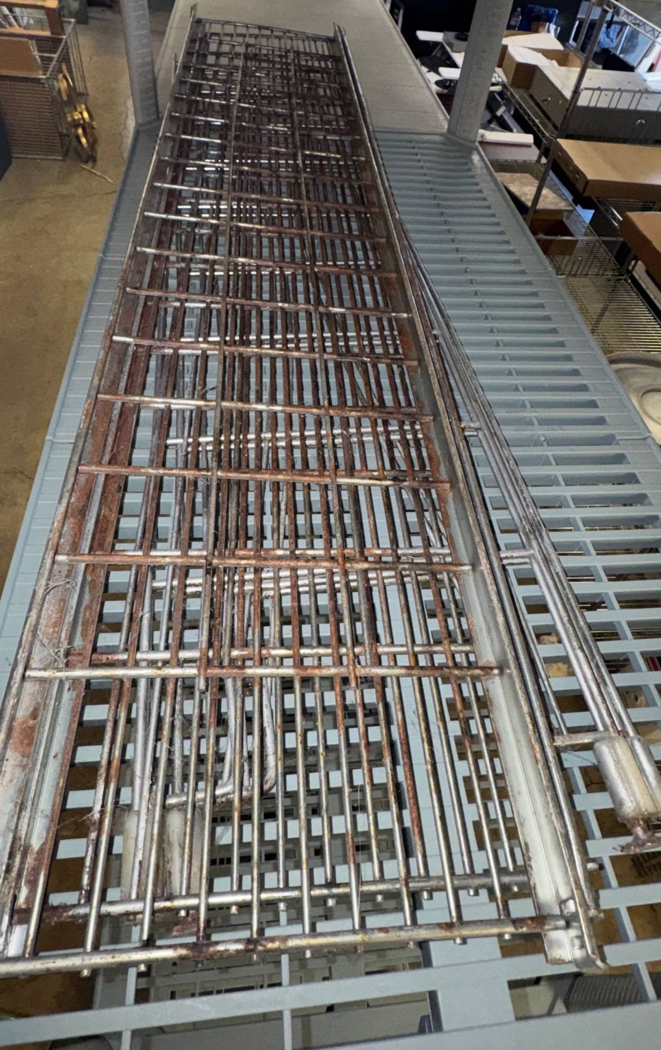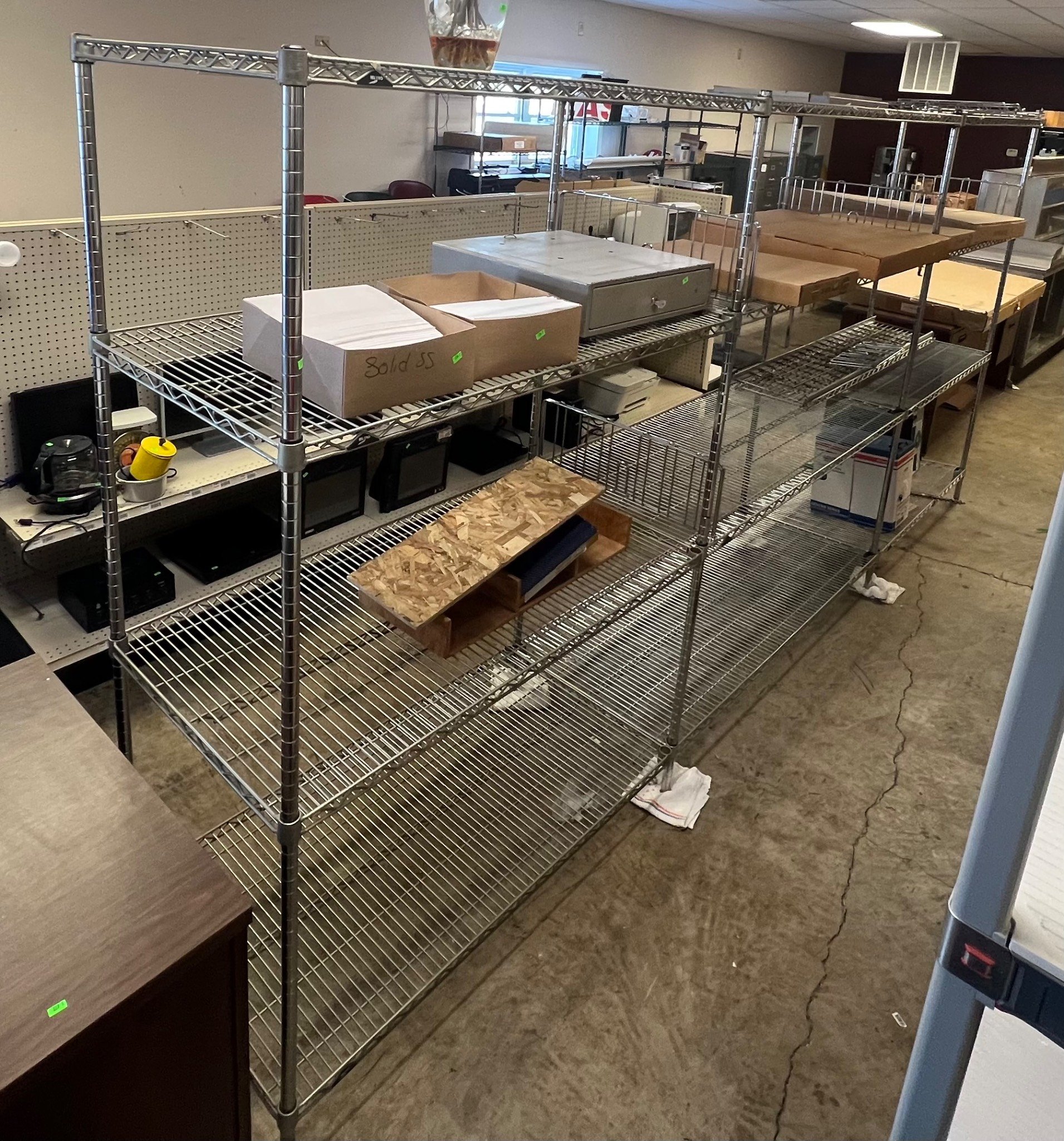 104 Metal Shelving Unit with Panel Board and Wood Skid 55 x 42.5 x 24