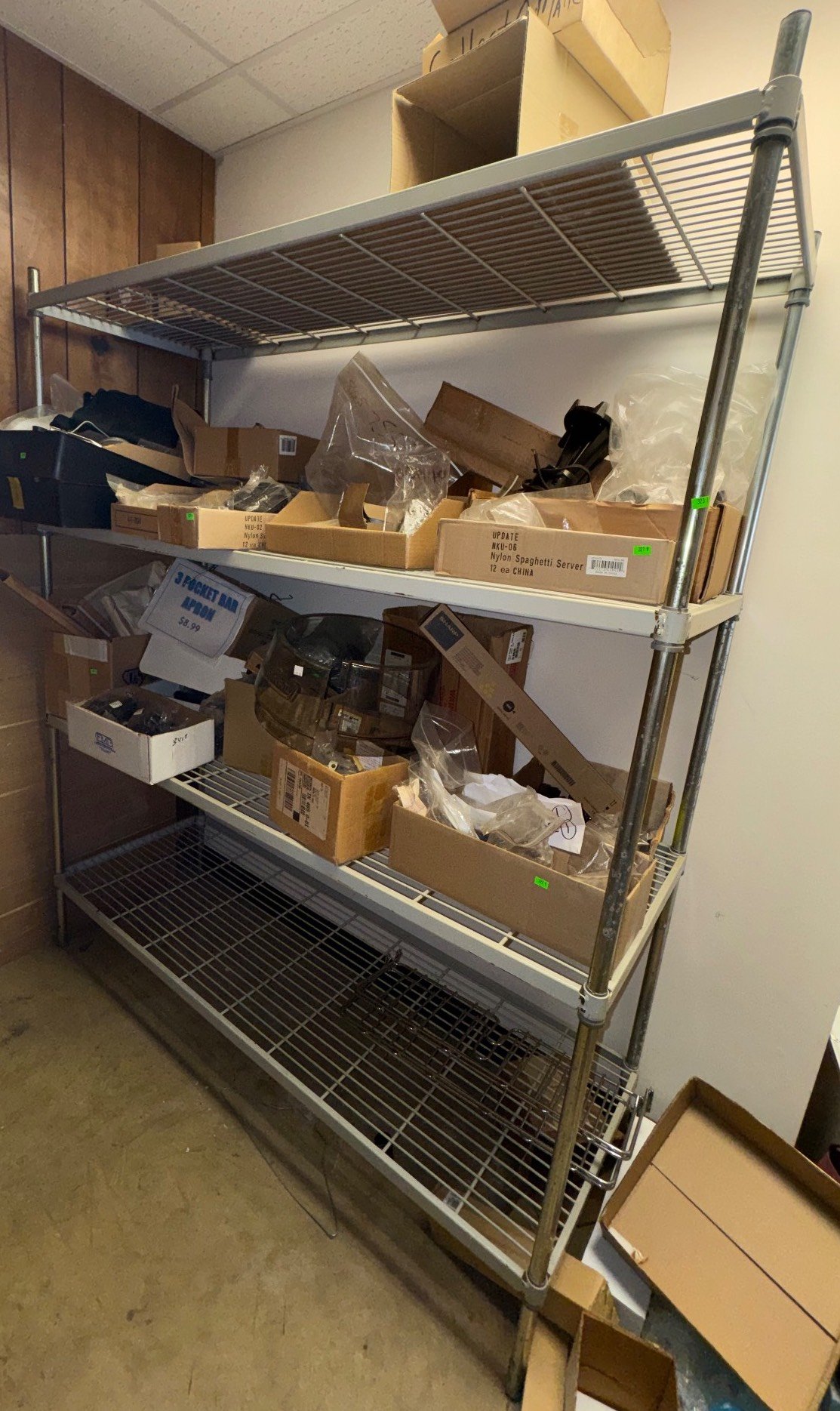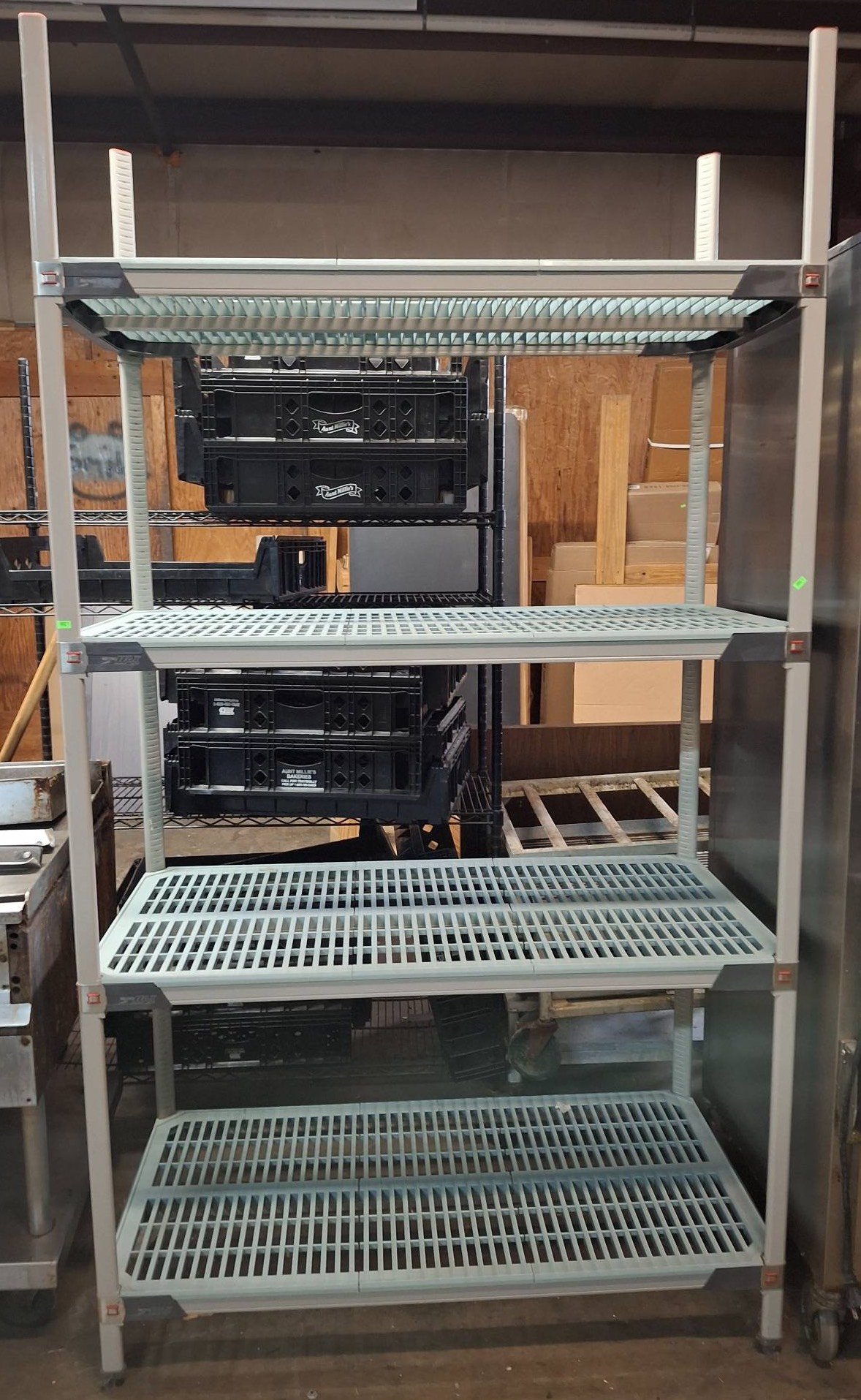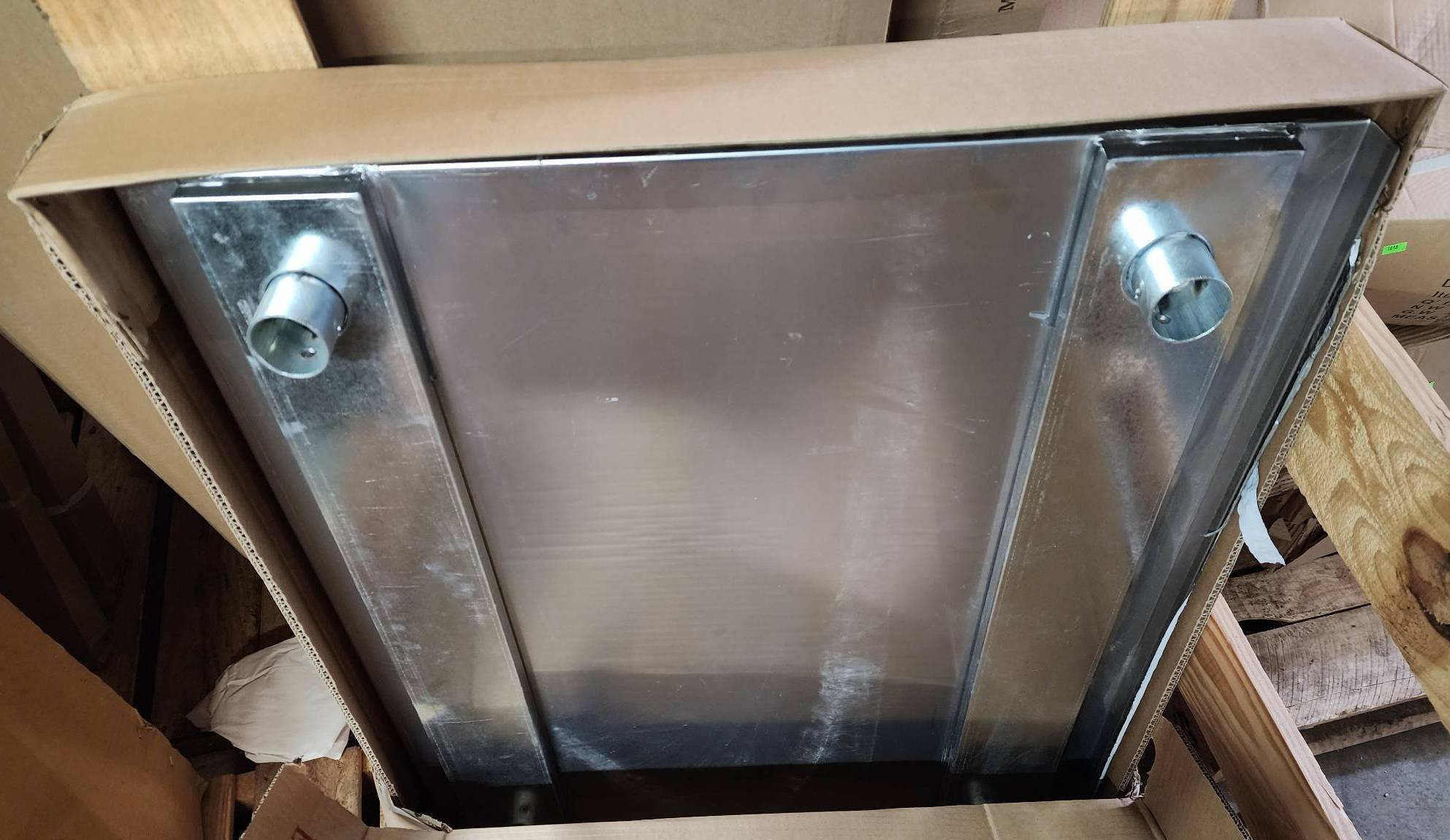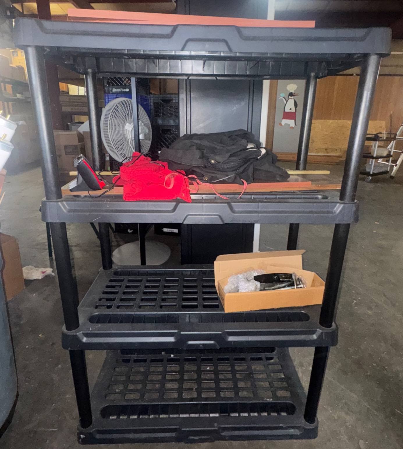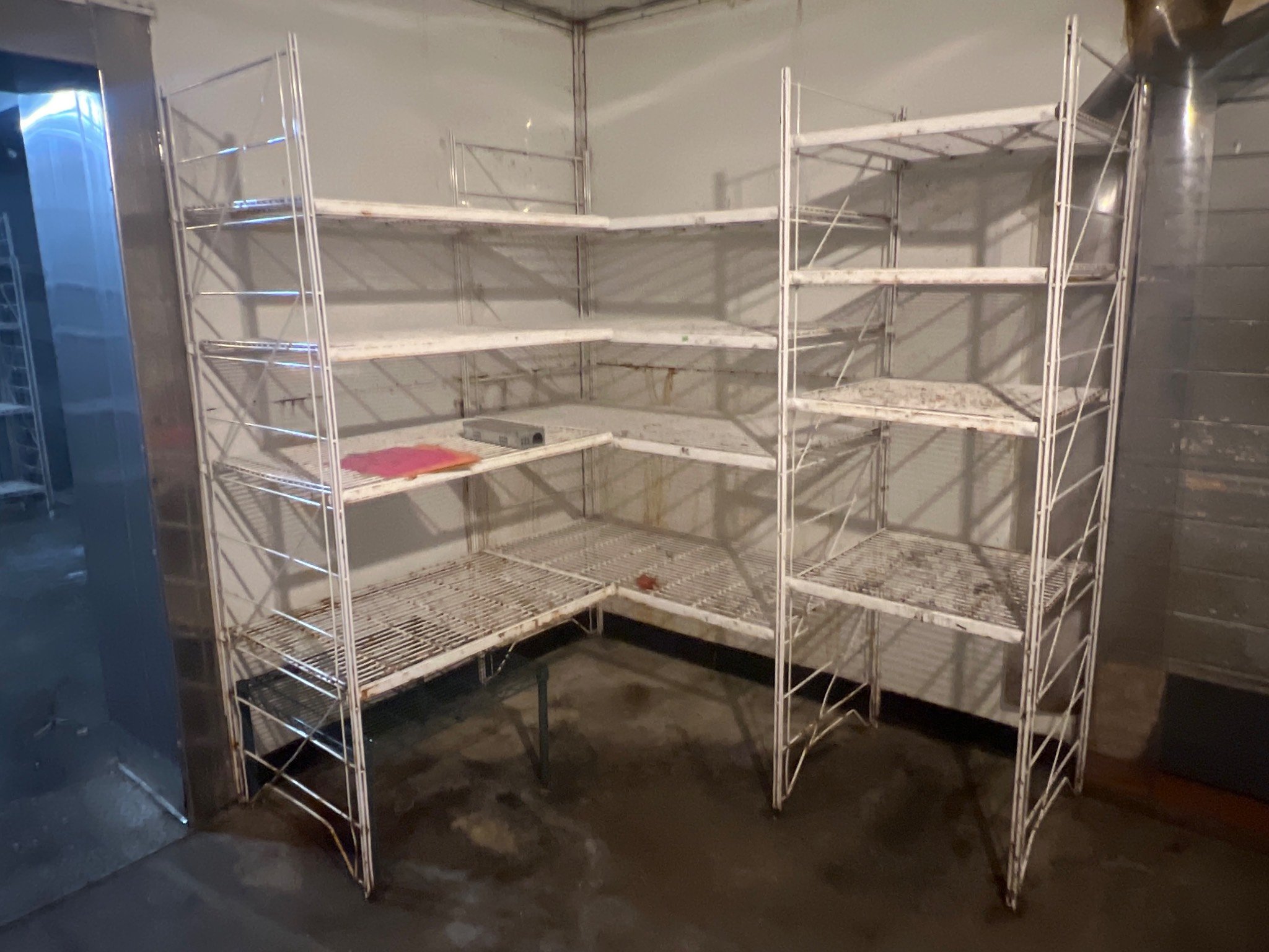 104 Metal Shelving Unit with Panel Board and Wood Skid 55 x 42.5 x 24