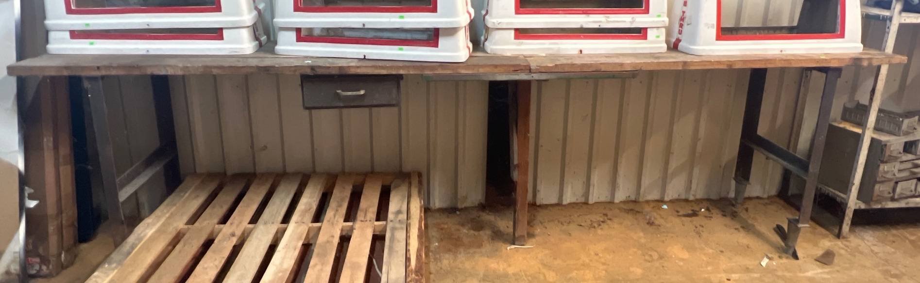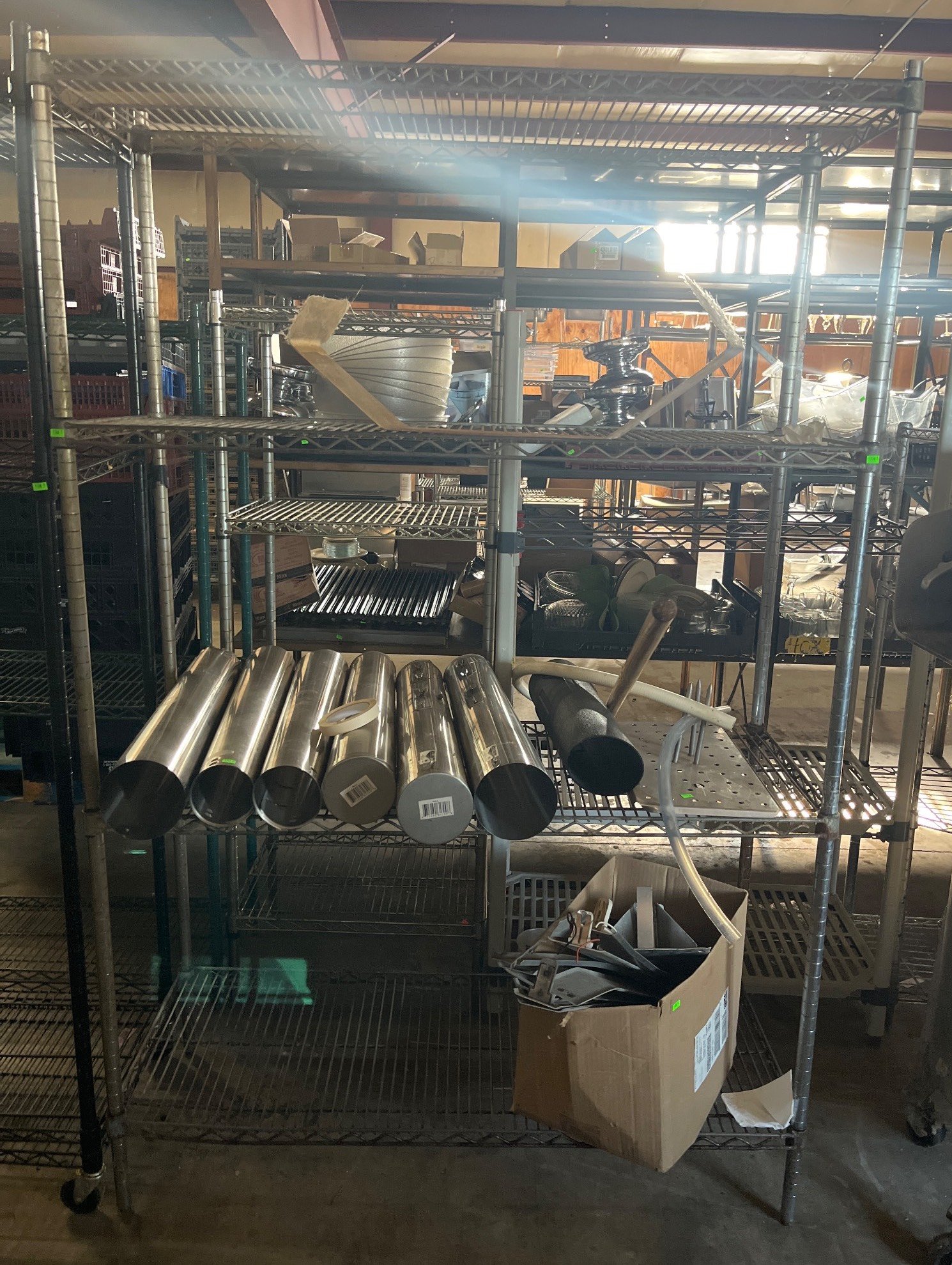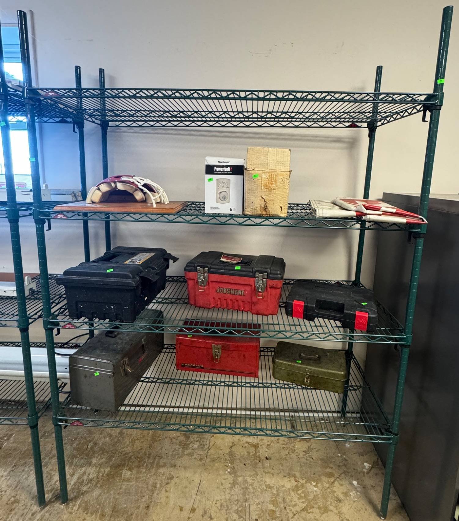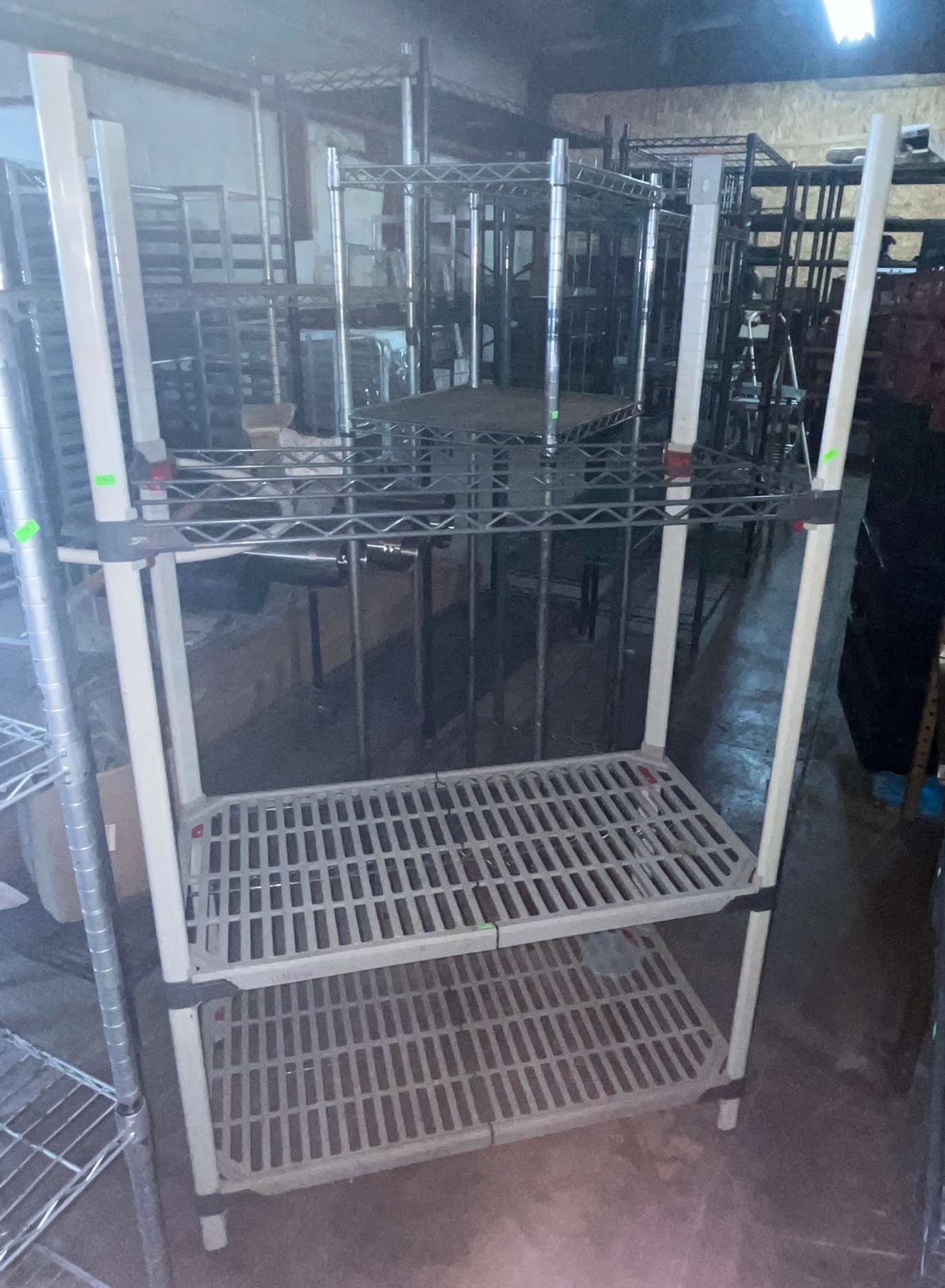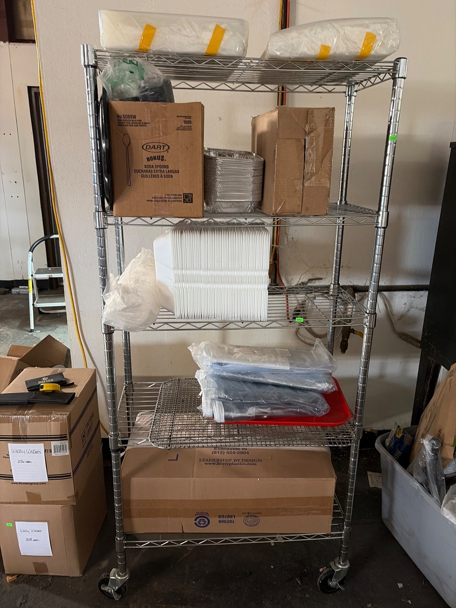 104 Metal Shelving Unit with Panel Board and Wood Skid 55 x 42.5 x 24