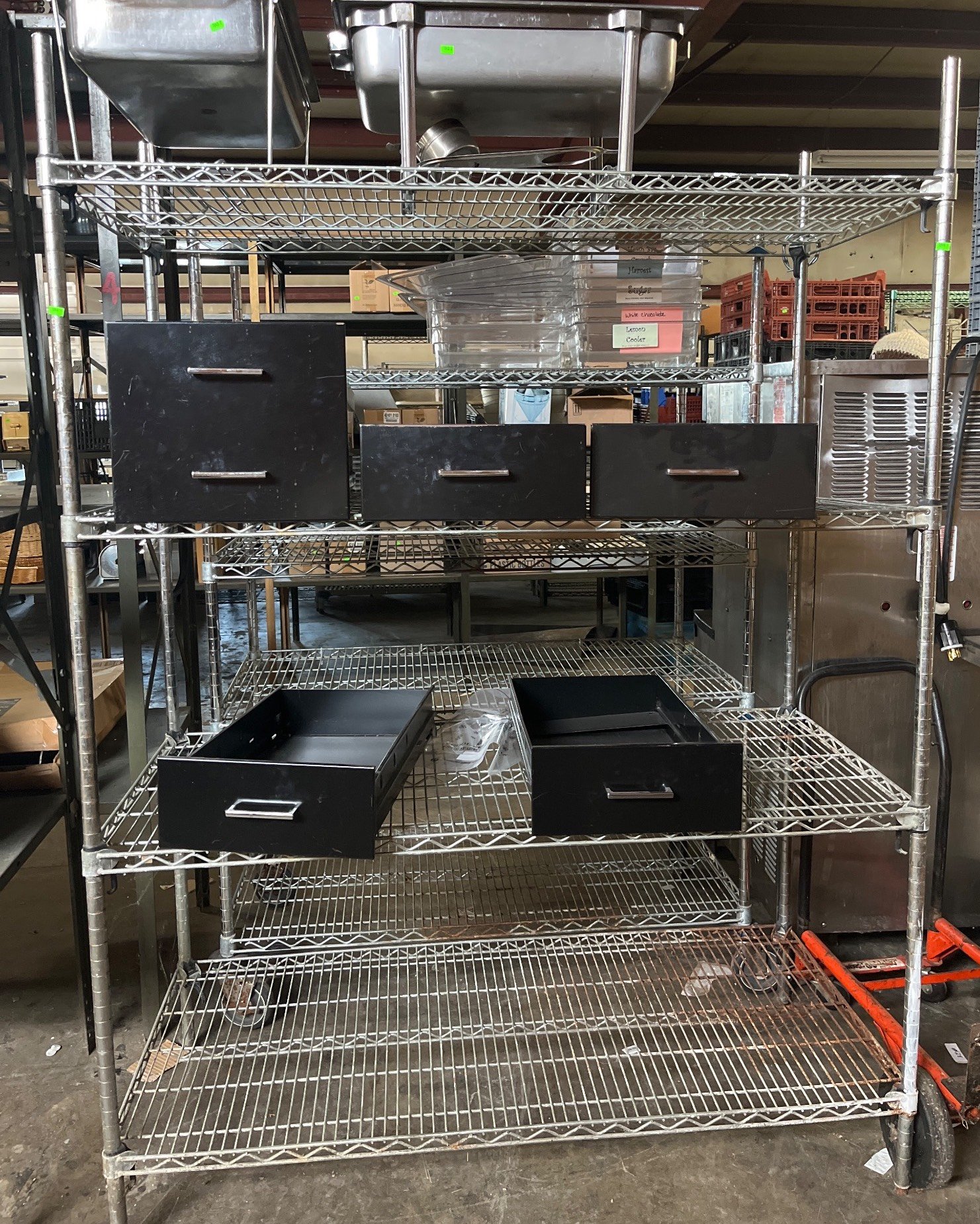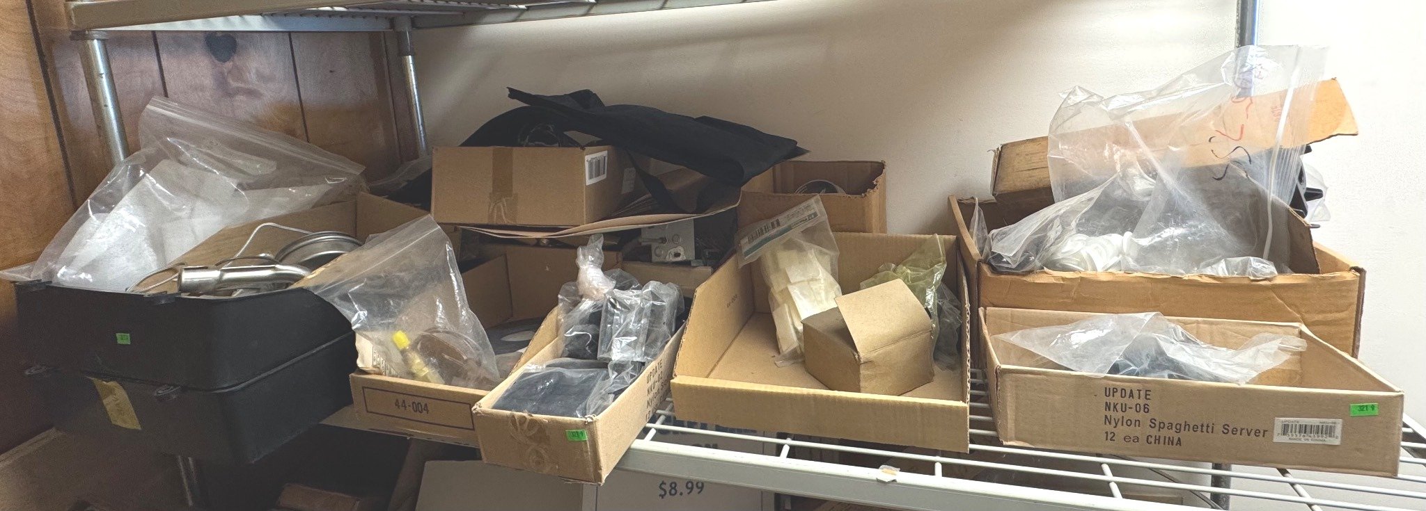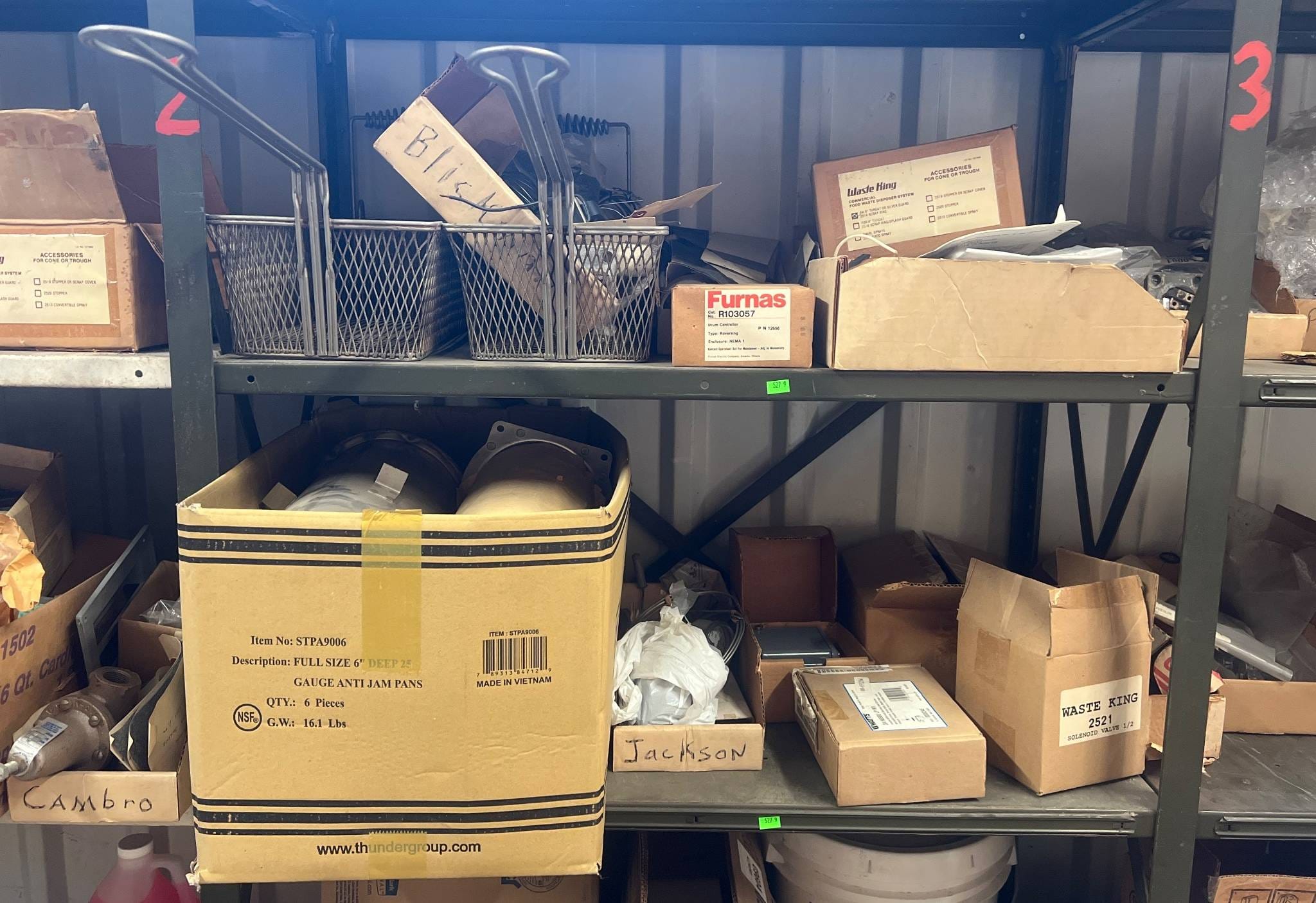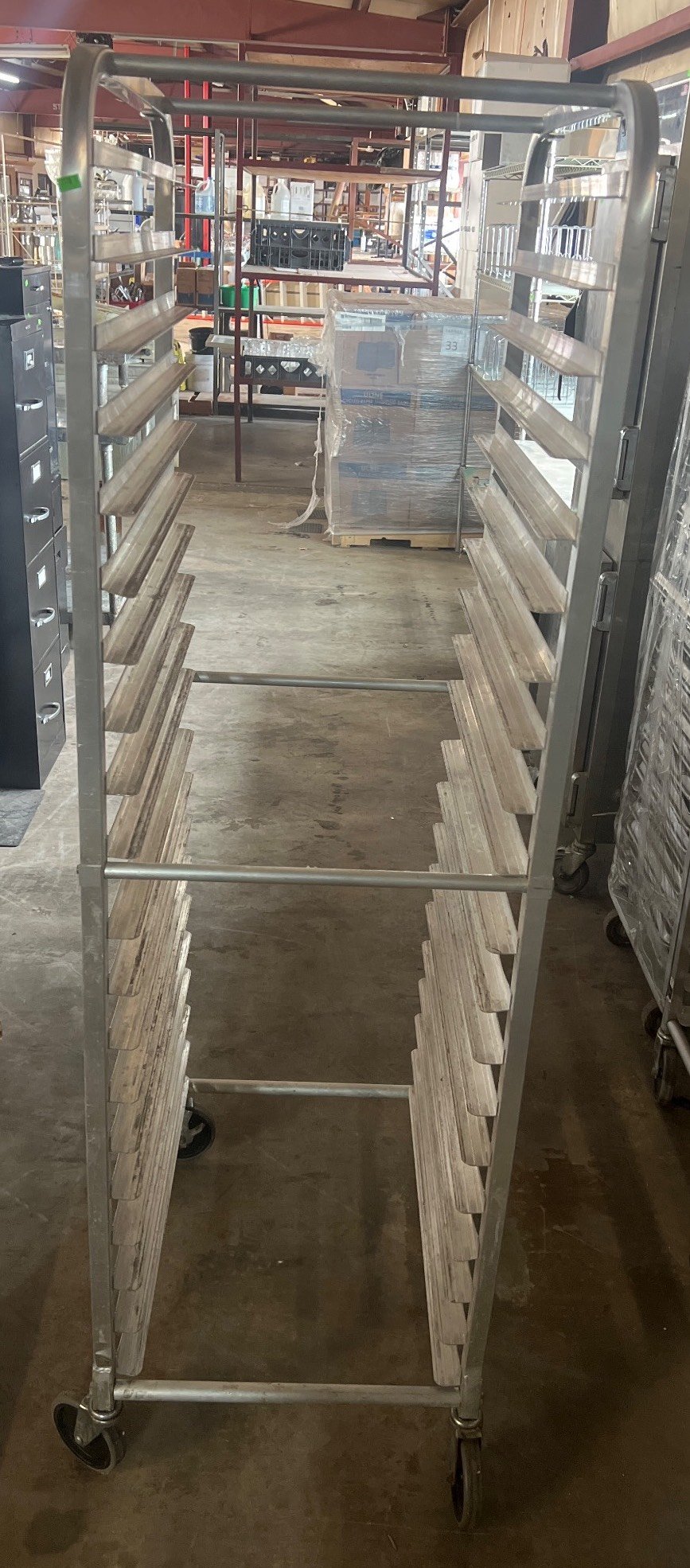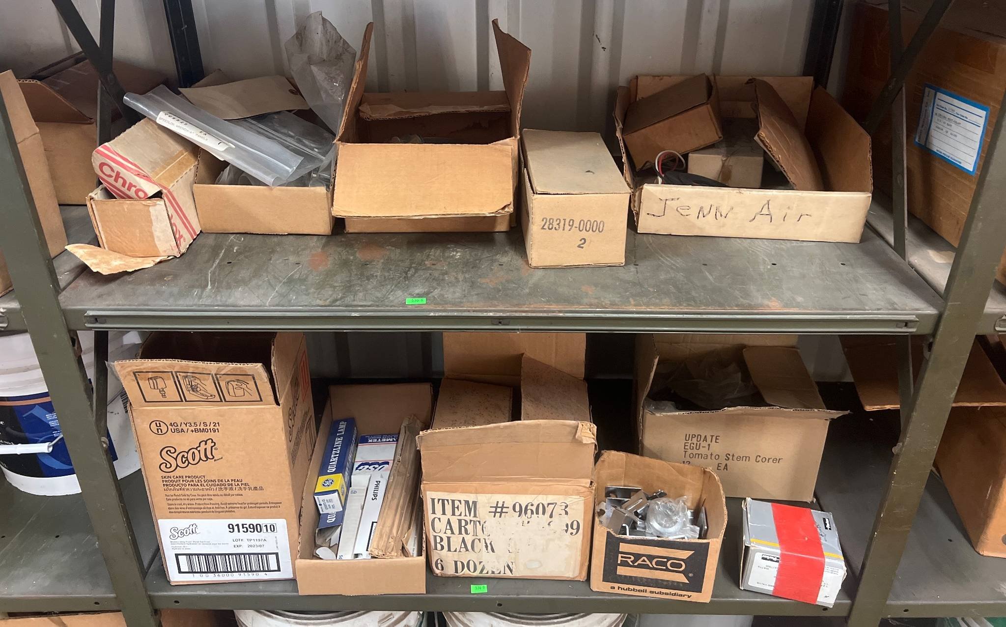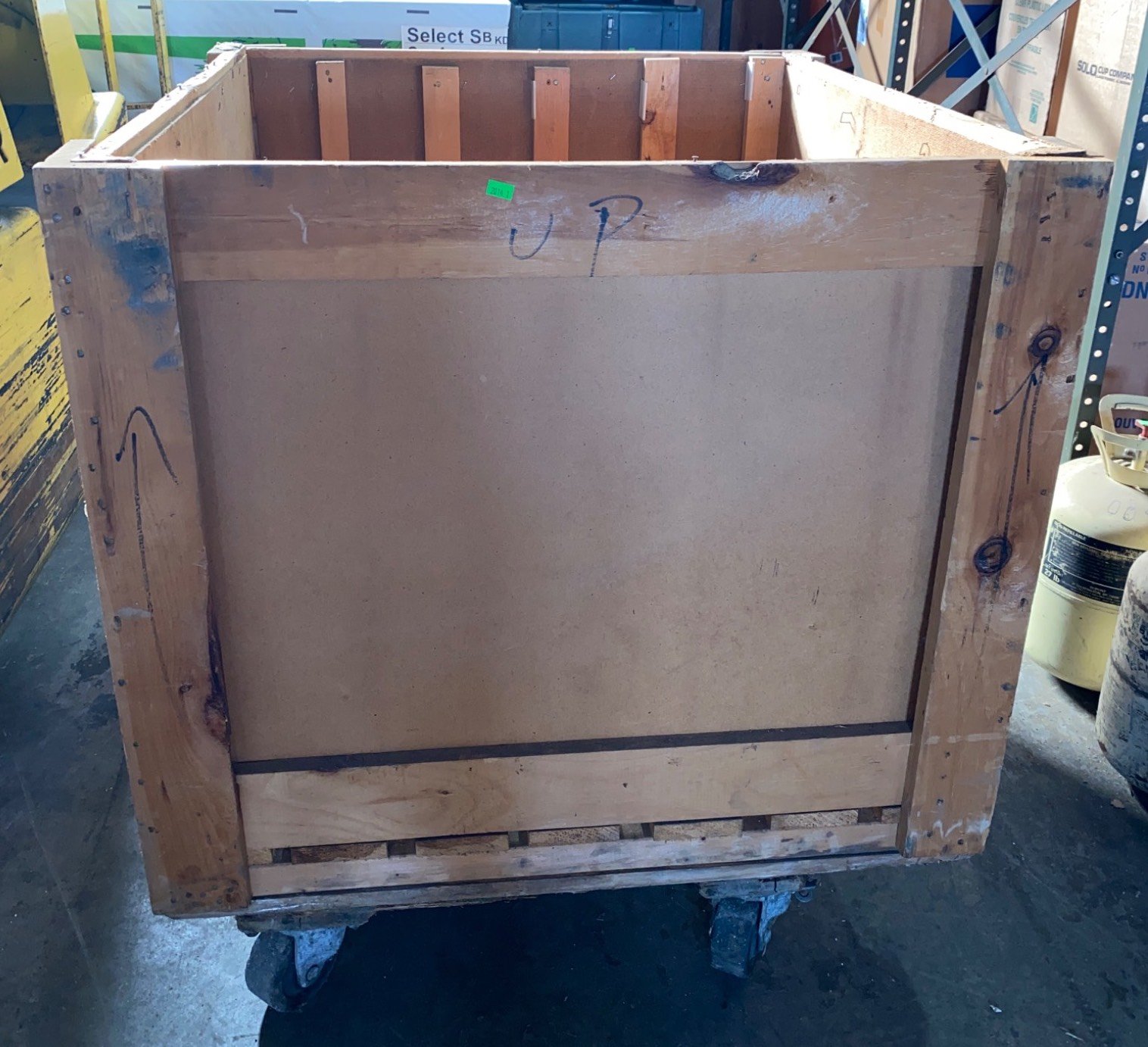 104 Metal Shelving Unit with Panel Board and Wood Skid 55 x 42.5 x 24