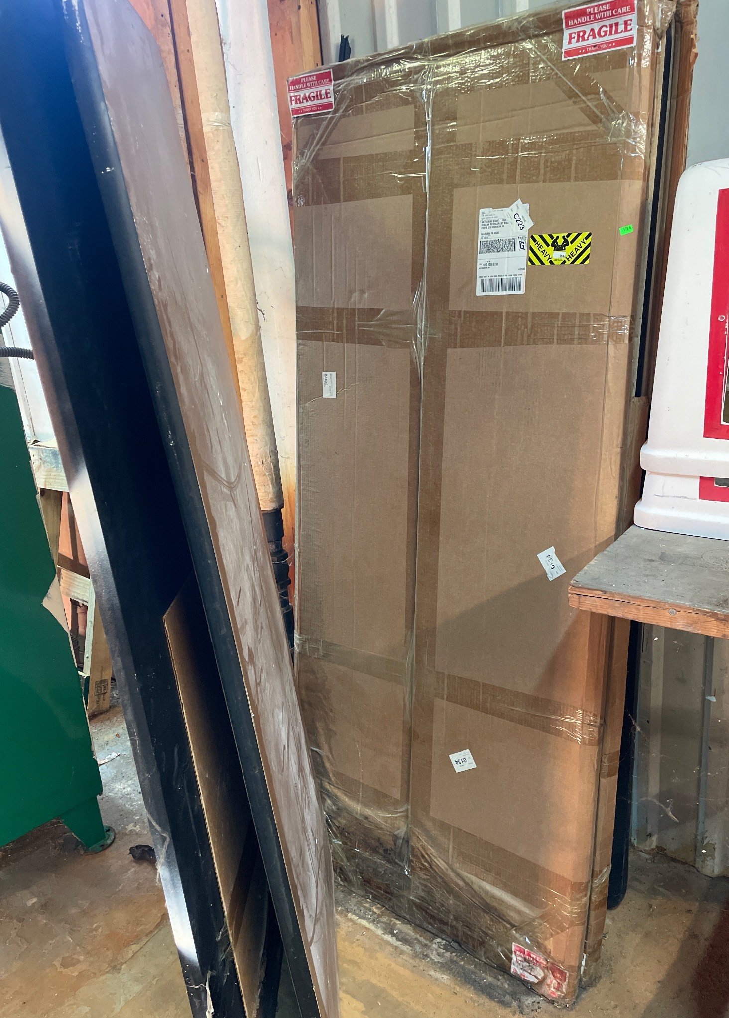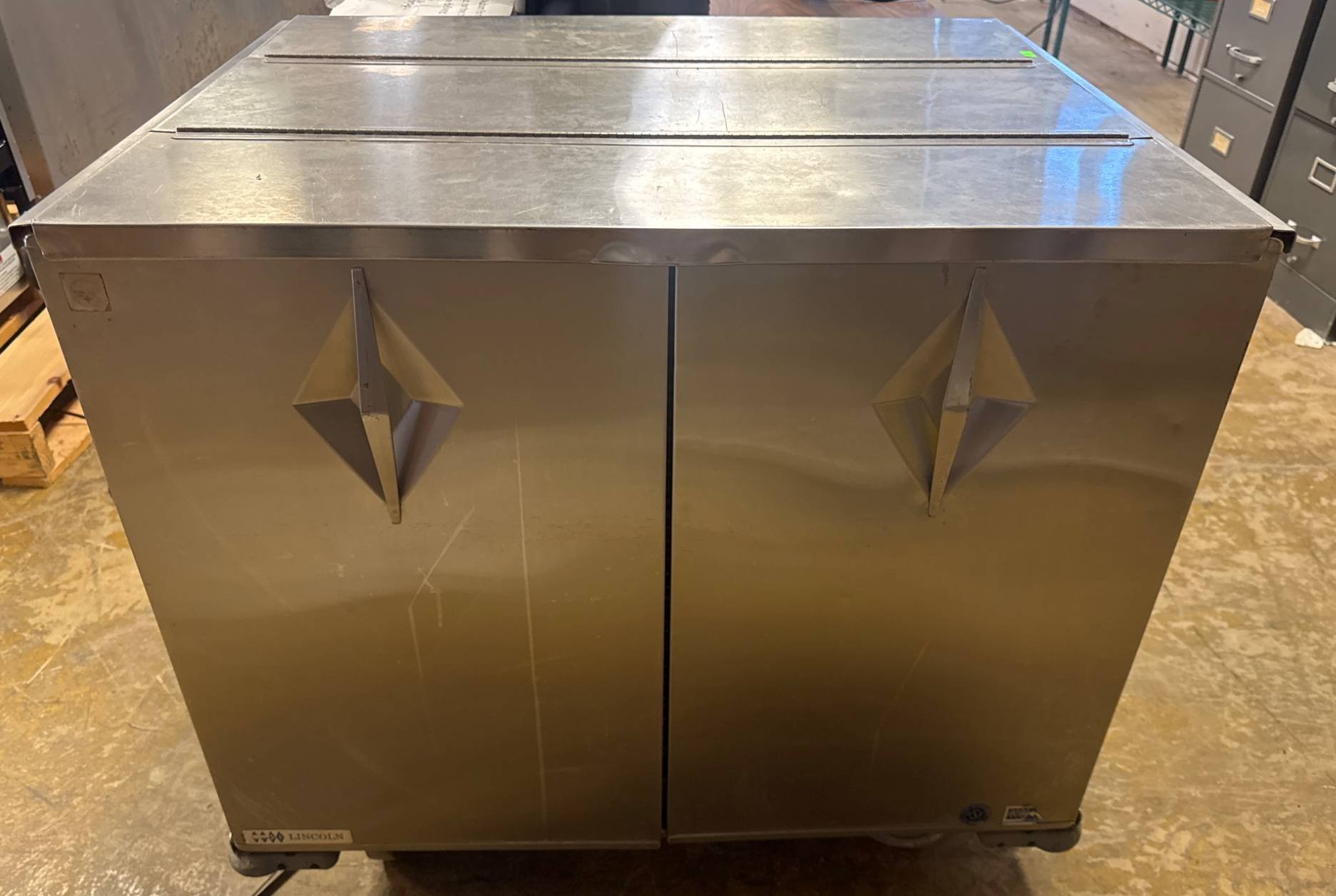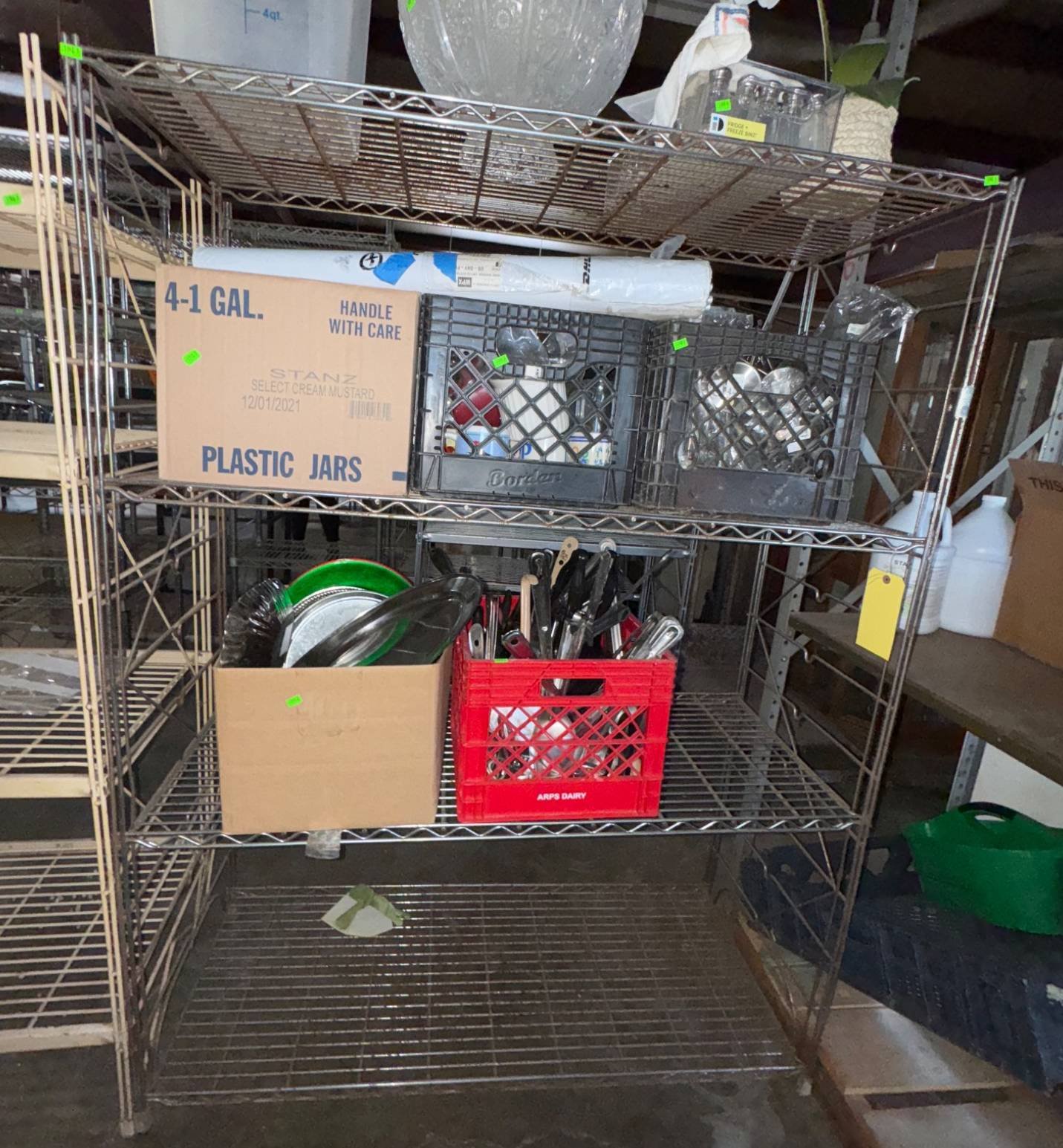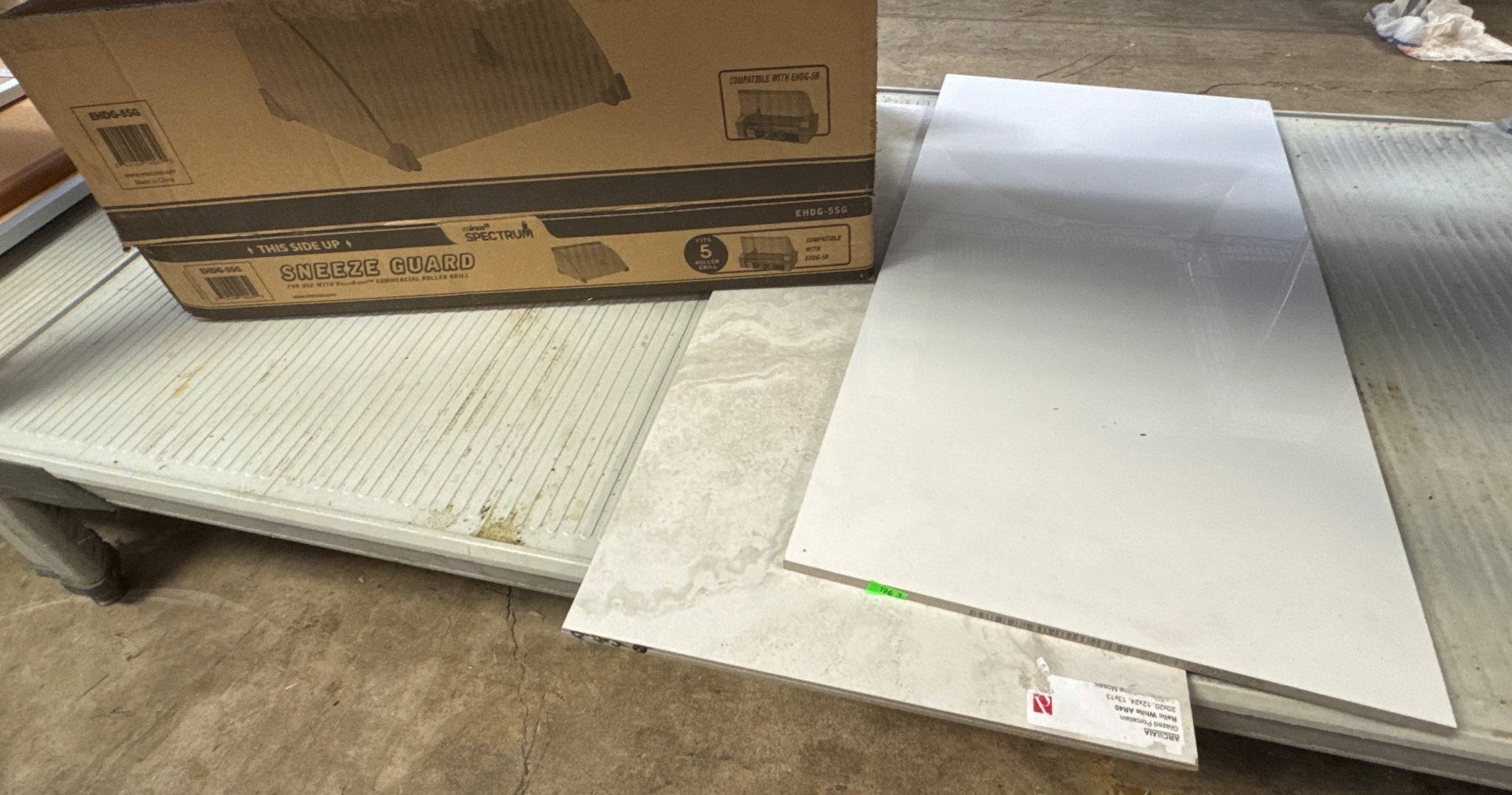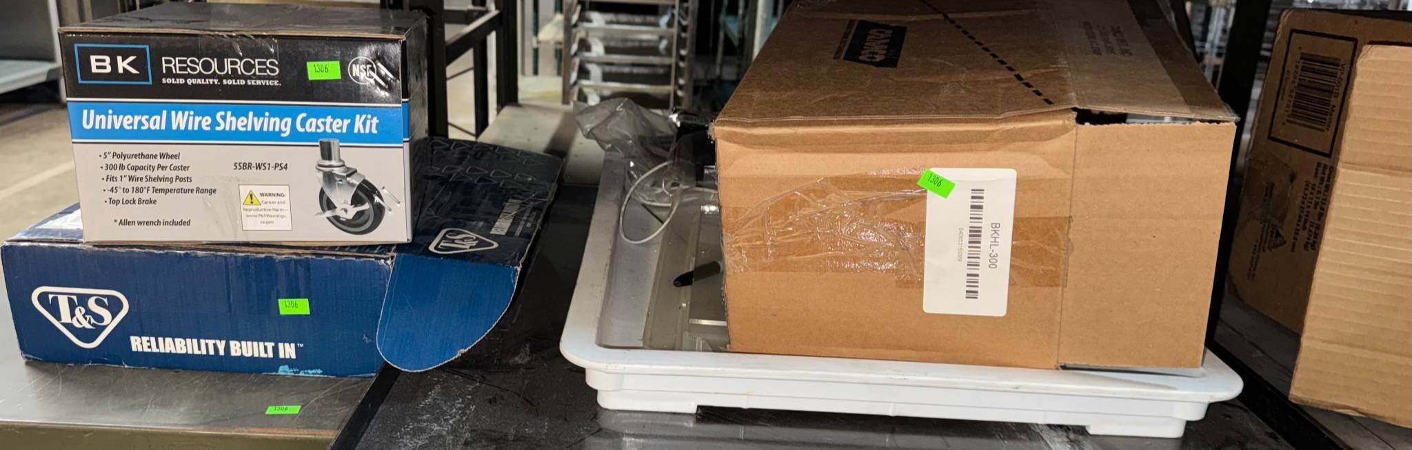 104 Metal Shelving Unit with Panel Board and Wood Skid 55 x 42.5 x 24