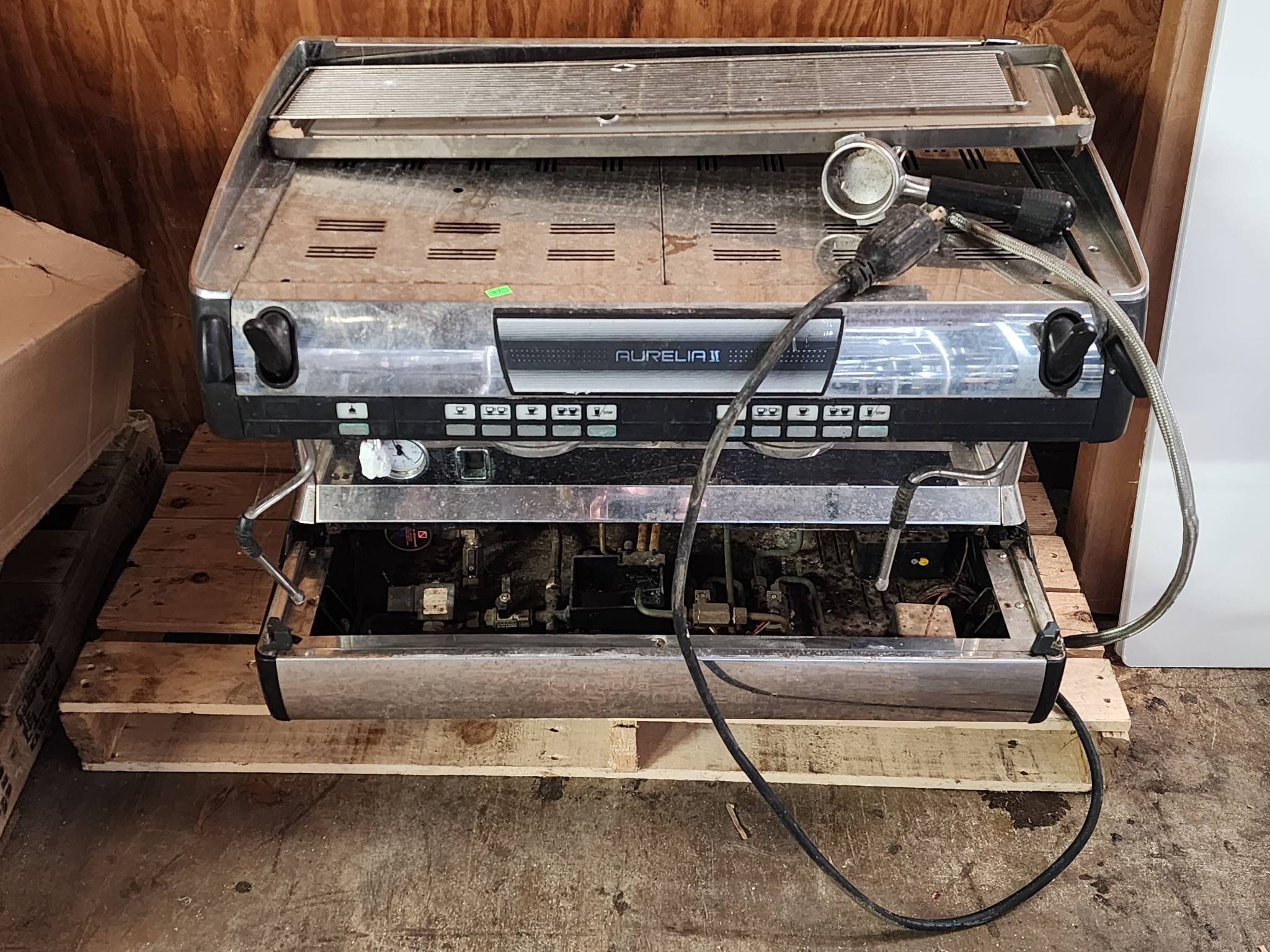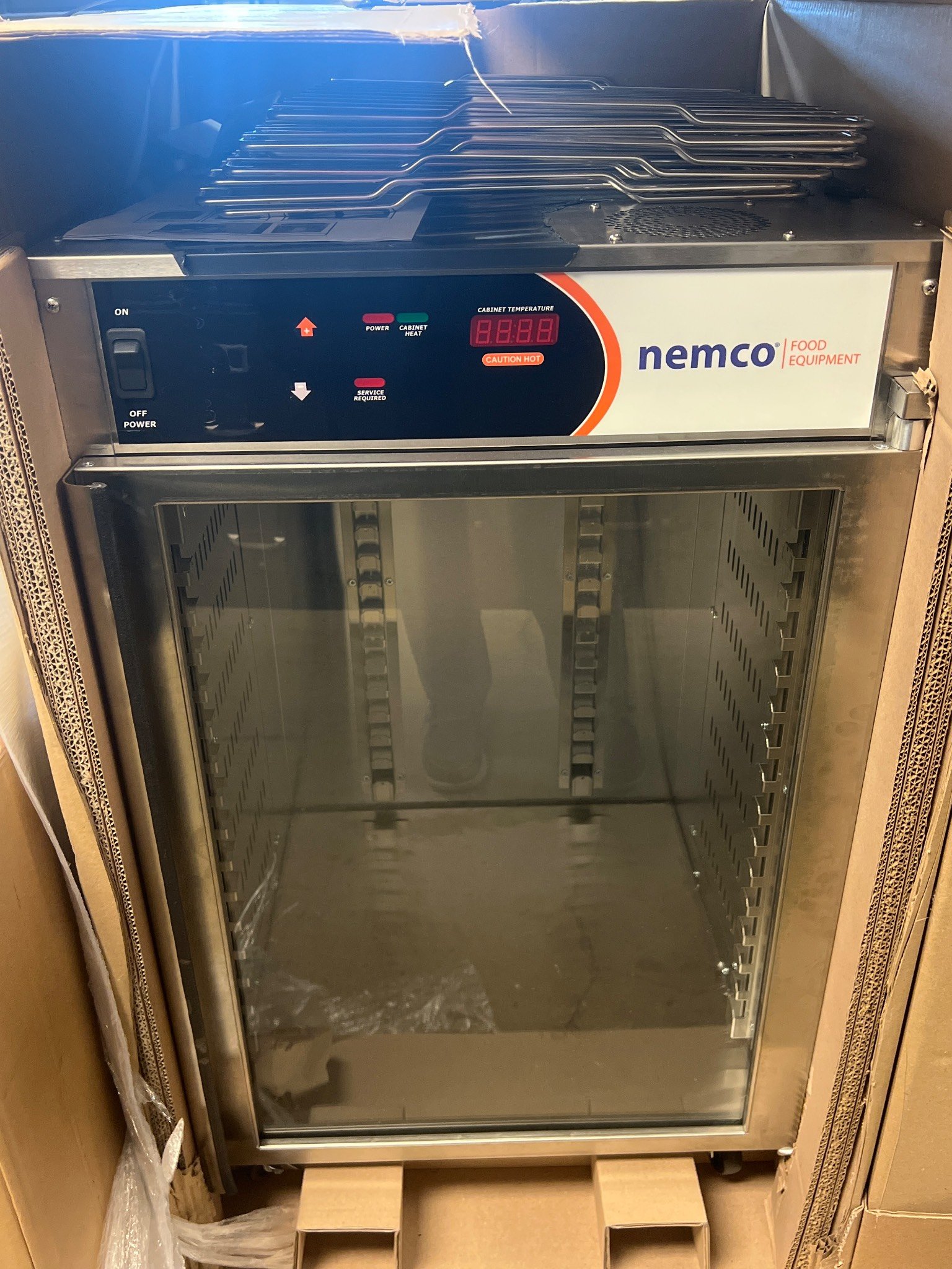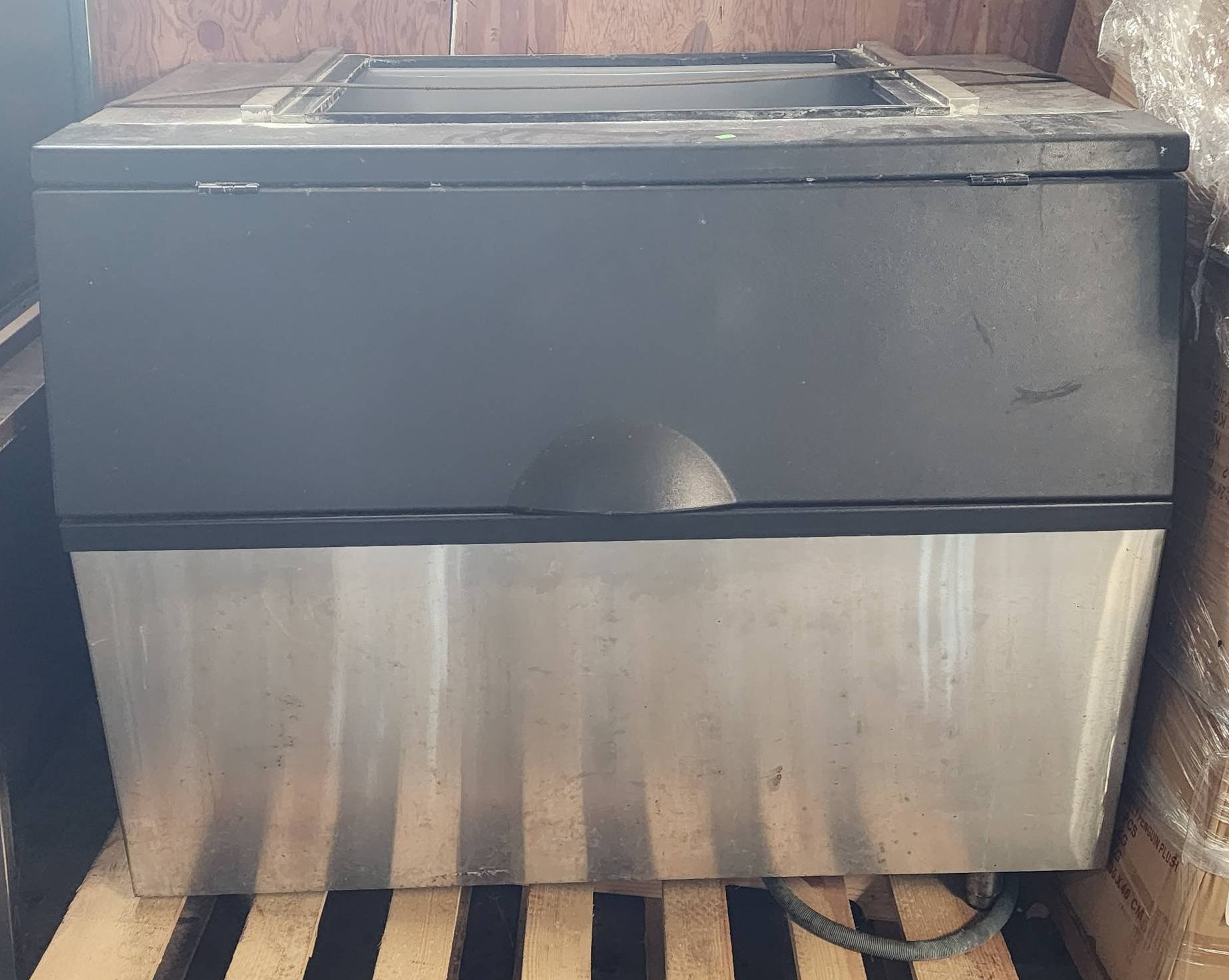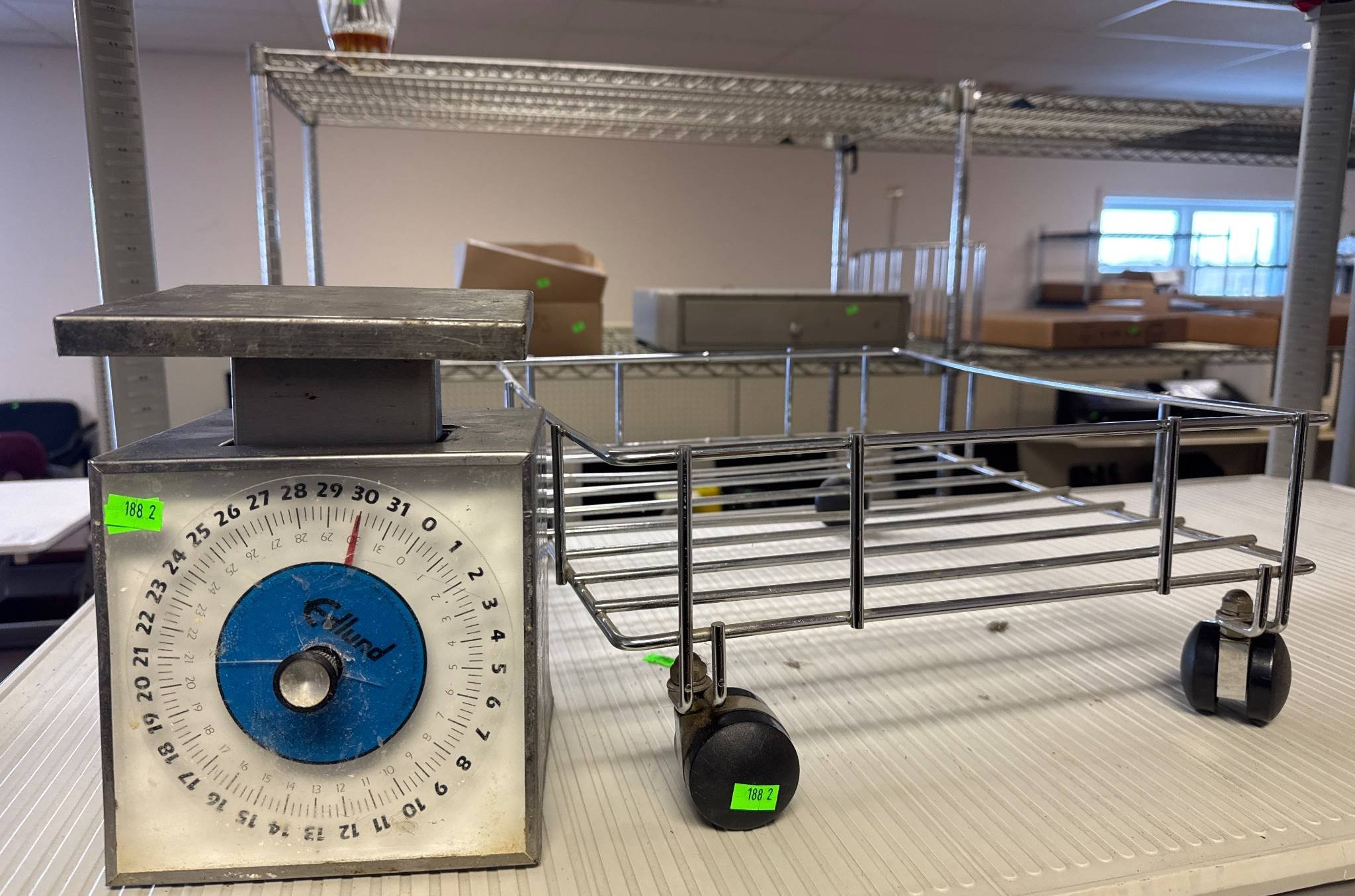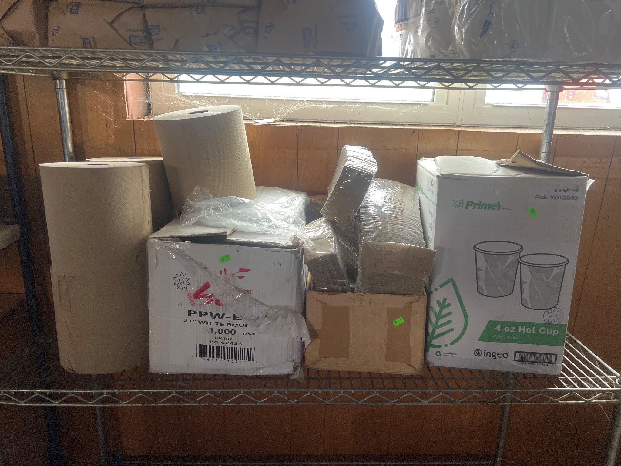 104 Metal Shelving Unit with Panel Board and Wood Skid 55 x 42.5 x 24