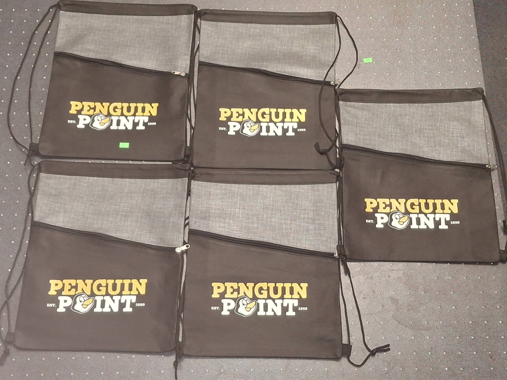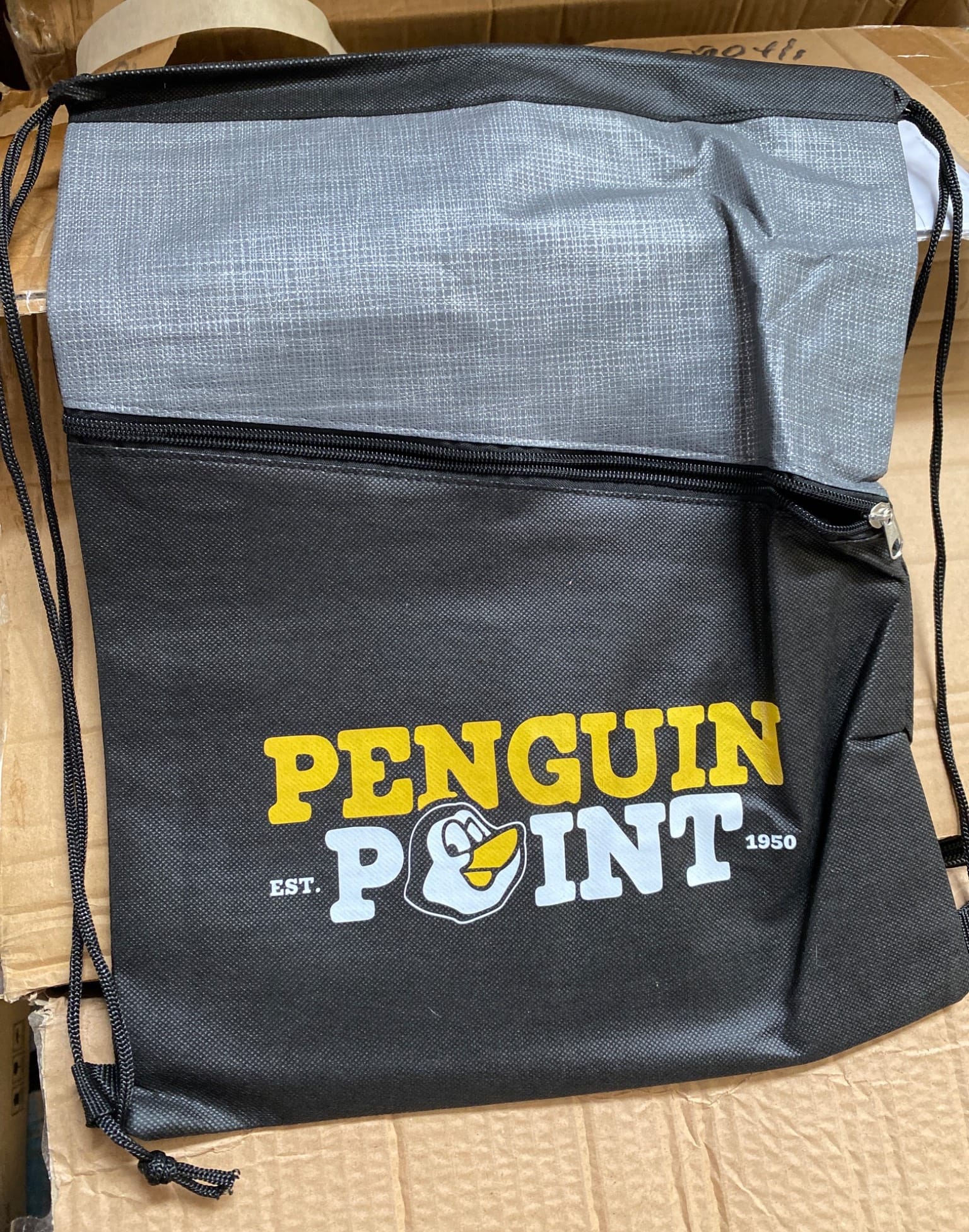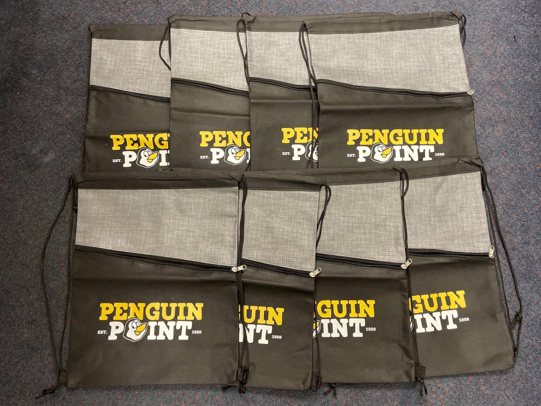 2830 8 Penguin Point Drawstring Bags with Printed Logo, 12.75×16 in