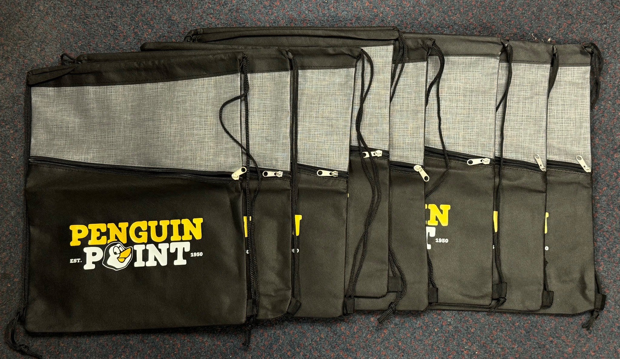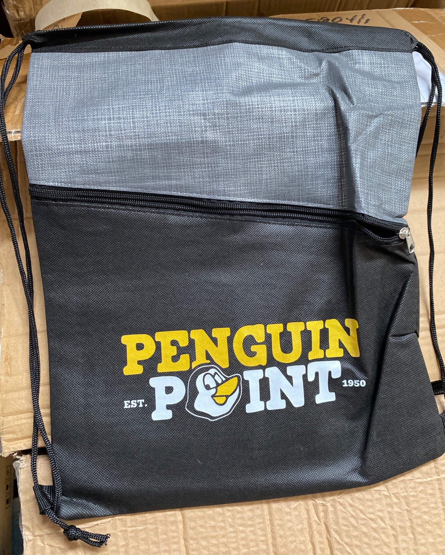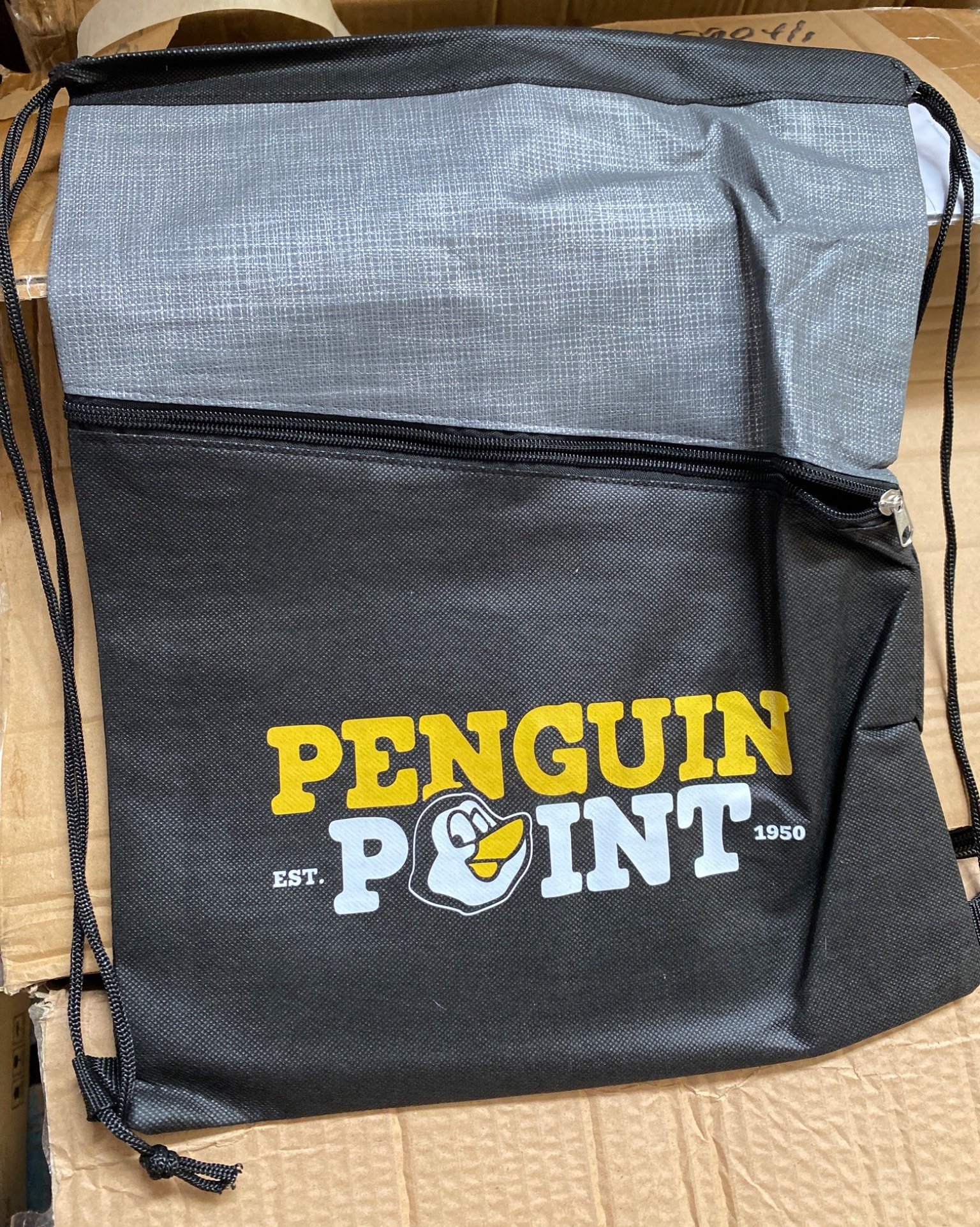 2830 8 Penguin Point Drawstring Bags with Printed Logo, 12.75×16 in