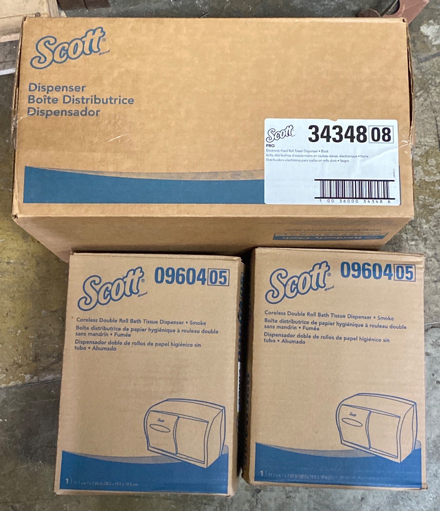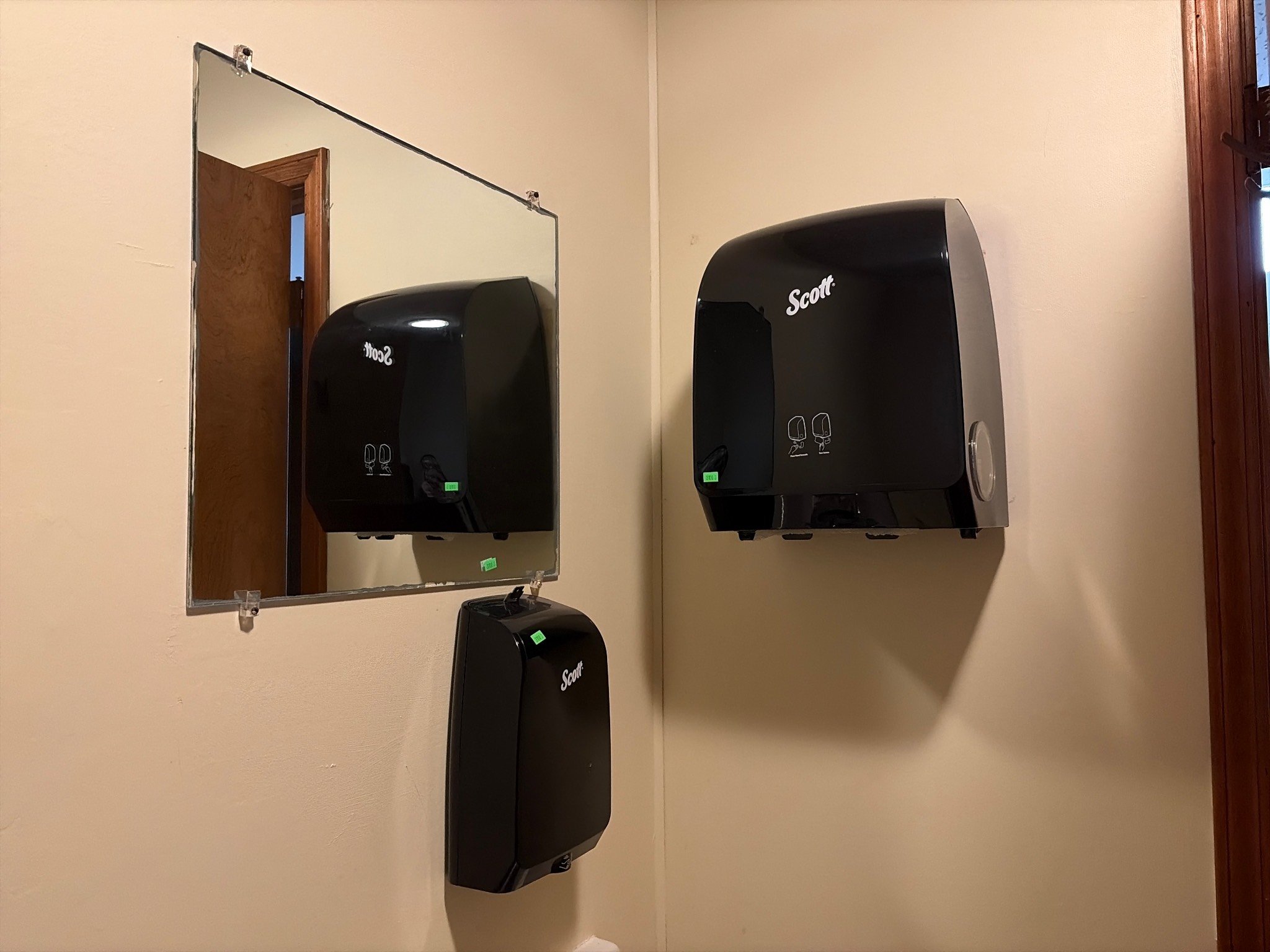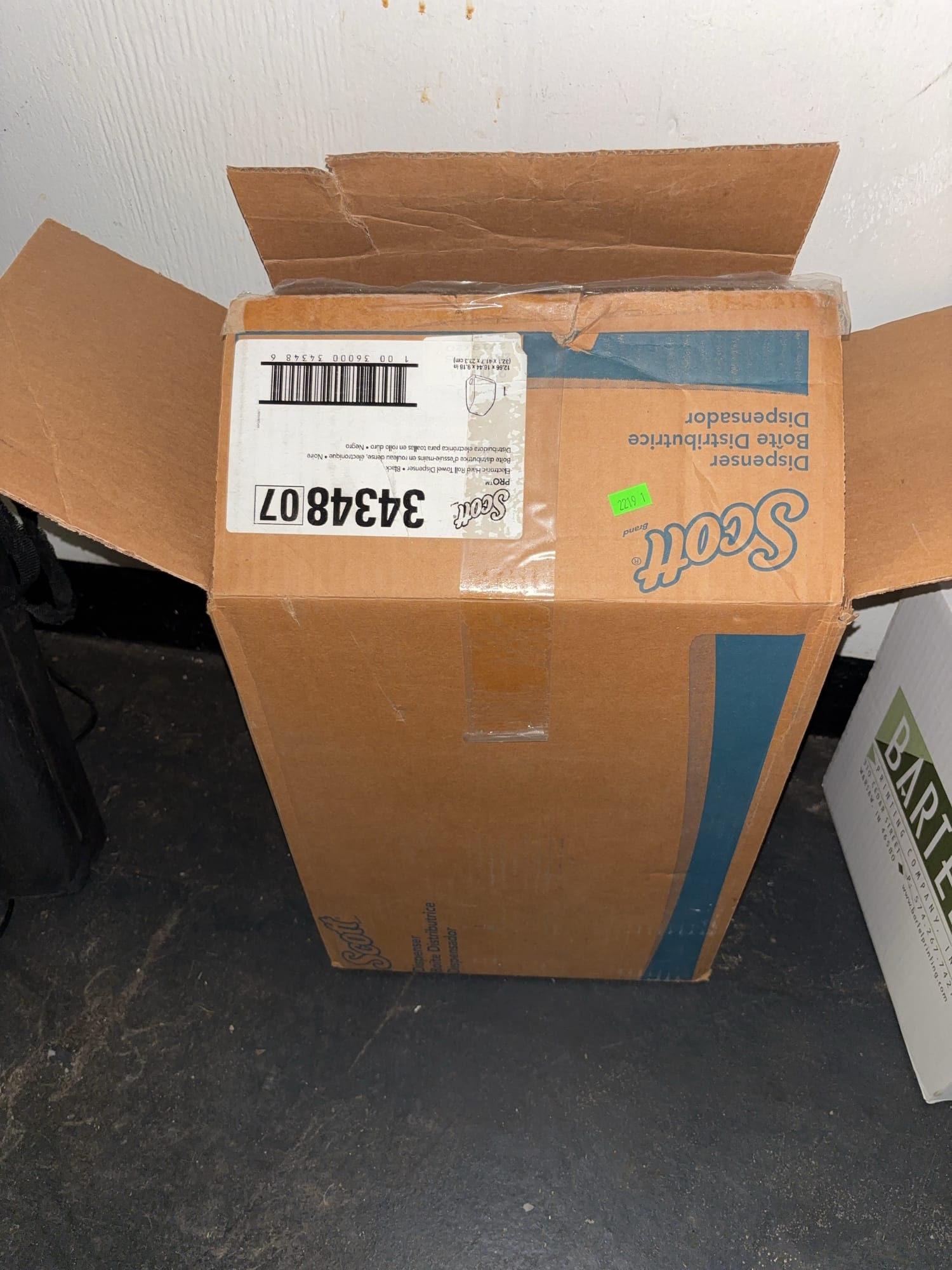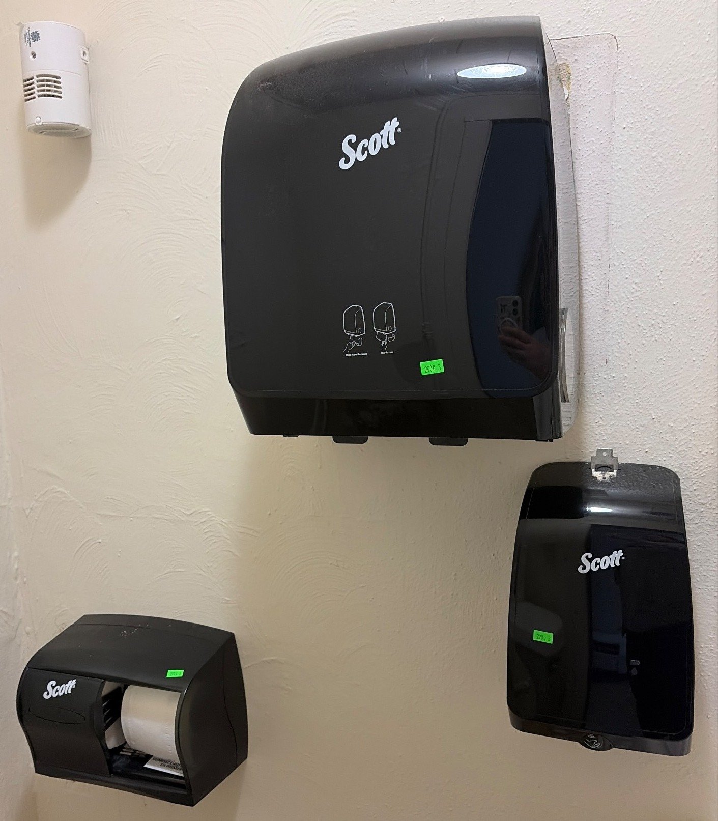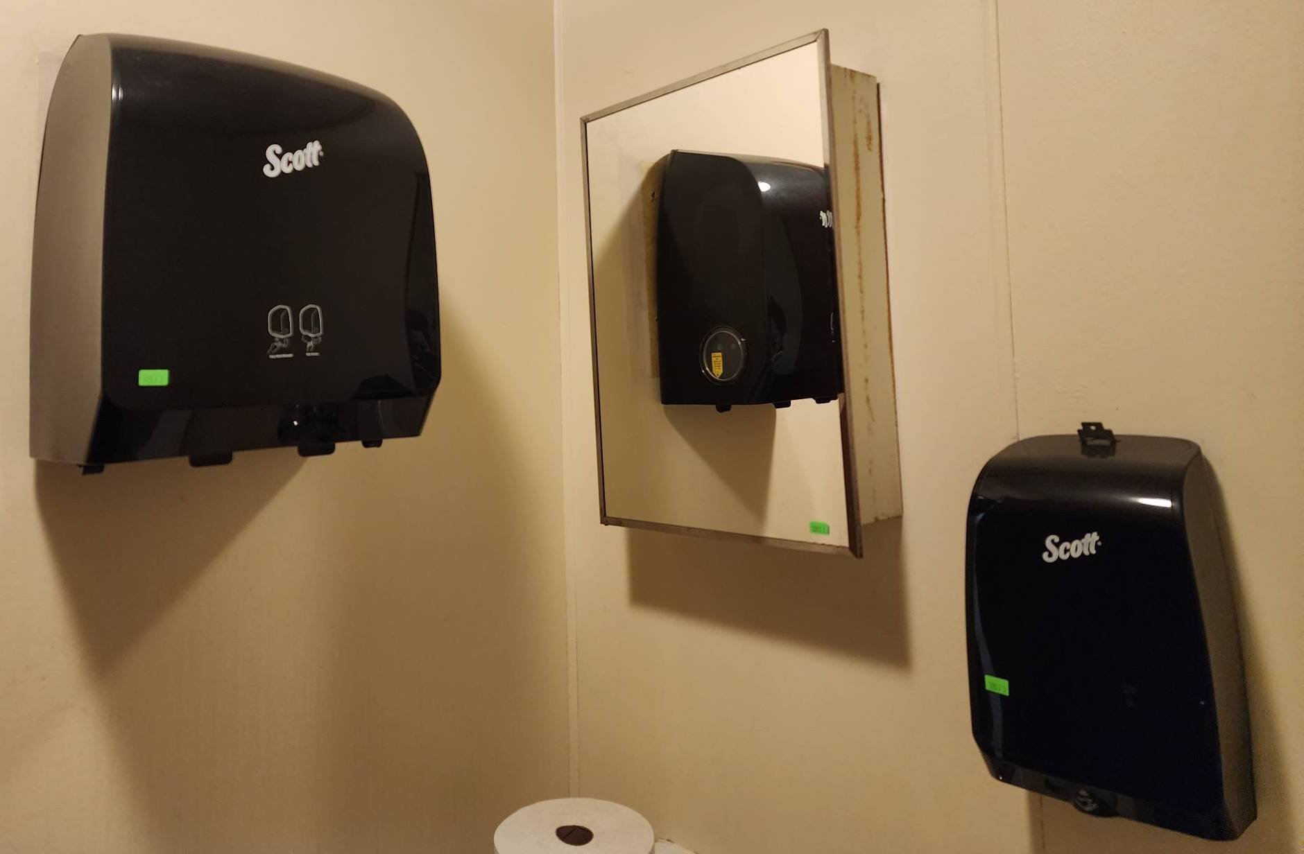 2900 Scott Brand Black Dispensers for Paper Towels and Toilet Tissue, Wall-Mounted, Will Need Removed from Wall , 12”x12”, 7”x11”, 10”x7”