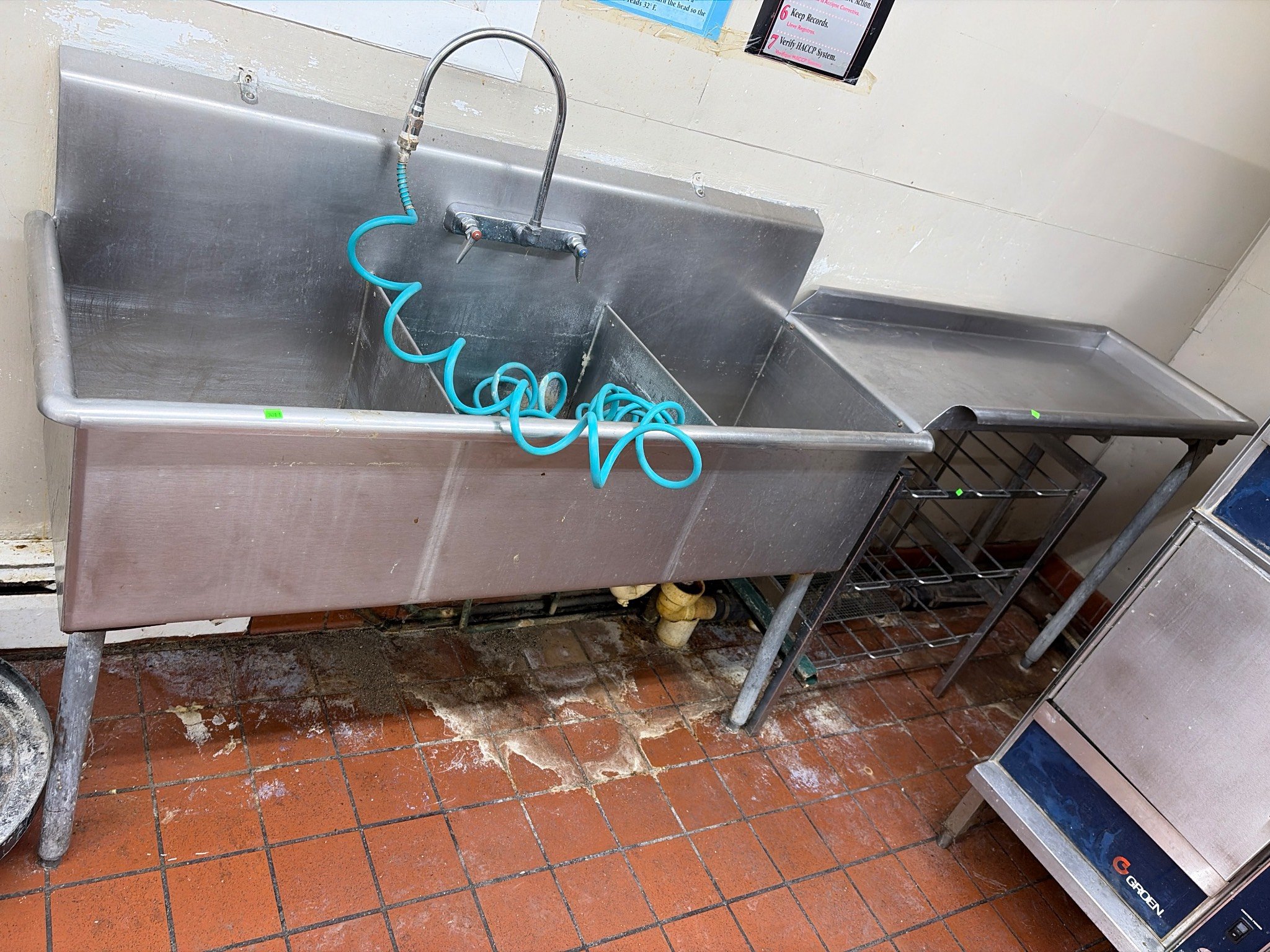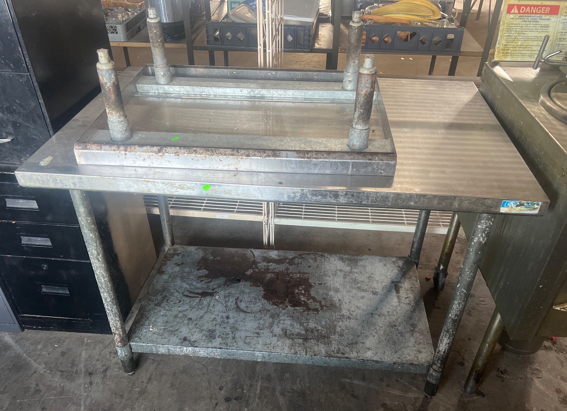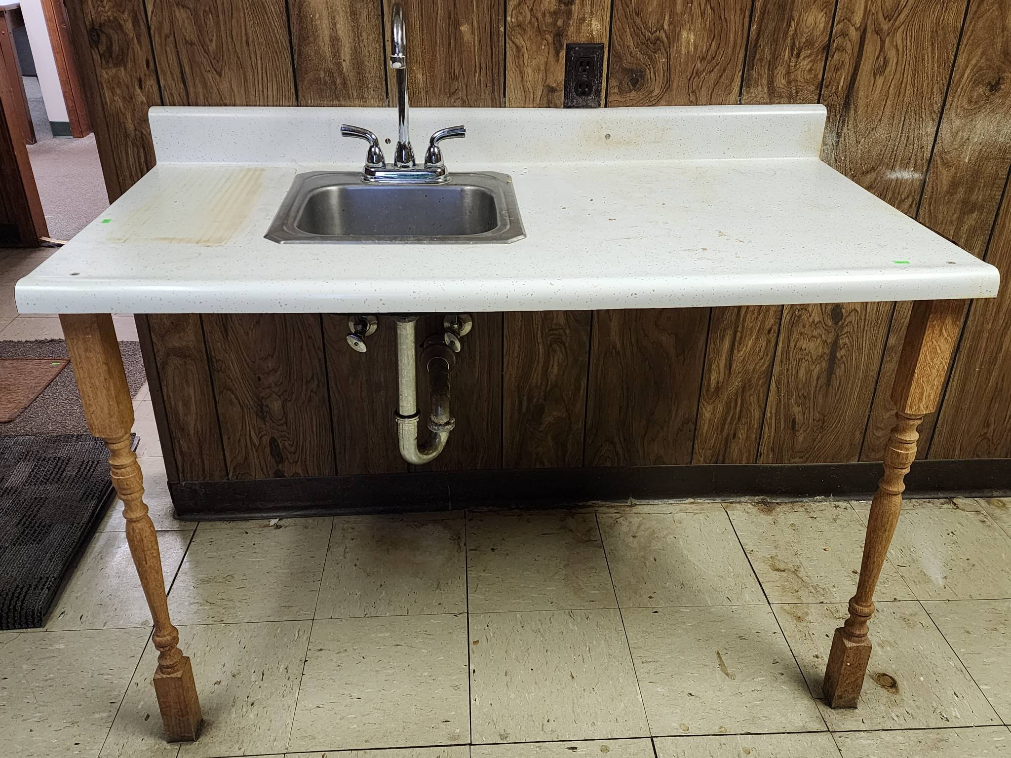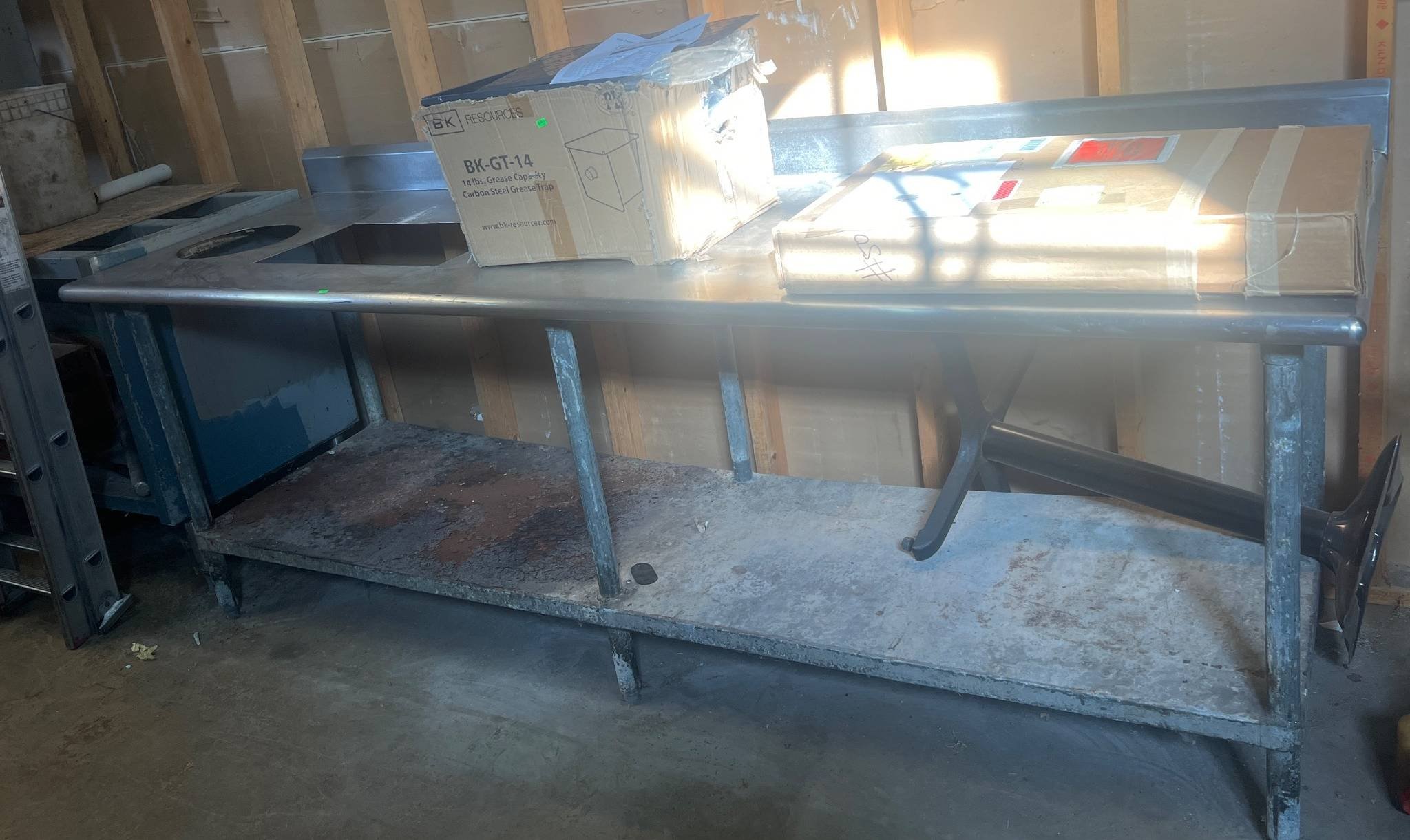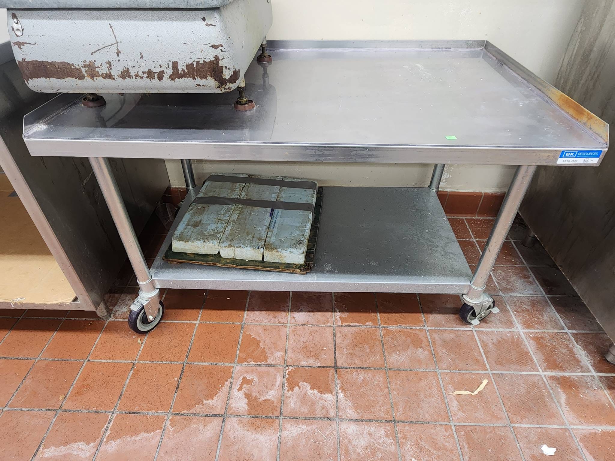3201 Freestanding Sink Unit with Integrated Faucet and Stainless Steel Basin 49? x 25? x 36? – Table Still Connected – BUYER TO REMOVE