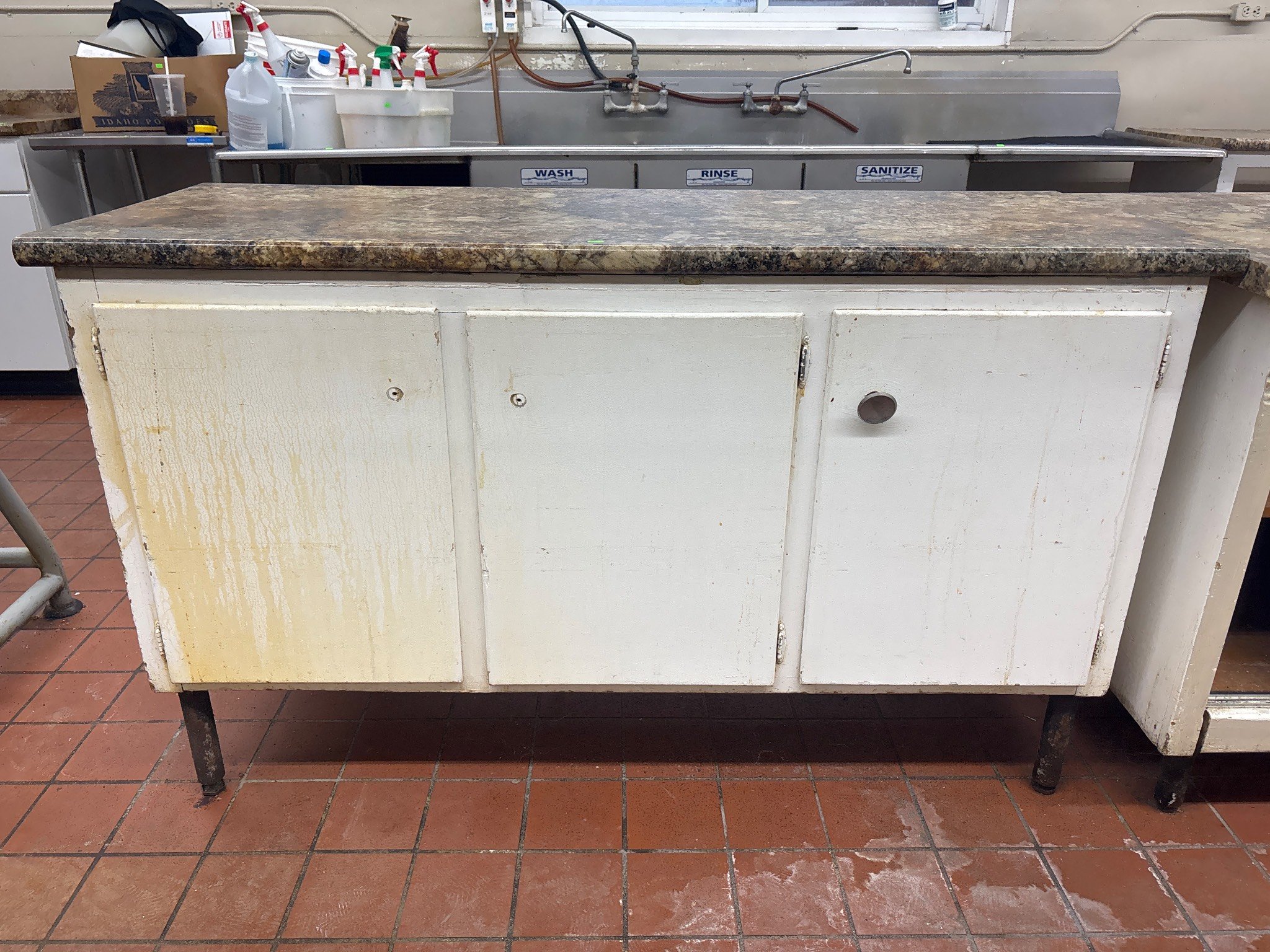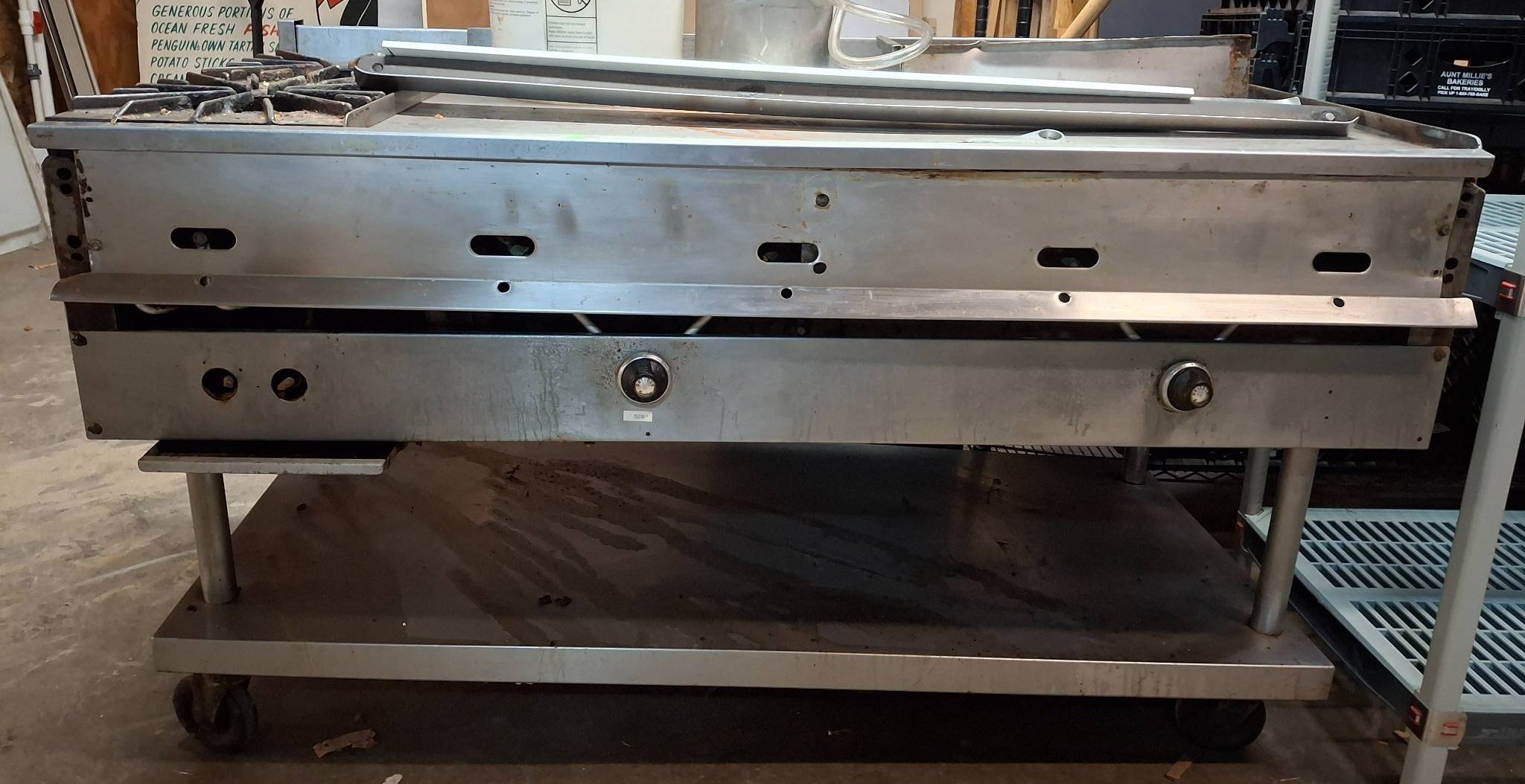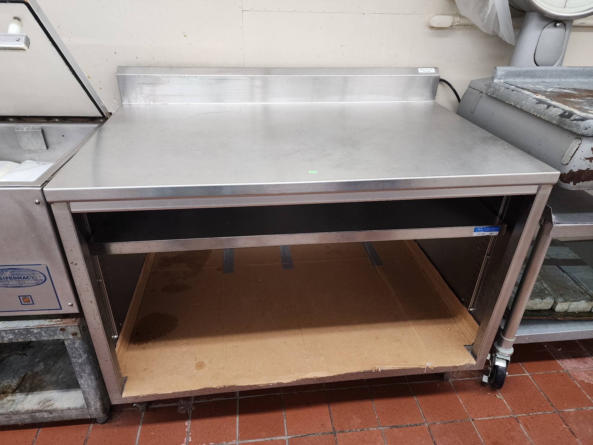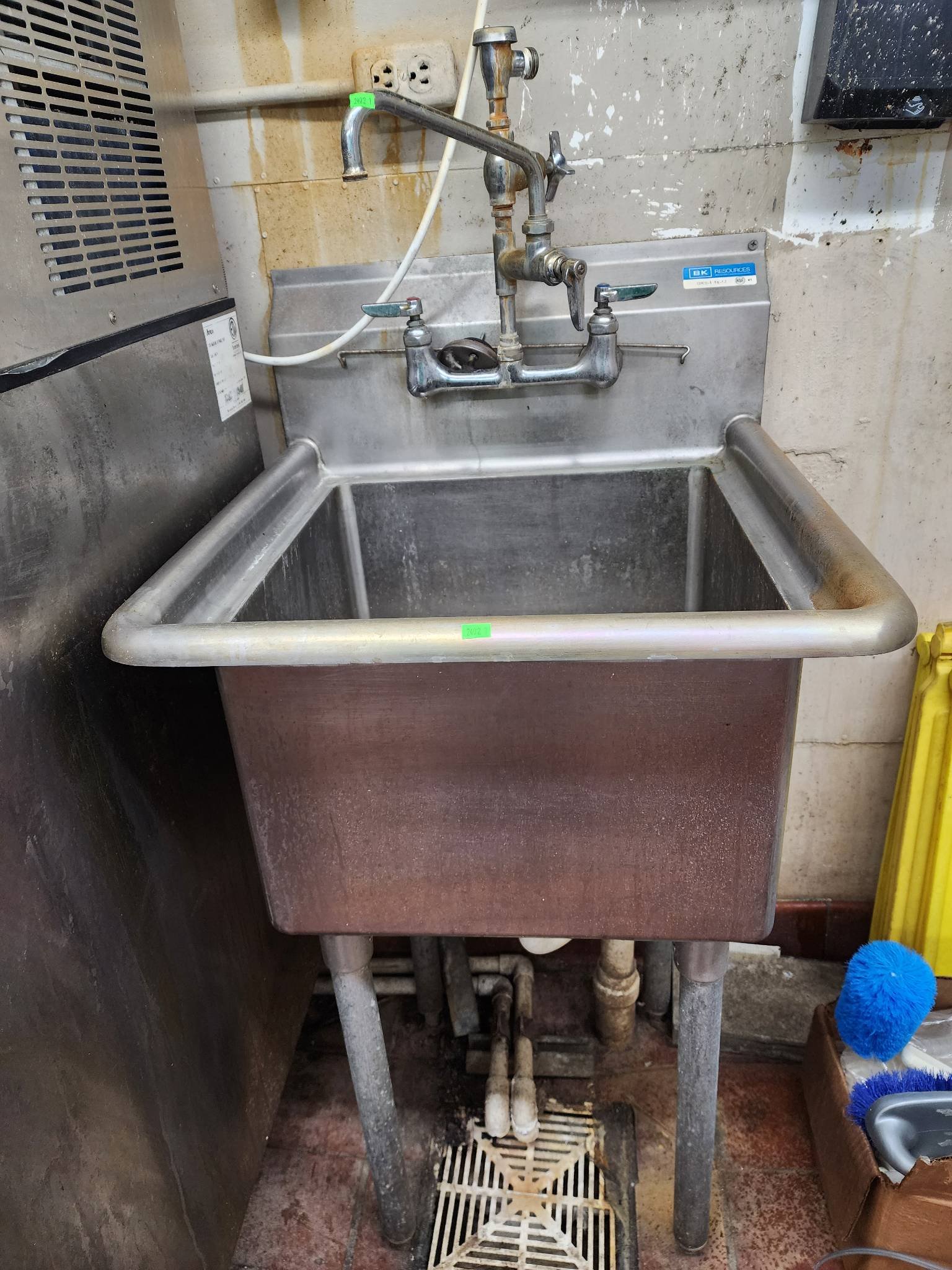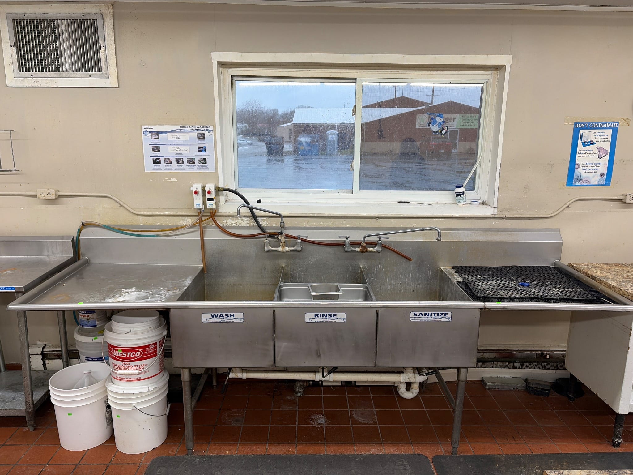3201 Freestanding Sink Unit with Integrated Faucet and Stainless Steel Basin 49? x 25? x 36? – Table Still Connected – BUYER TO REMOVE
