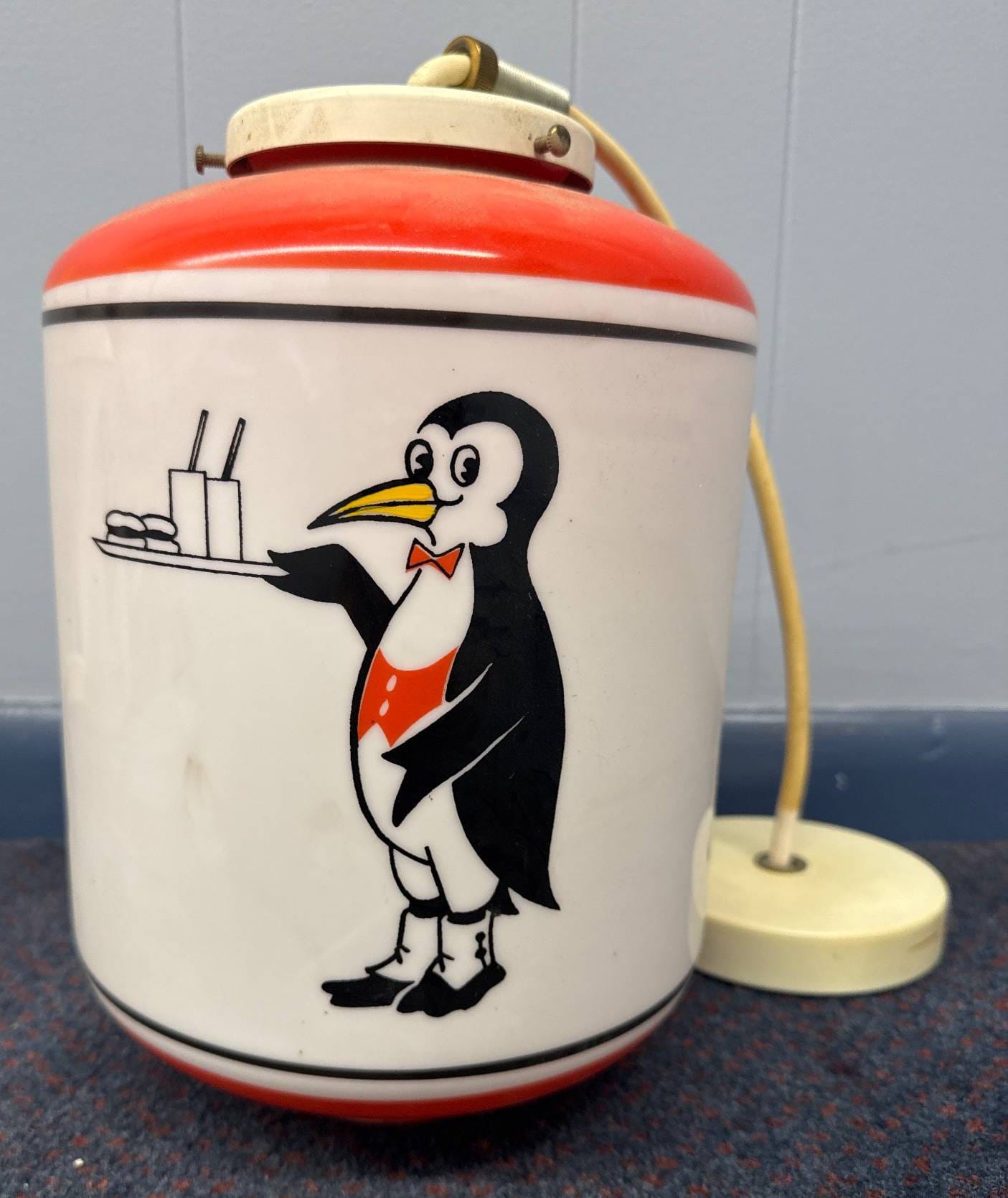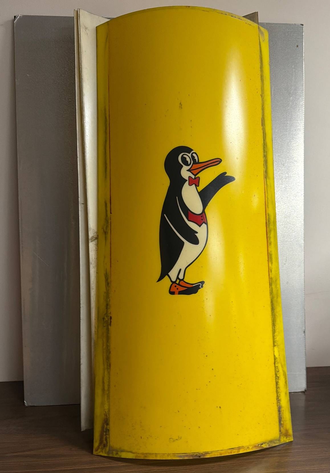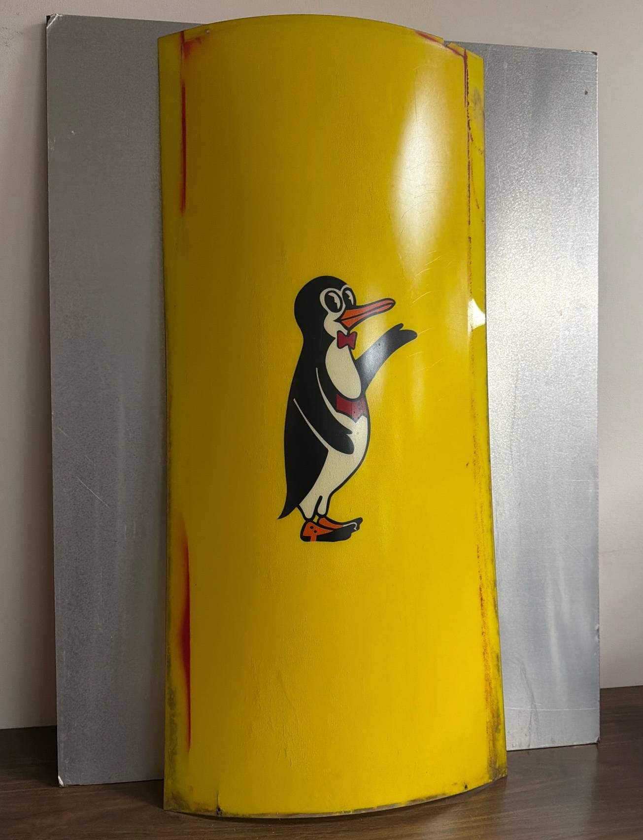 7081 Yellow Metal Advertising Sign with Illustrated Penguin Graphic