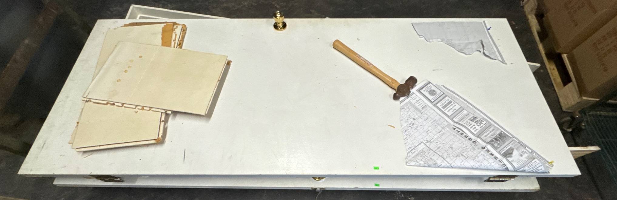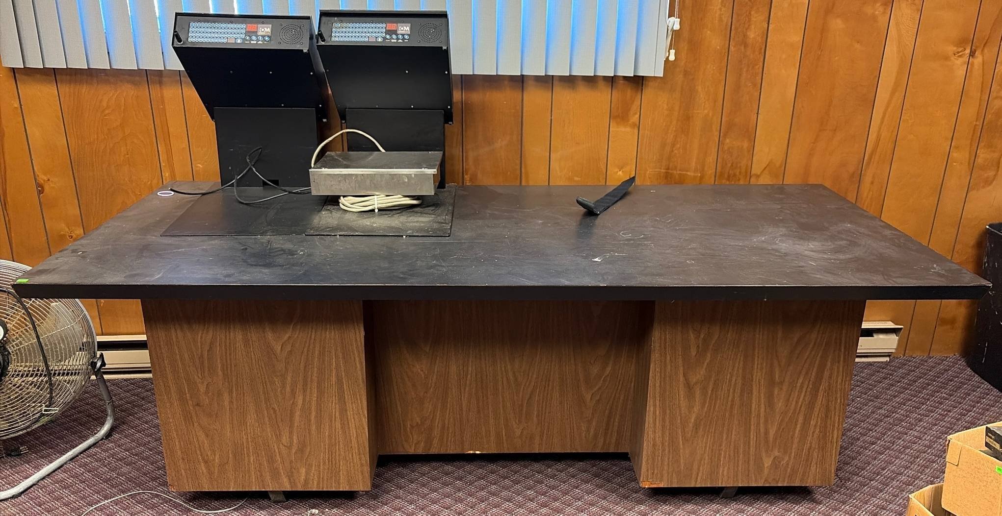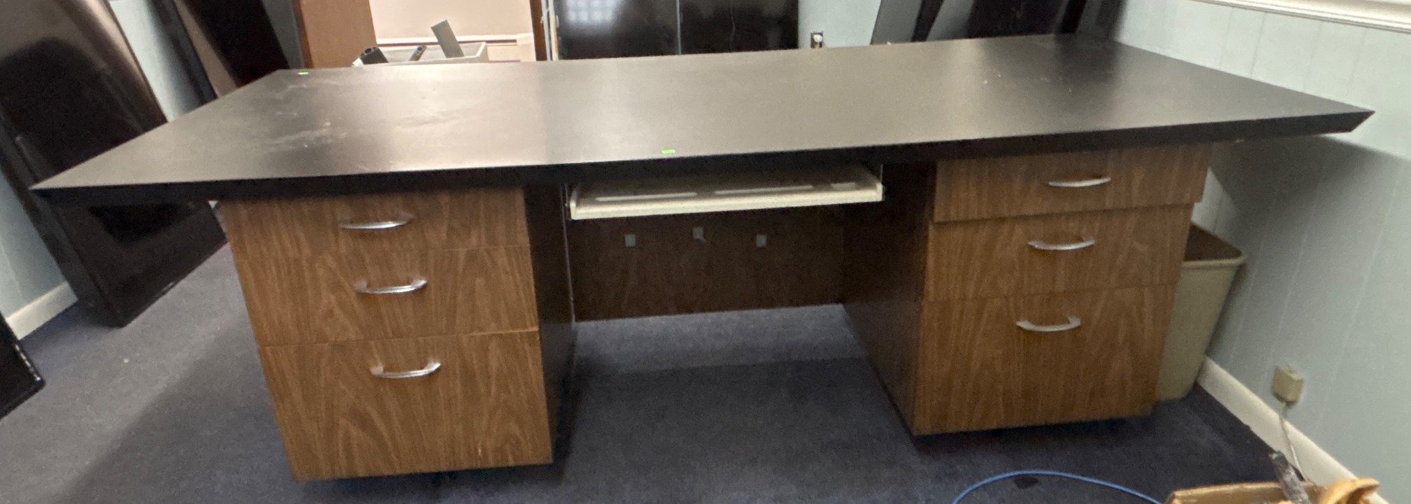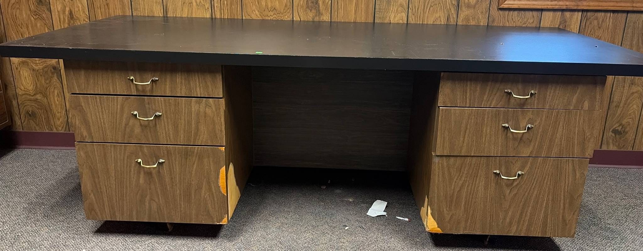 3304 Desk with 6 Drawers & Black Laminate Top, Damaged Laminate on Bottom, 86”x36”x29”