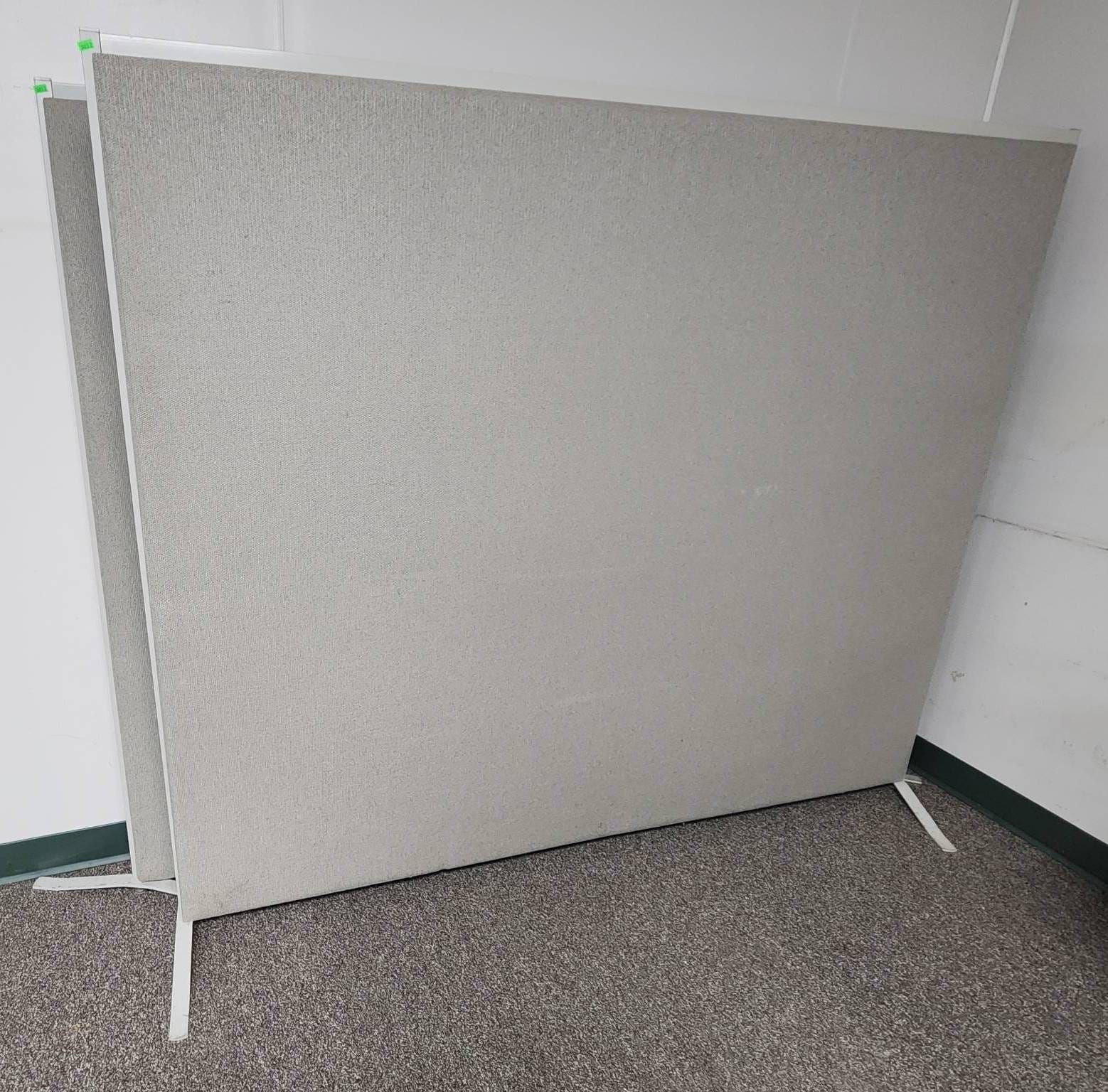 3403 2 Gray Fabric-Covered Office Partition Panels with T-Base Stands, 72?x60.5?