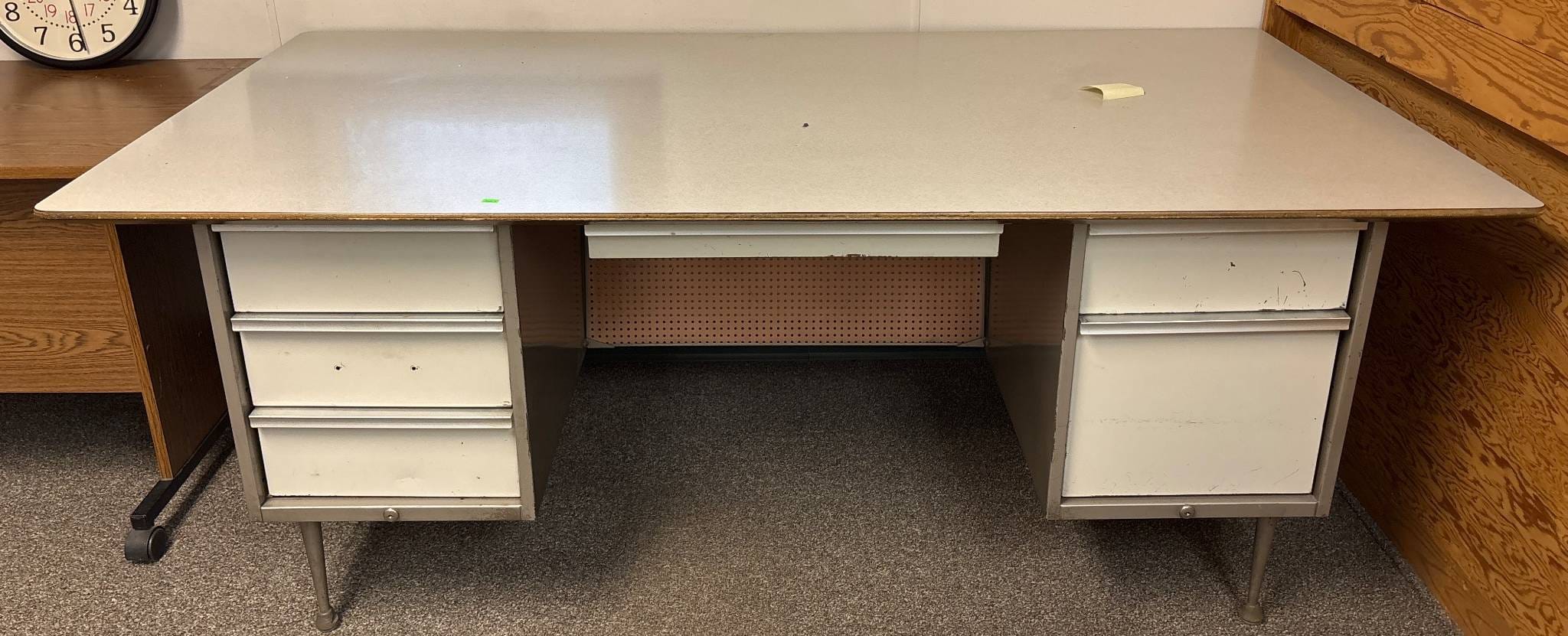 3416 Metal Office Desk with Laminated Top and 6 Drawers 60? x 30? x 29? No Key