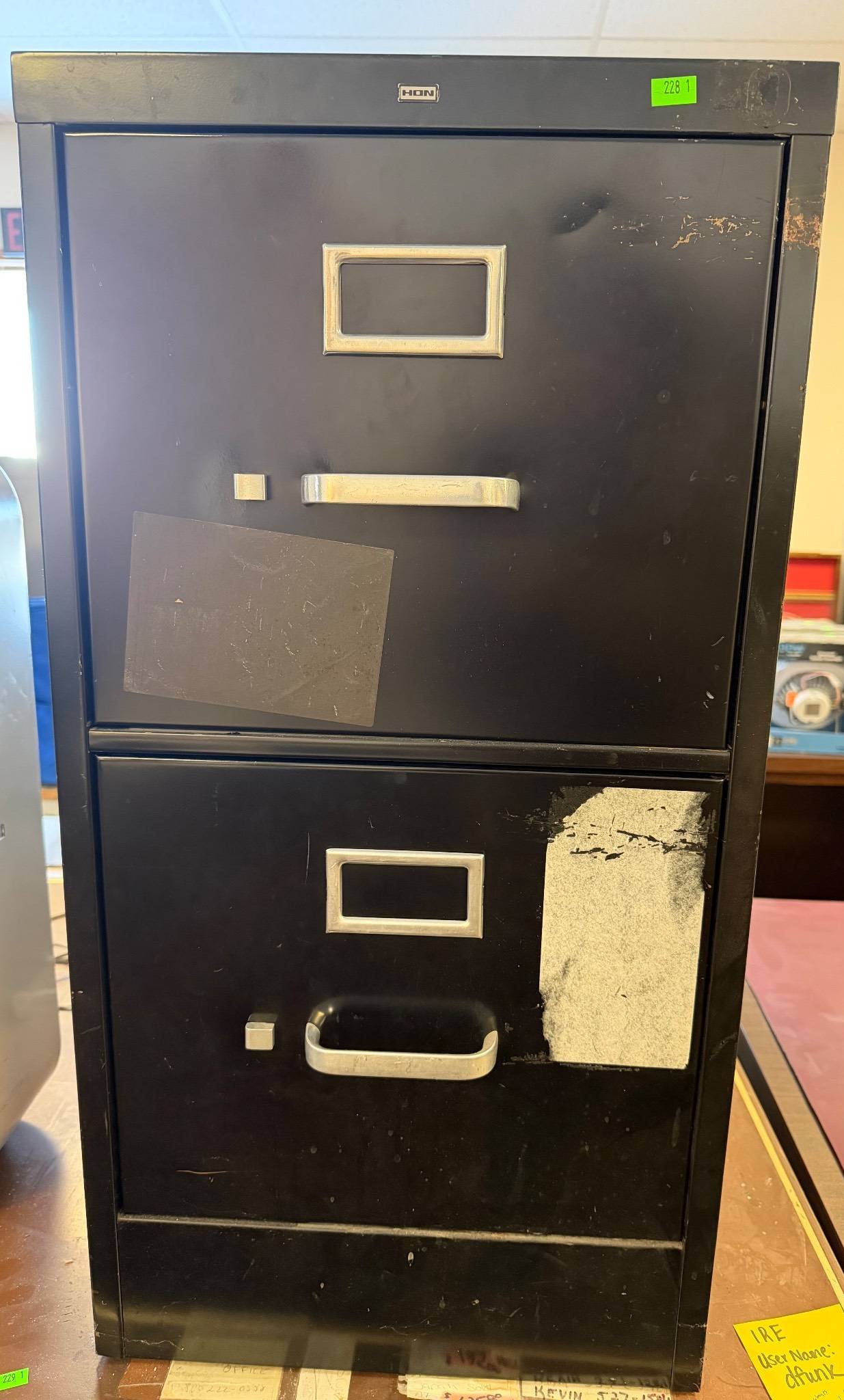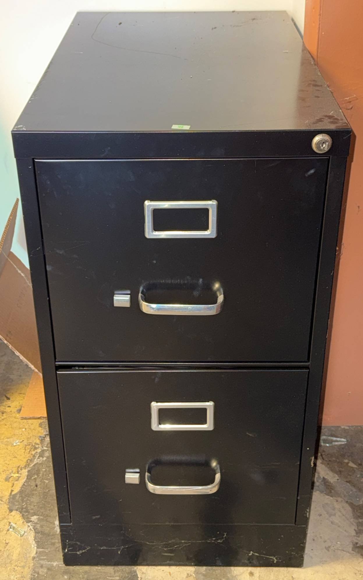 100 Black Metal 2-Drawer File Cabinet with Locking Mechanism 25 x 25 x 28.5 no key ( Locked Drawers No Key)