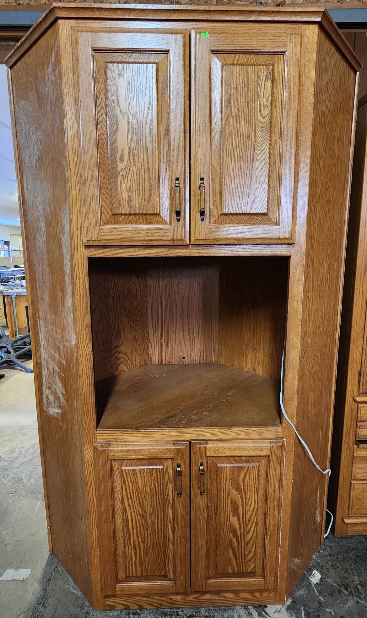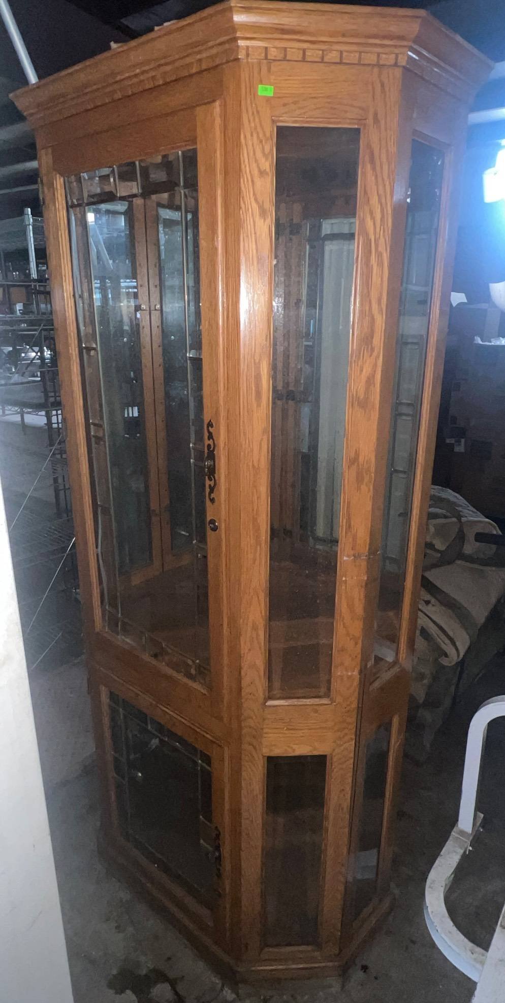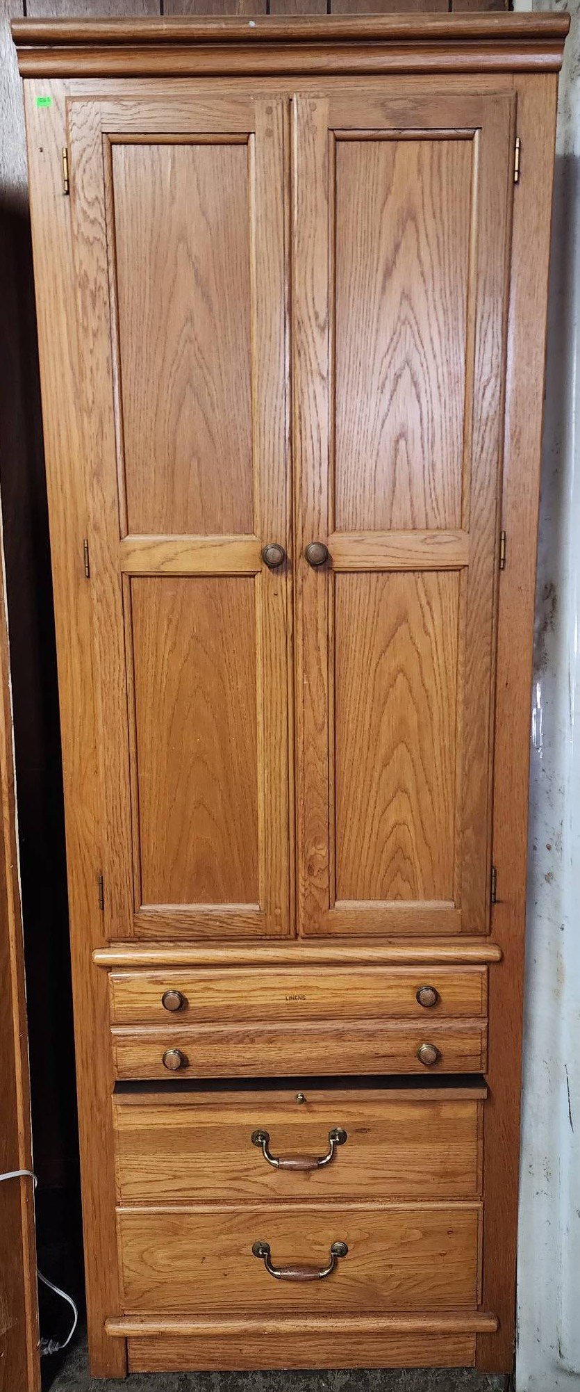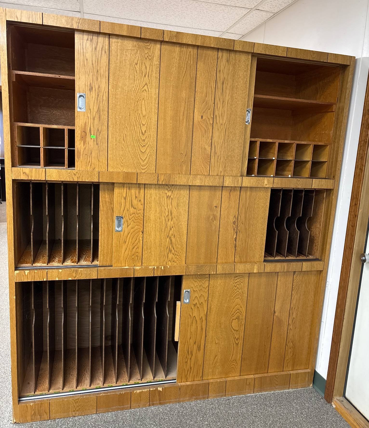 3407 Oak Storage Cabinet with Sliding Doors and Compartmentalized Shelving 66? x 22? x 75?