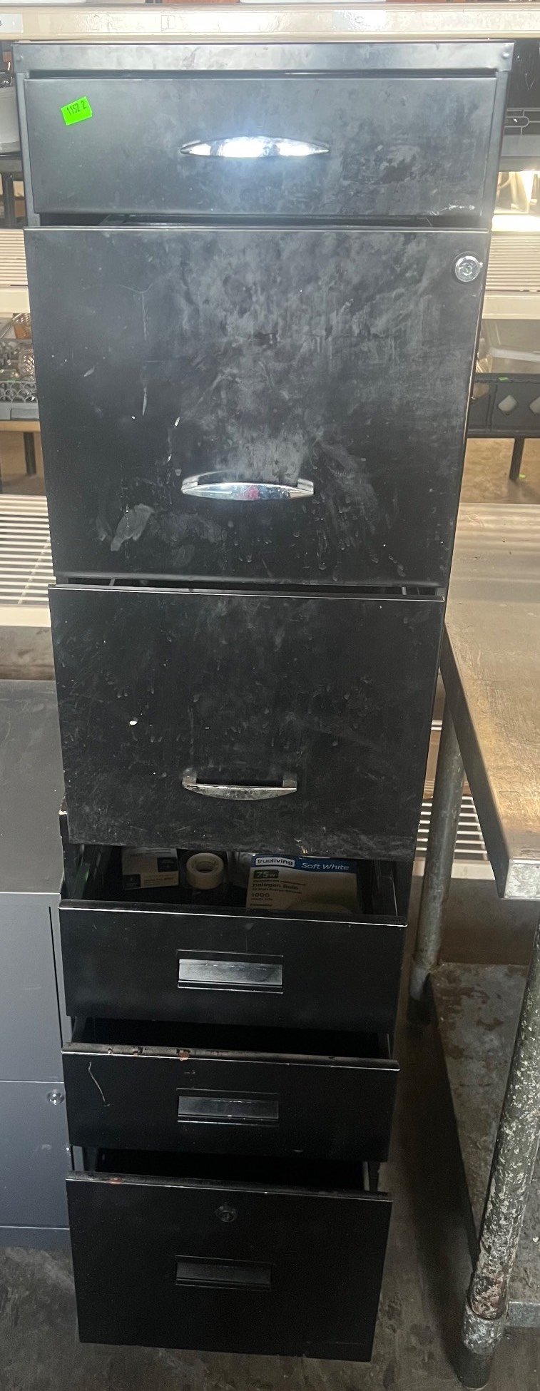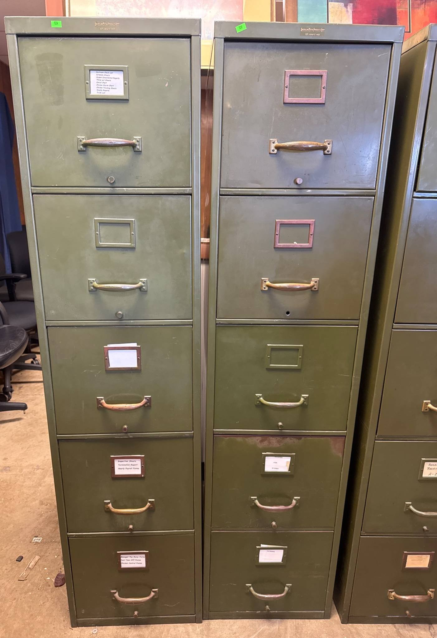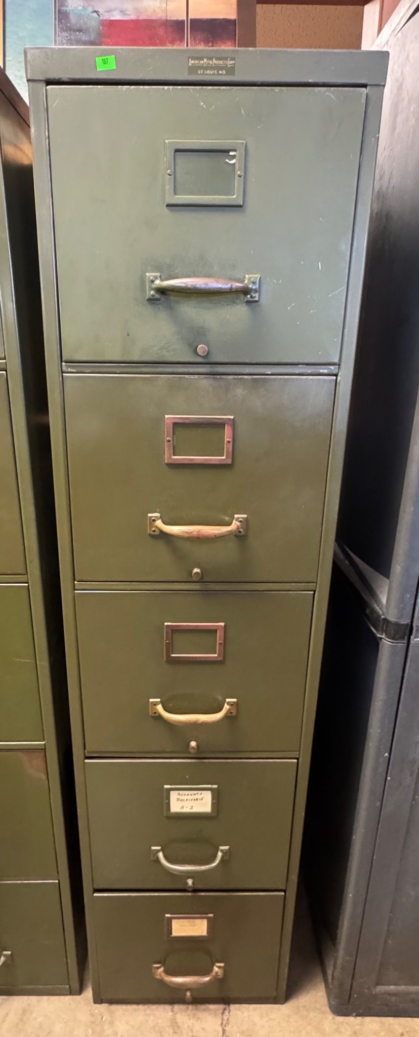 109 2 Green Metal 5-Drawer Filing Cabinet 24.5 x 24.5 x 62