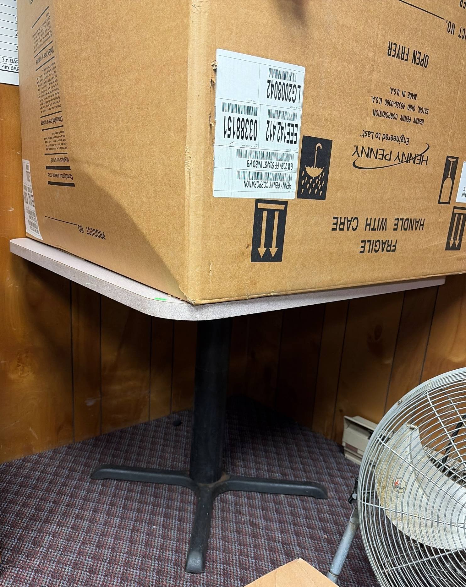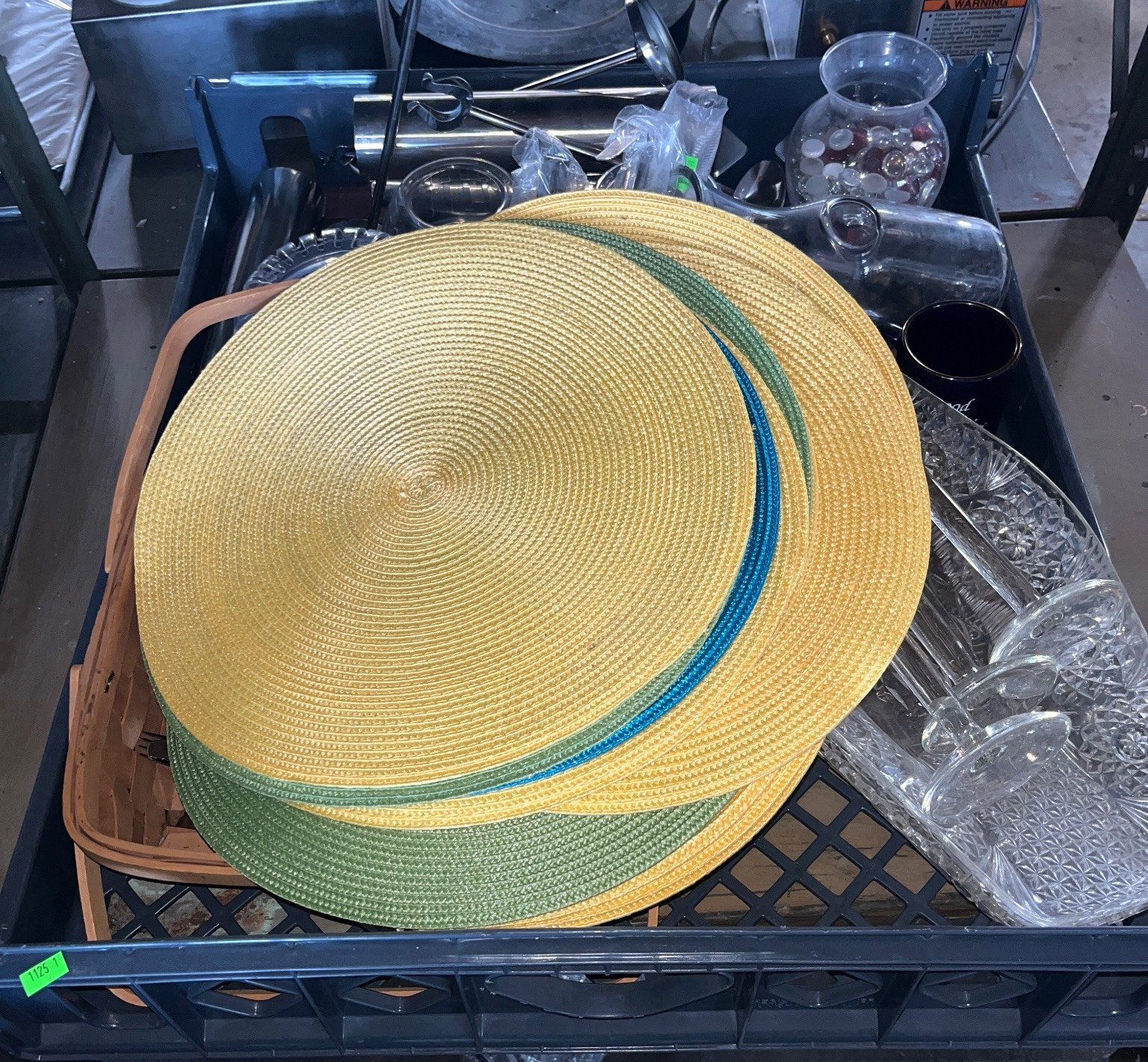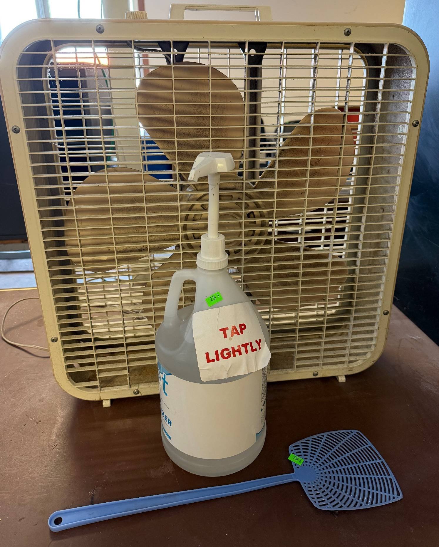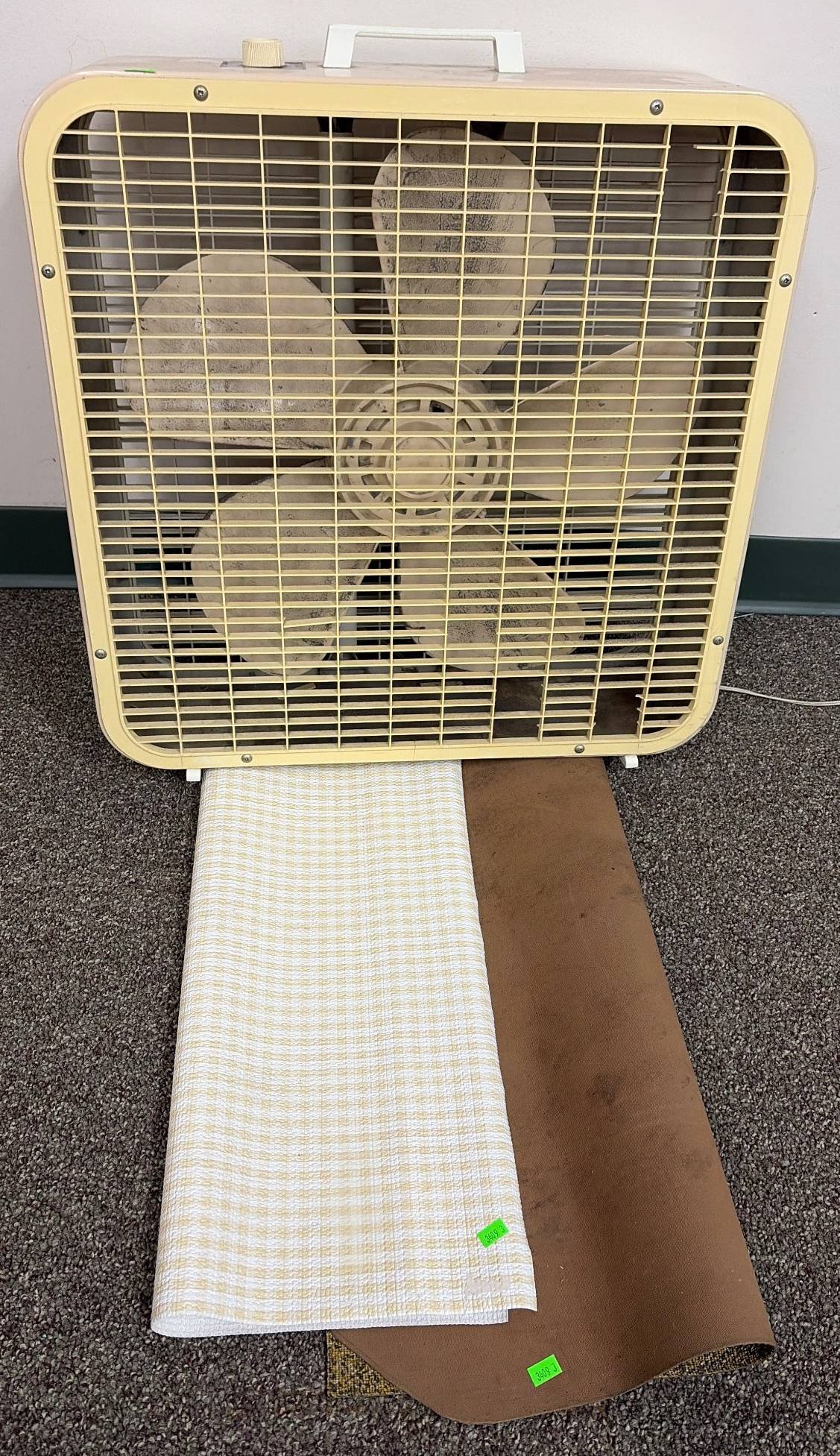 3409 Lakewood Box Fan Model 101 with Control Knob untested, Placemats 23”x6”x20”, 20”x20”