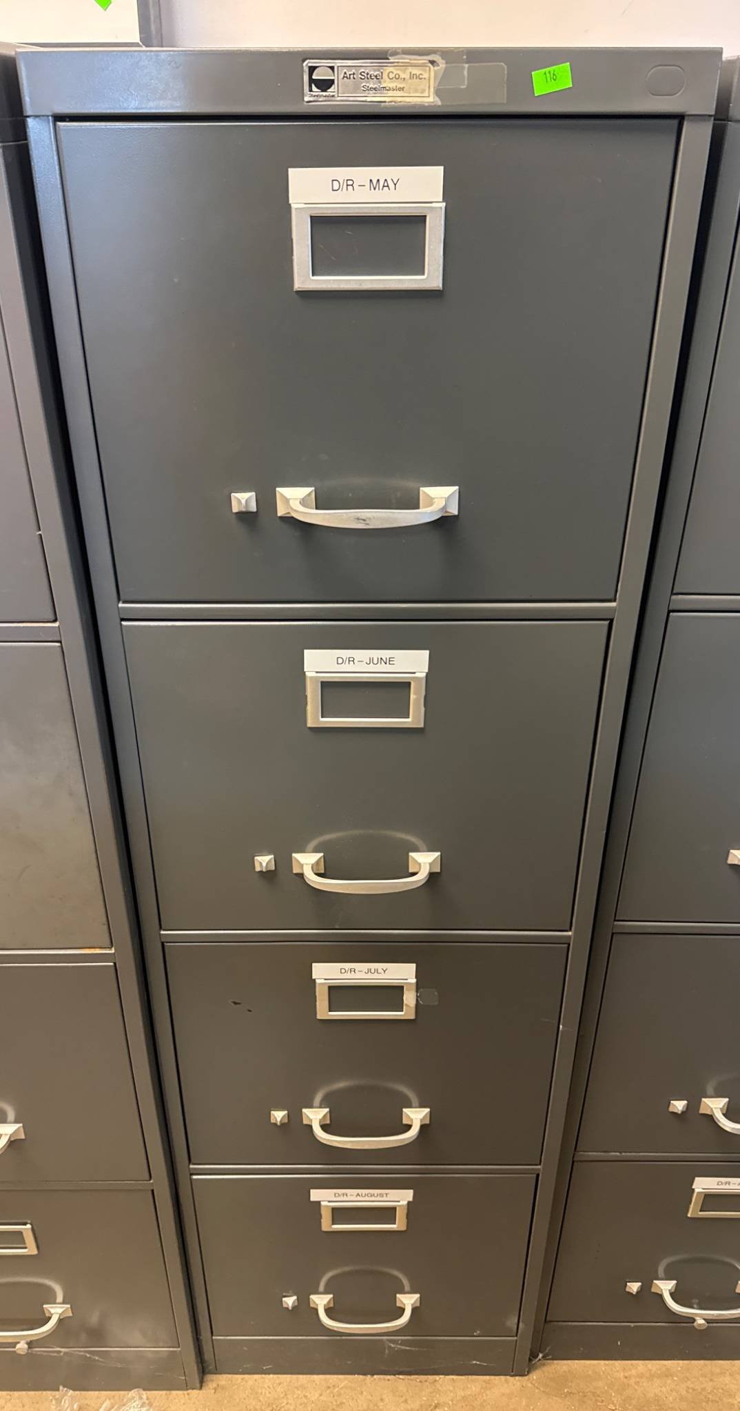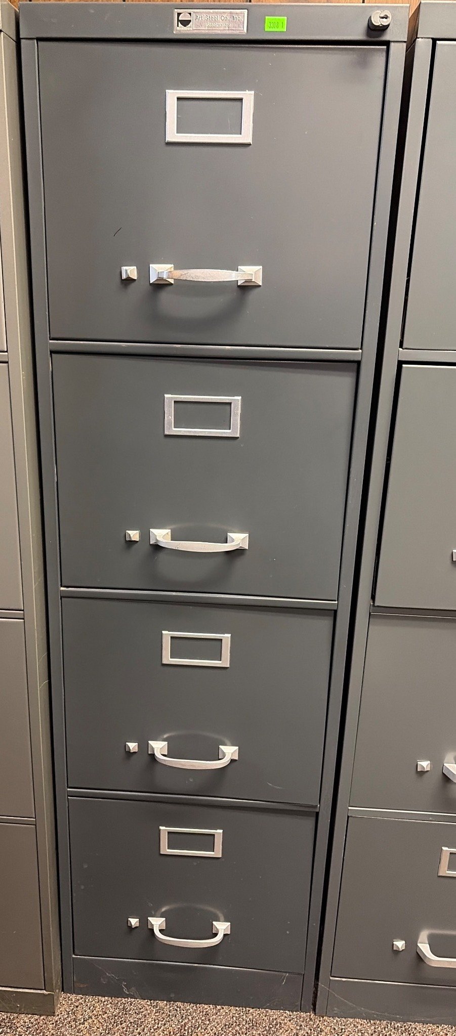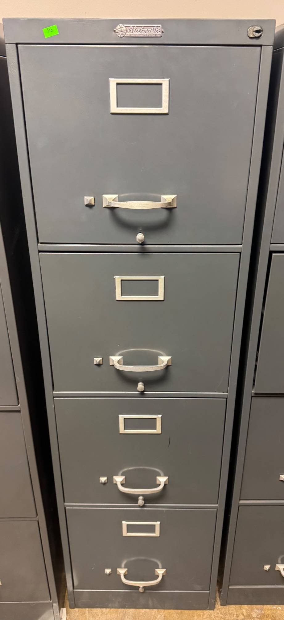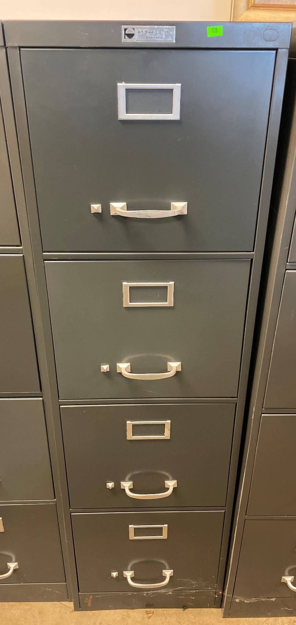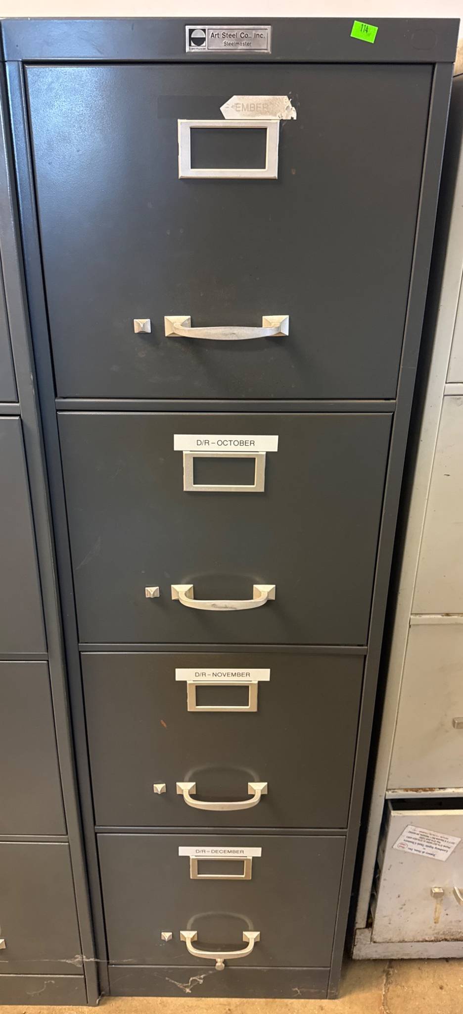 114 Art Steel Co. Inc. 4-Drawer Gray Metal Filing Cabinet with Label Holders and Handles (no key) 26.5 x 15 x 52
