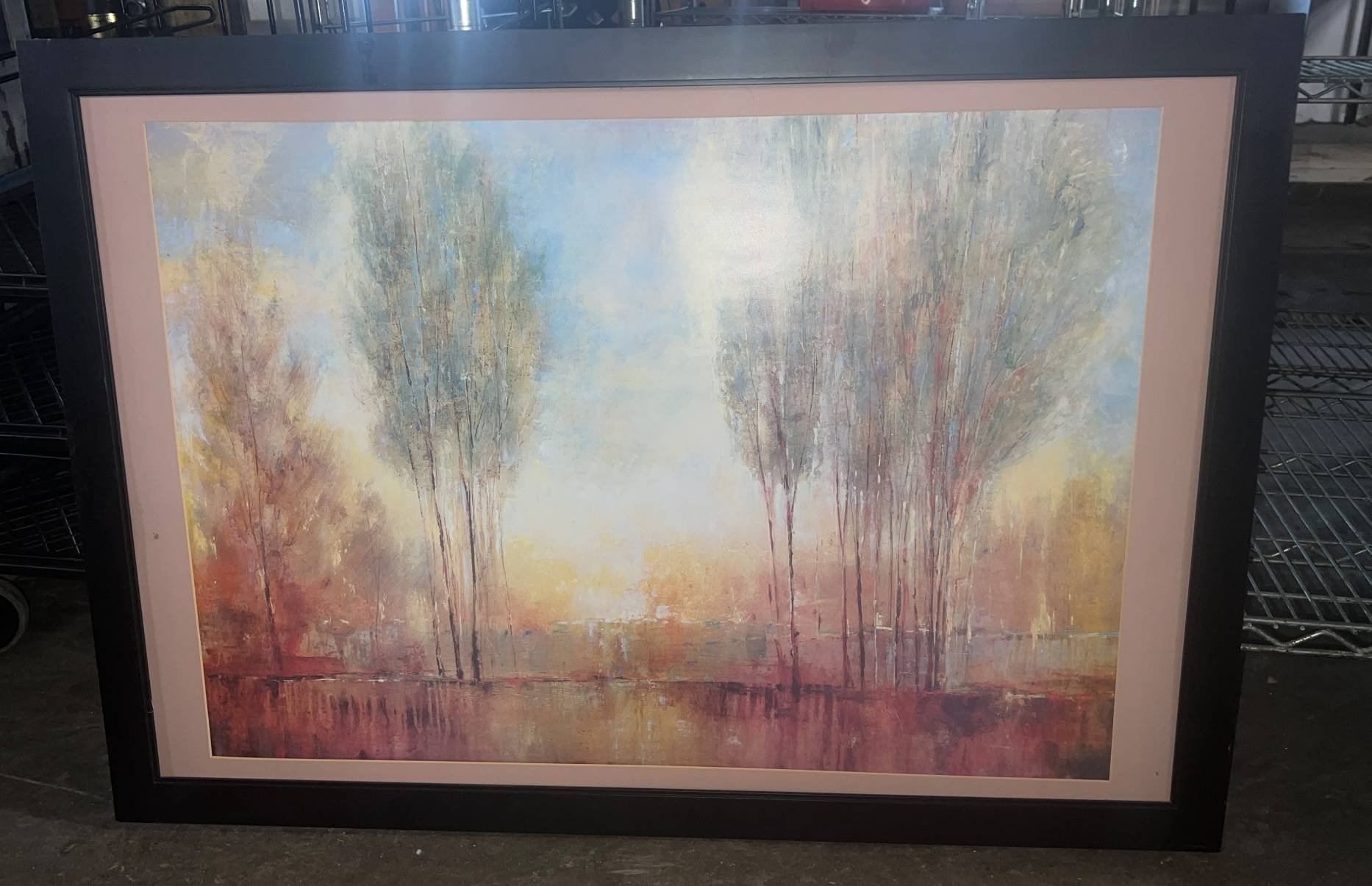112 Framed Rectangular Canvas Painting of Bare Trees in Neutral Tones, 73 x 40