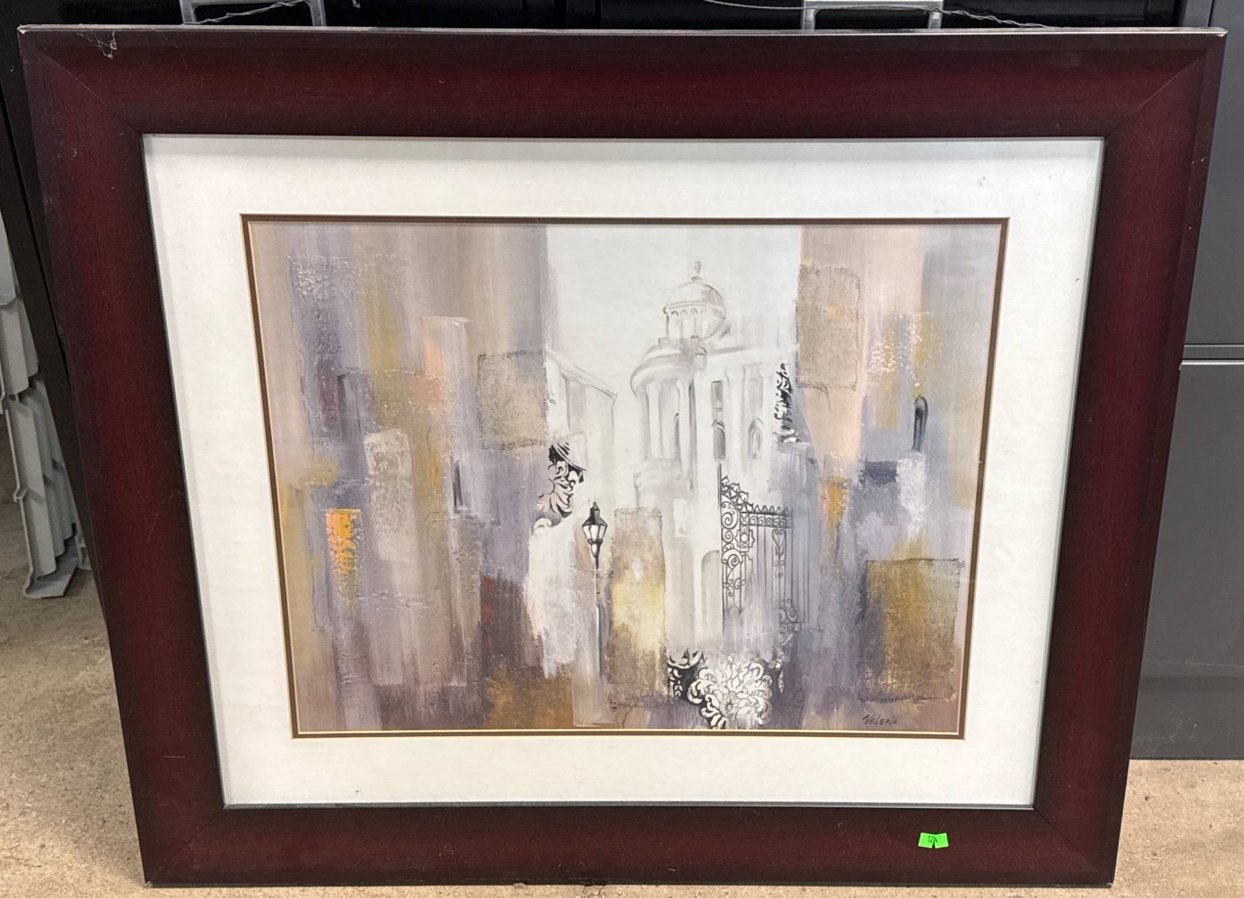 124 Valeria Framed Abstract Cityscape Painting with Glass Front, 29 x 25