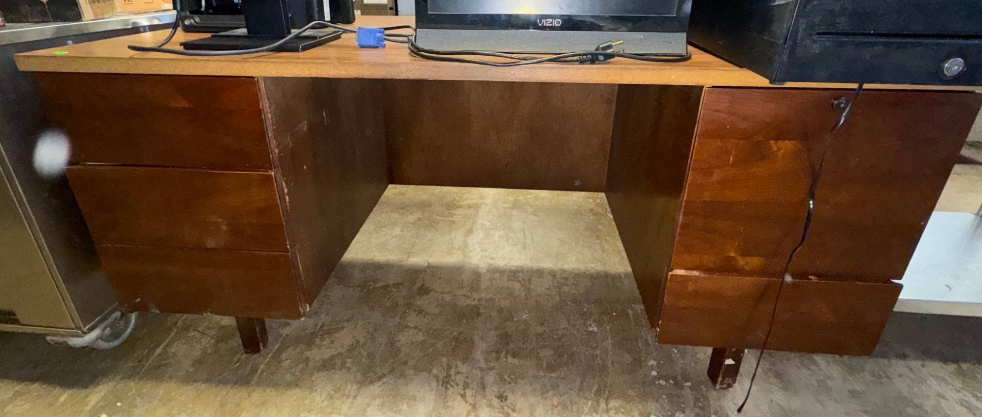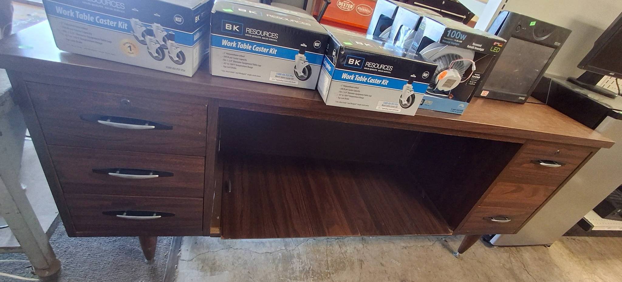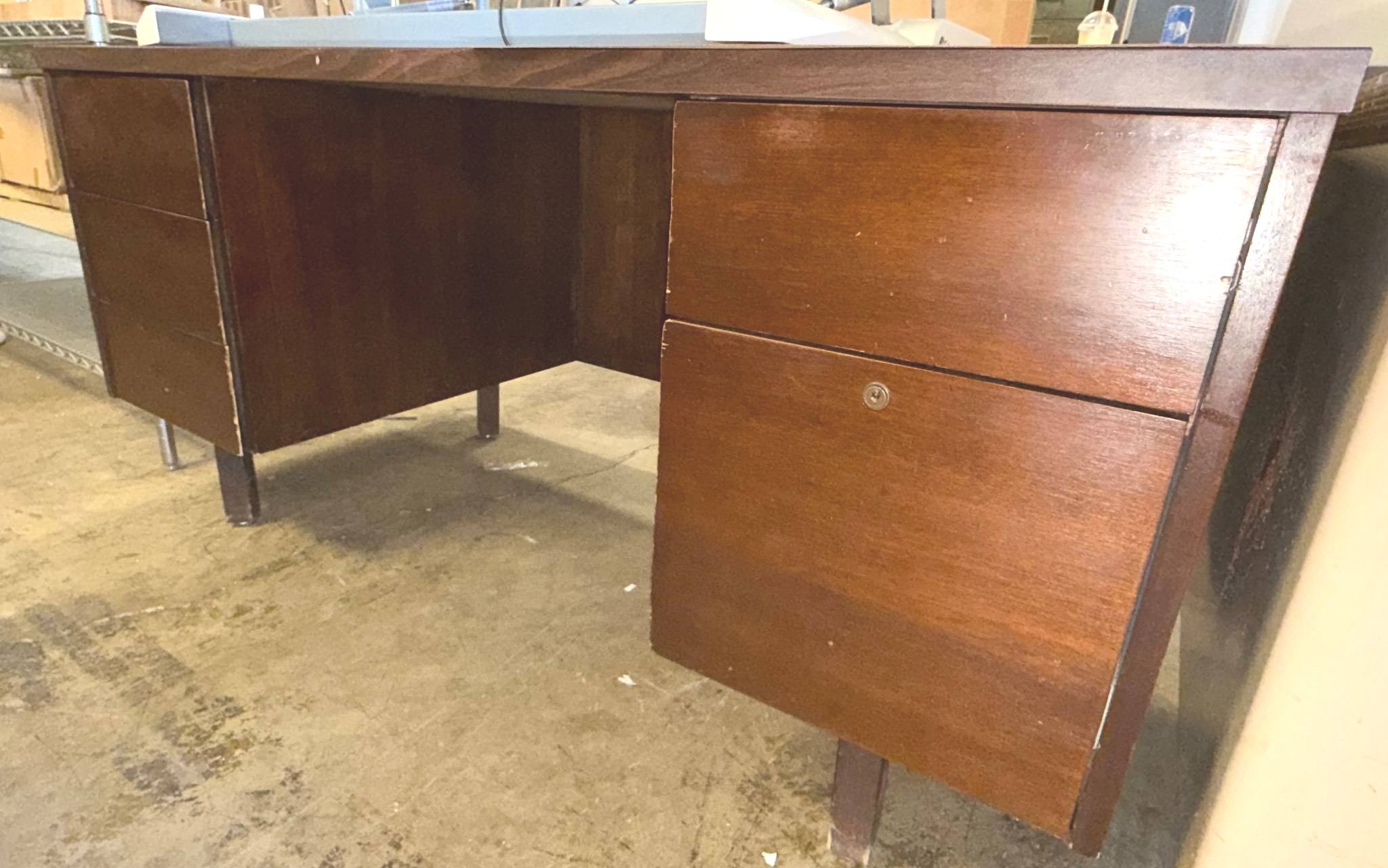 3418 Mid-Century Desk with 5 Drawers and Central Pencil Tray (71”x35”x29”) No key